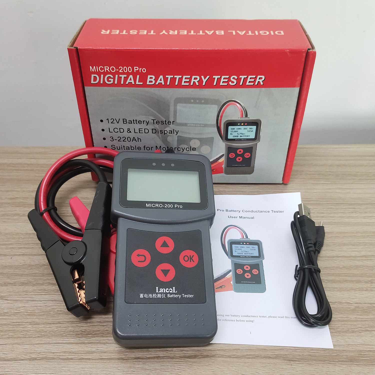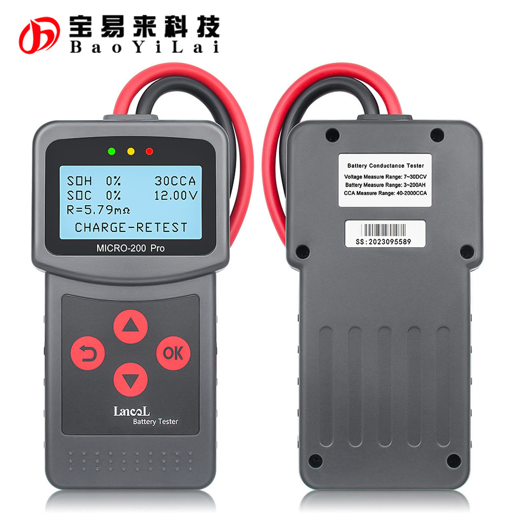 Battery Conductance Tester MICRO-200 Pro adopts currently the world's mostadvanced conductance testing technology to easily, quickly and accurately measure theactual cold cranking amps capability of the vehicle starting battery, healthy state of thebattery itself, and common fault of the vehicle starting system and charging system,which can help maintenance personnel to find the problem quickly and accurately, thusto achieve quick vehicle repair.