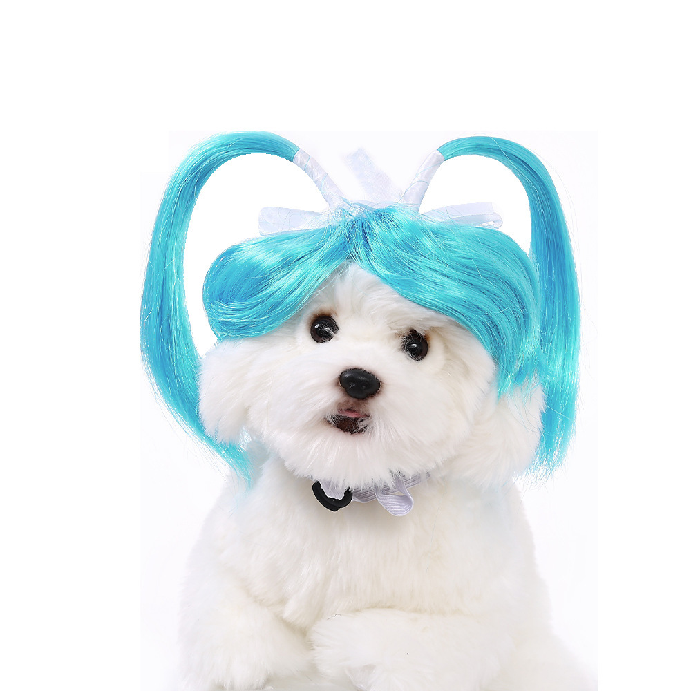 Новый парик для домашних животных, кошка и собака, универсальные трансграничные товары для домашних животных, украшения для домашних животных на Хэллоуин, милые прямые волосы, волнистая голова