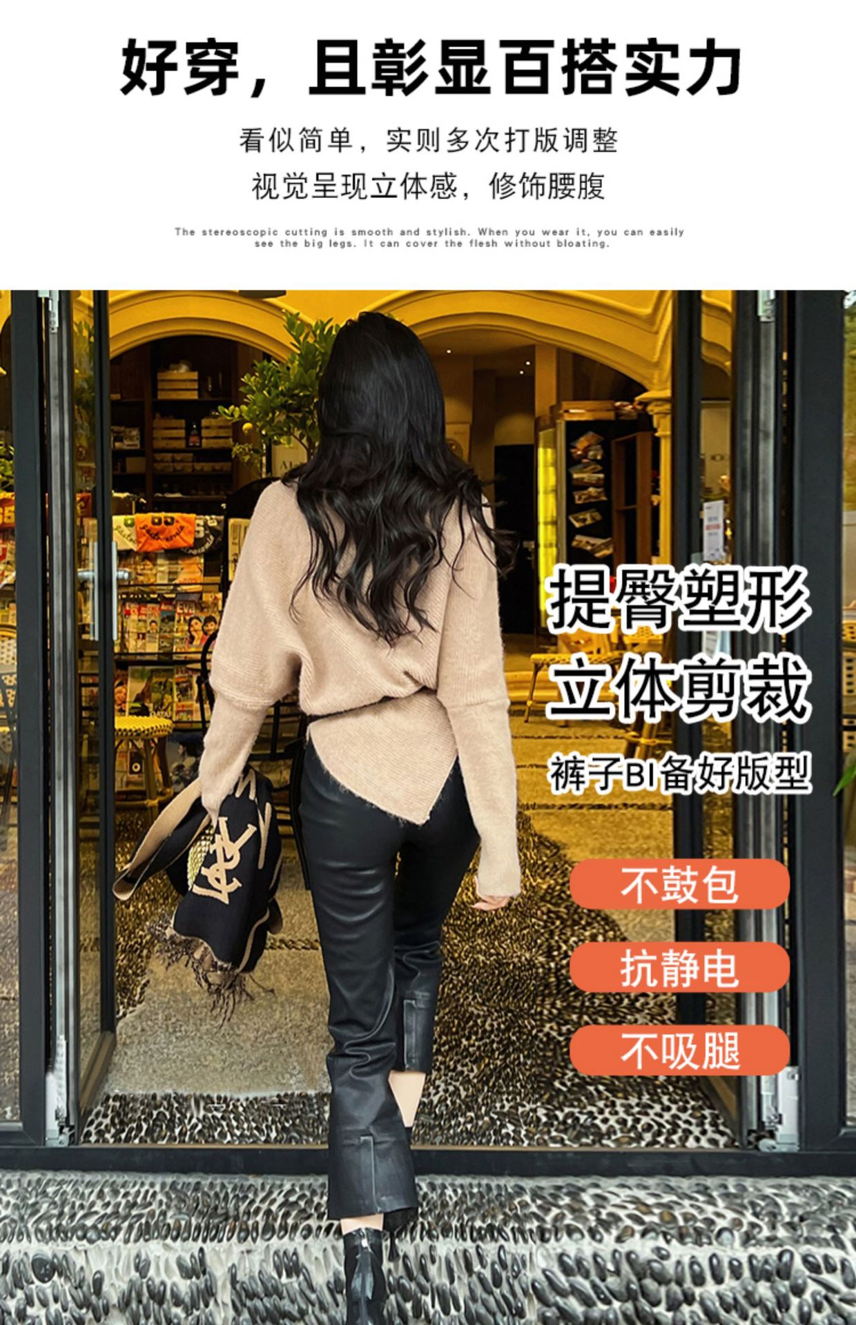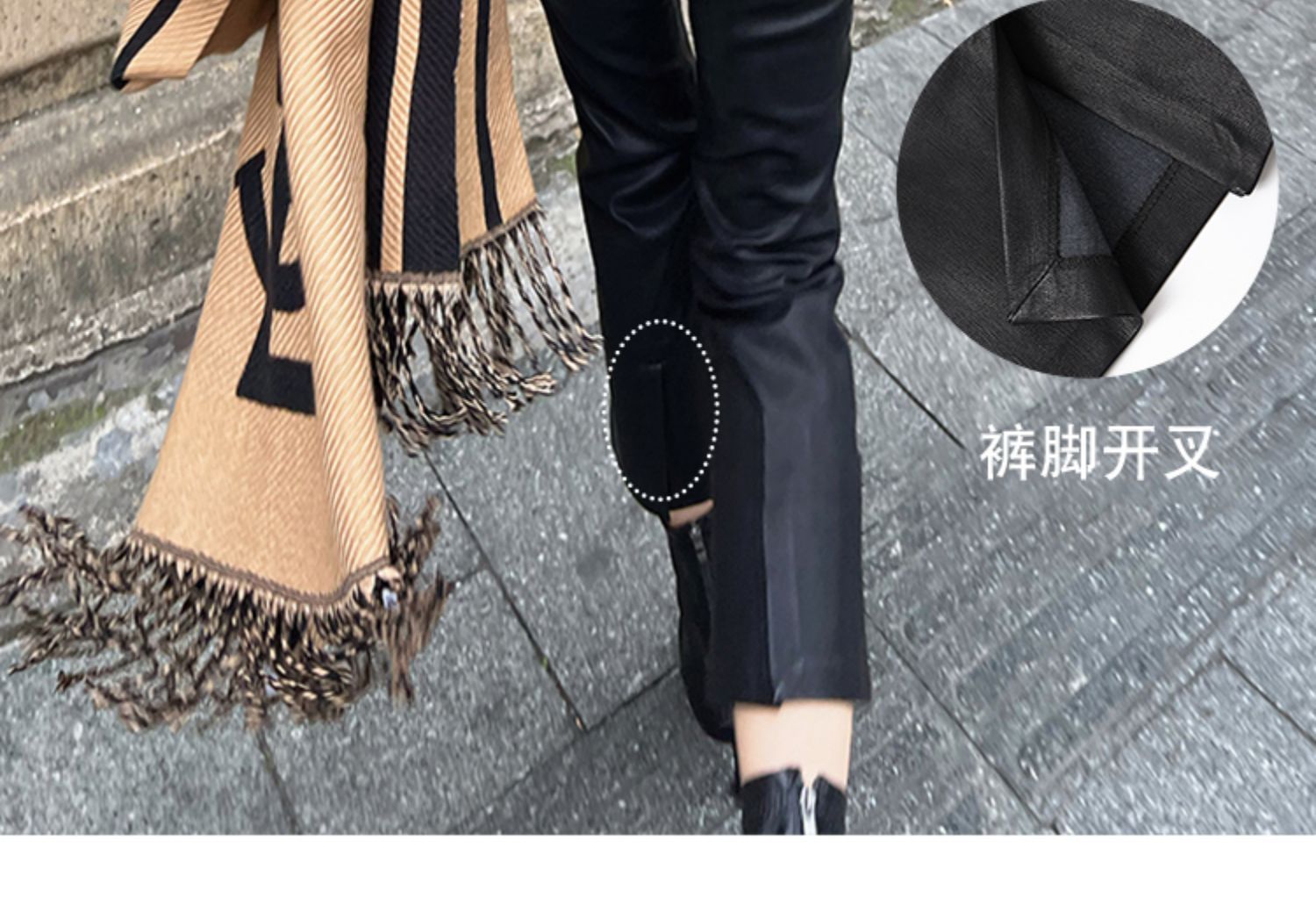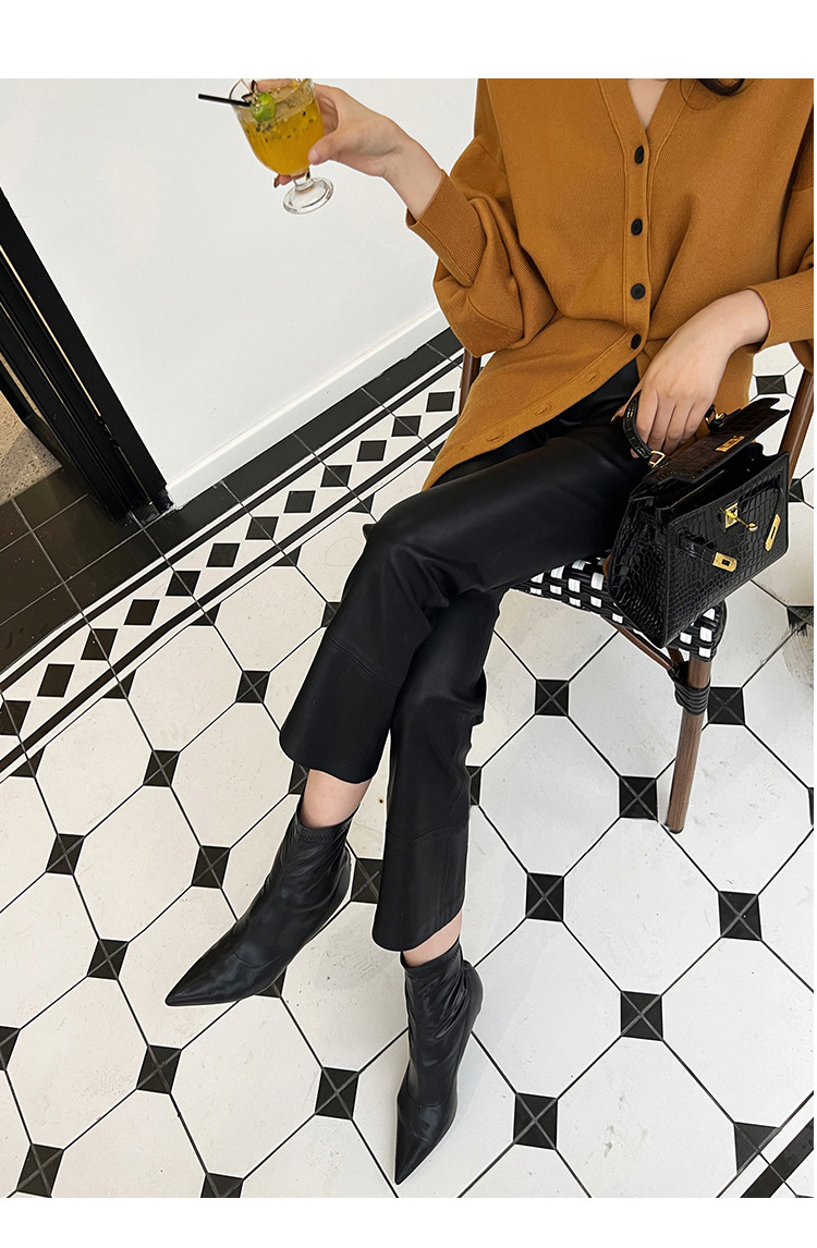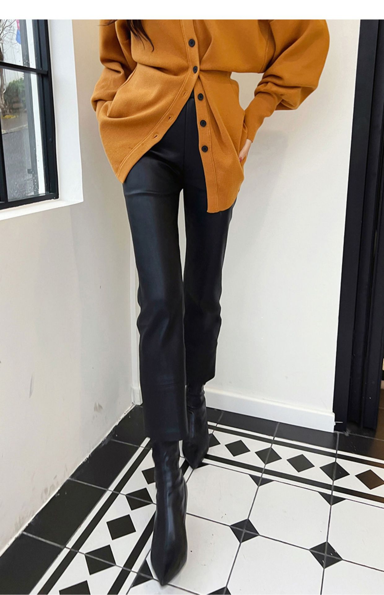 Черные укороченные кожаные брюки для женщин, леггинсы, осенне-зимний стиль, европейские товары, популярные кожаные брюки 2025 года, высококачественные повседневные расклешенные брюки