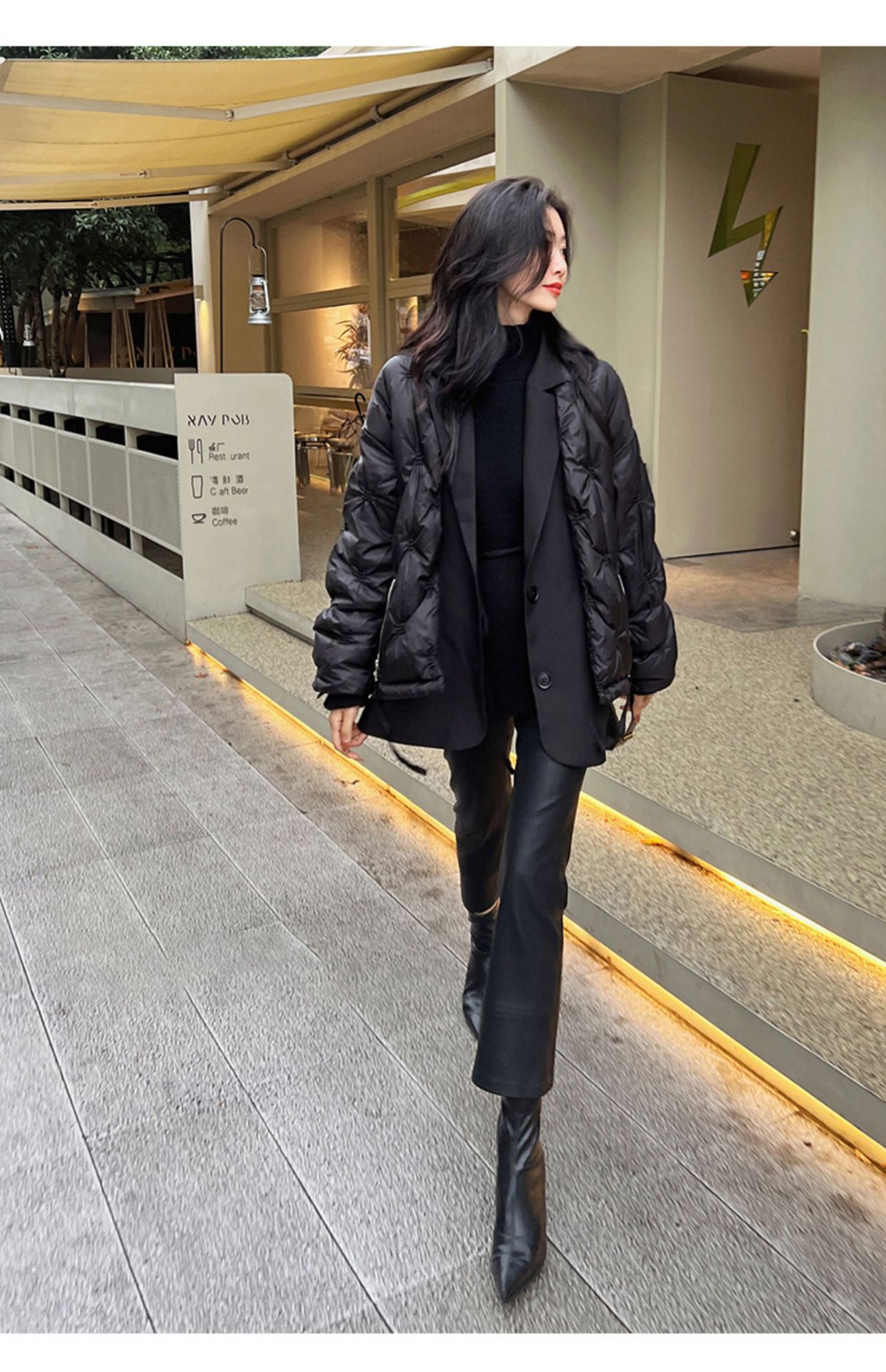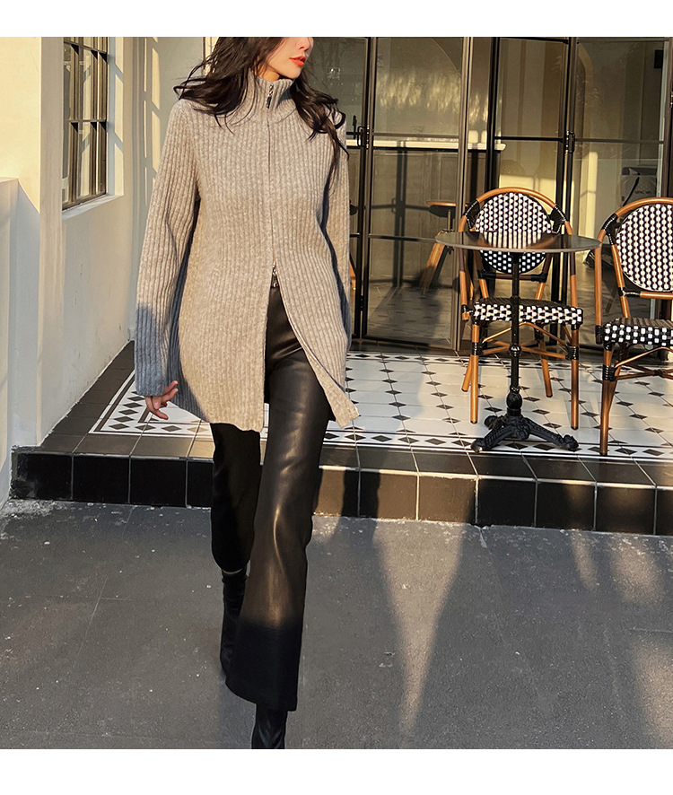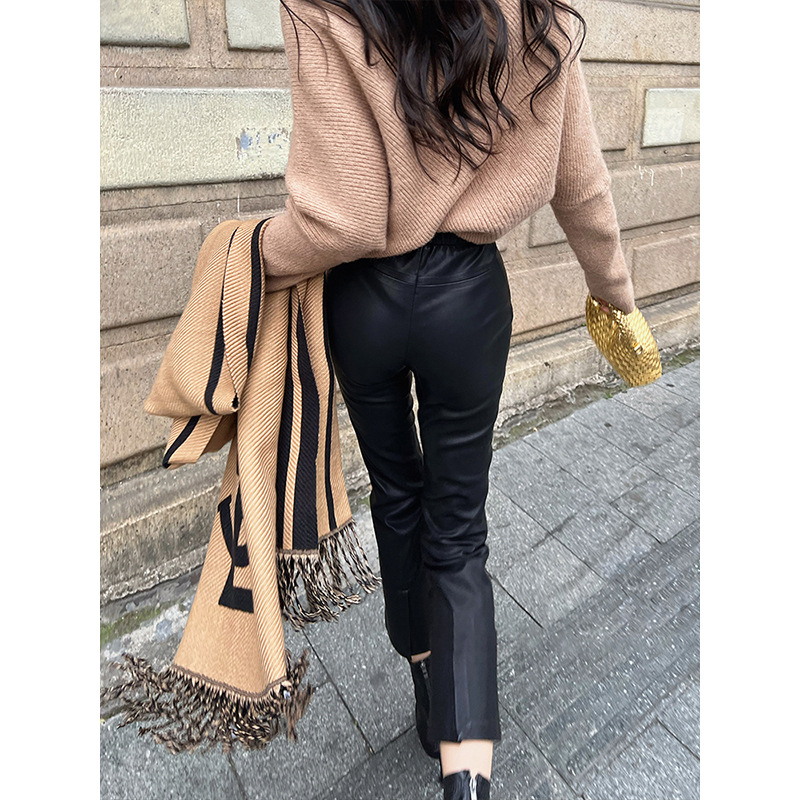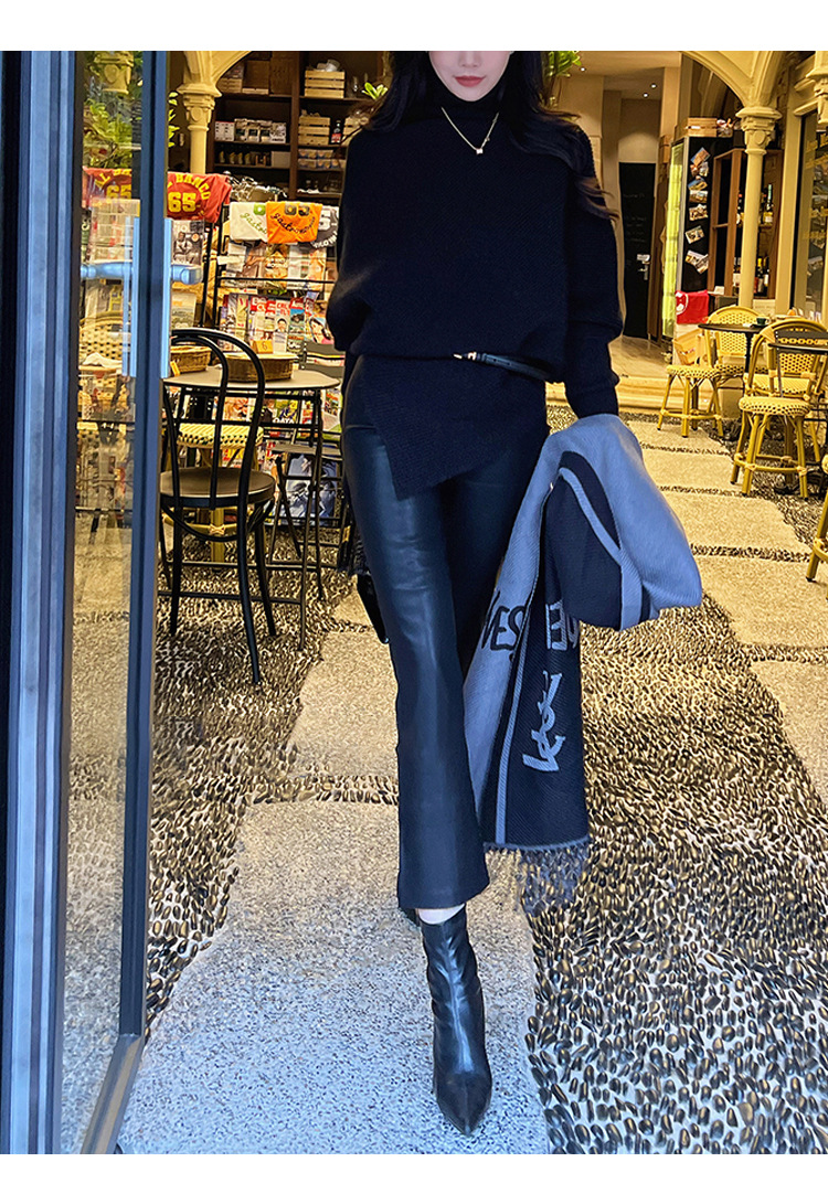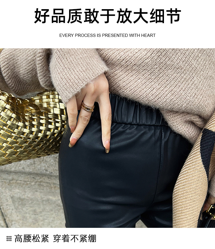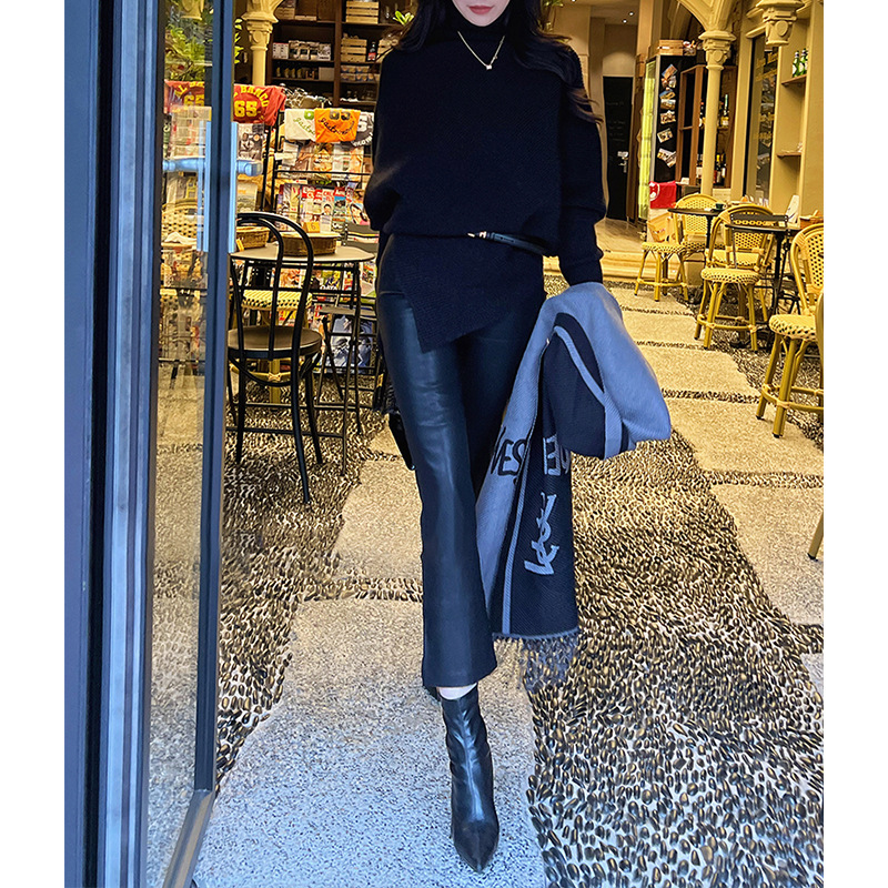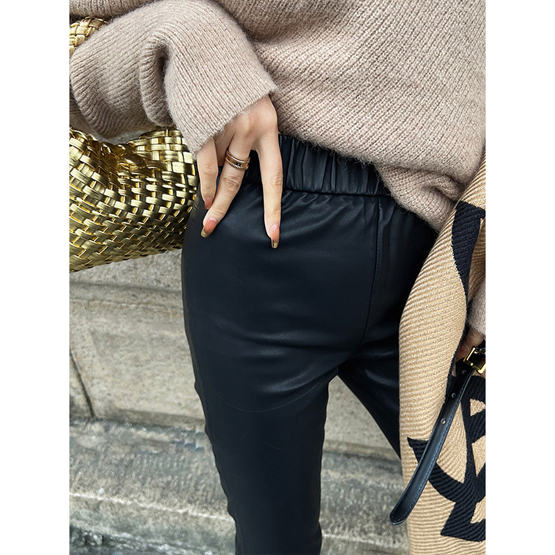 Черные укороченные кожаные брюки для женщин, леггинсы, осенне-зимний стиль, европейские товары, популярные кожаные брюки 2025 года, высококачественные повседневные расклешенные брюки