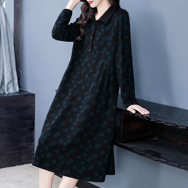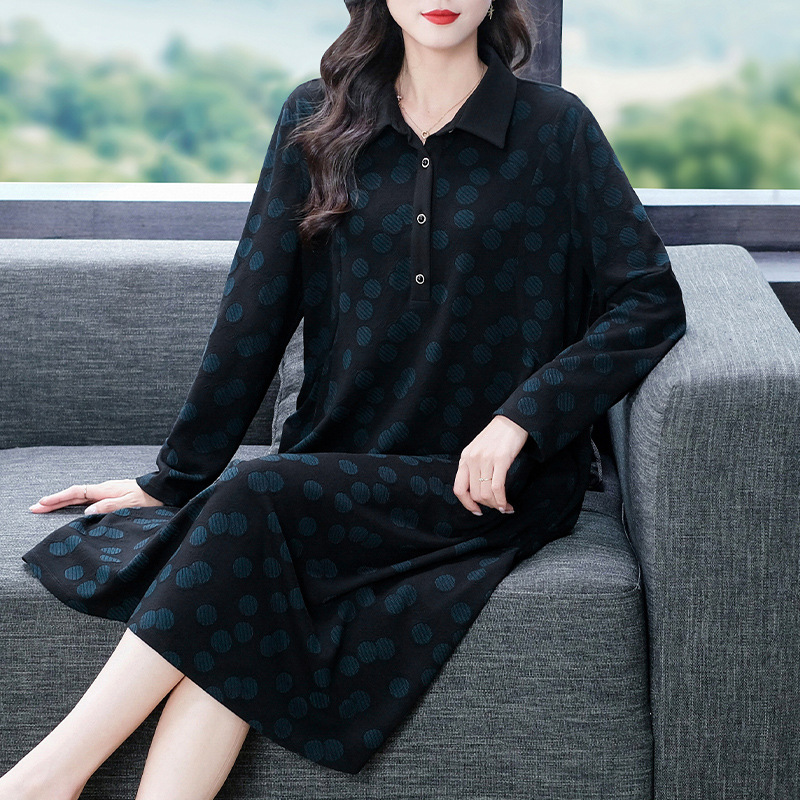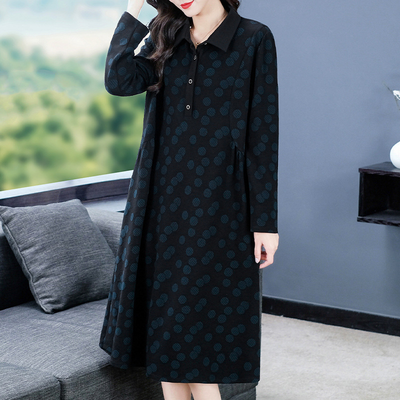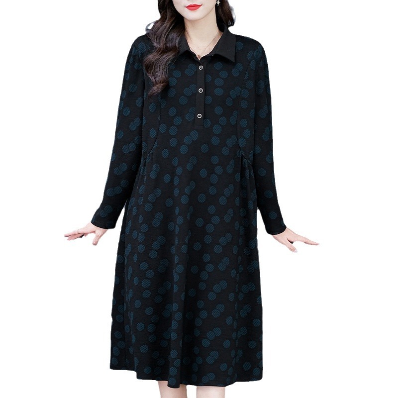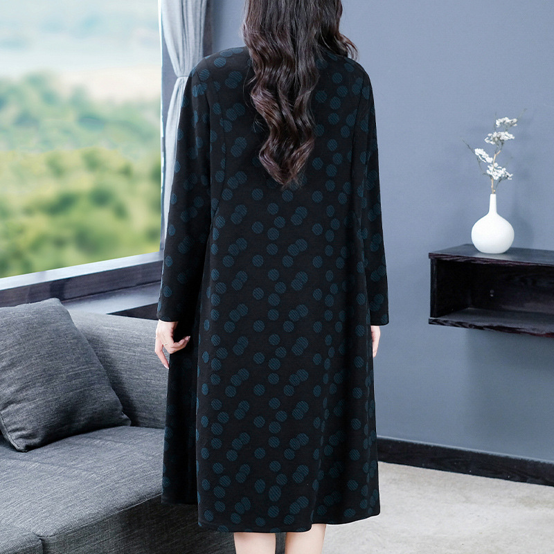 Осенне-зимняя свободная длинная жаккардовая верхняя одежда больших размеров в западном стиле, нижнее платье для похудения, Толстая Женская одежда для мам среднего и пожилого возраста