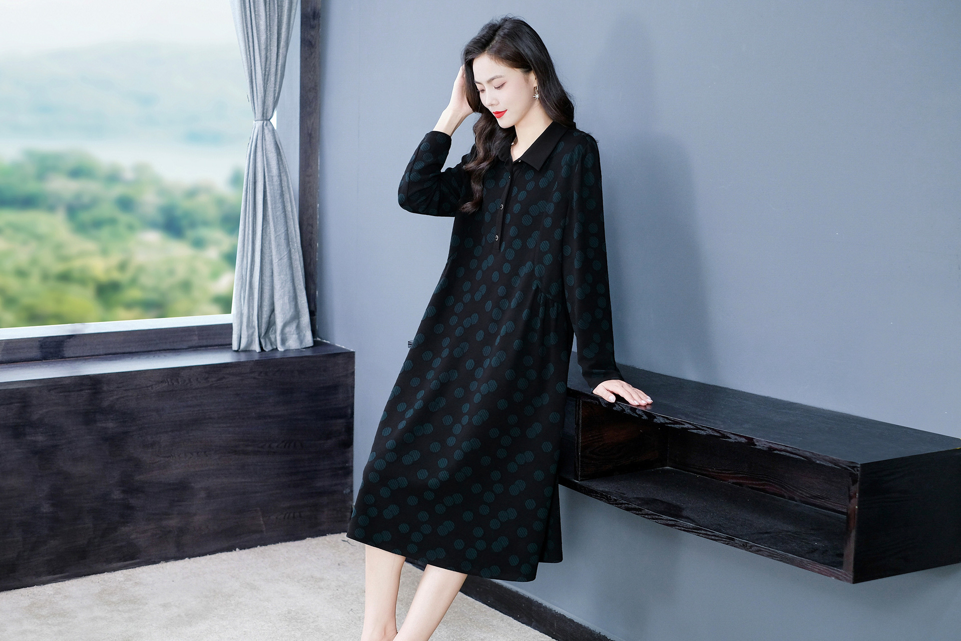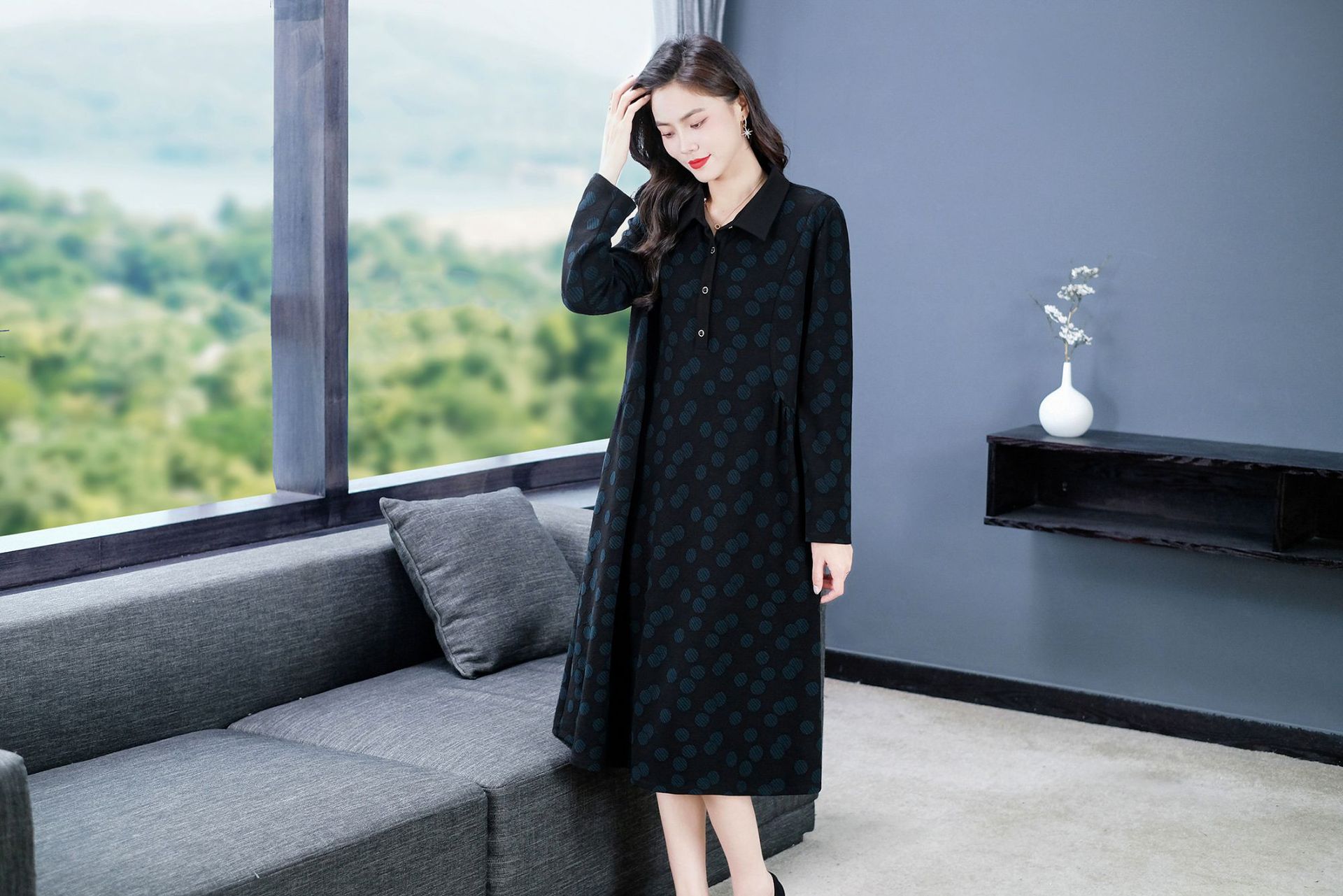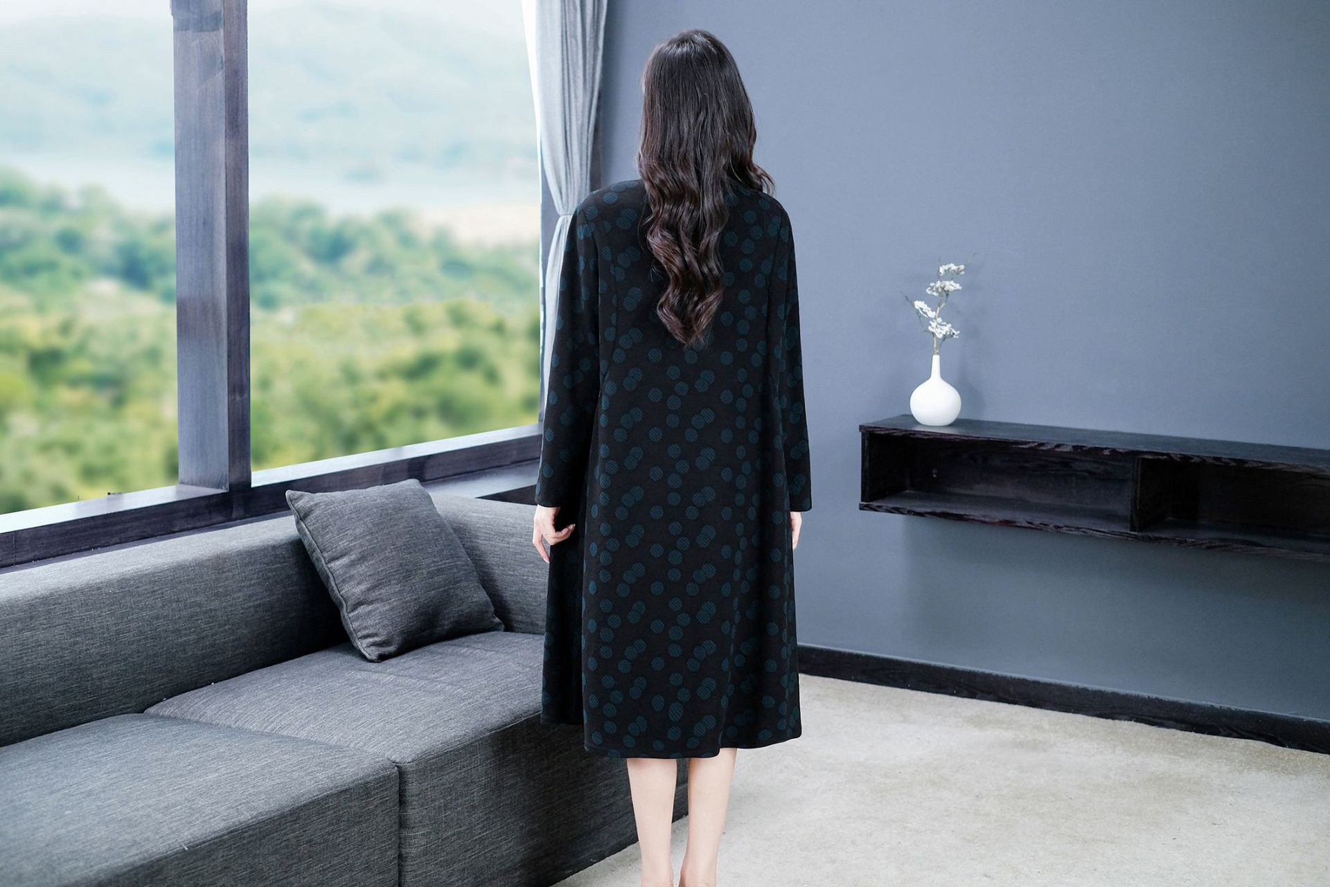 Осенне-зимняя свободная длинная жаккардовая верхняя одежда больших размеров в западном стиле, нижнее платье для похудения, Толстая Женская одежда для мам среднего и пожилого возраста
