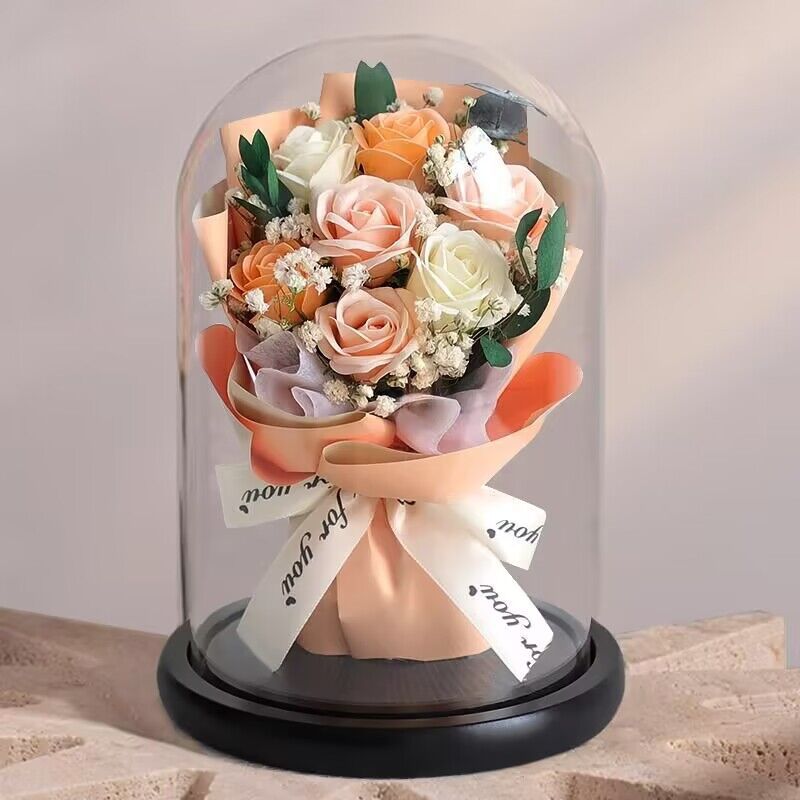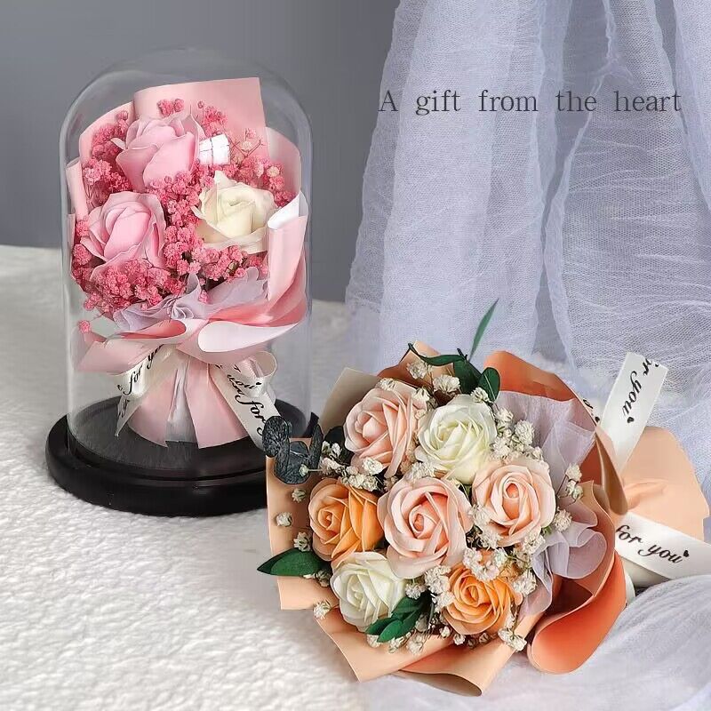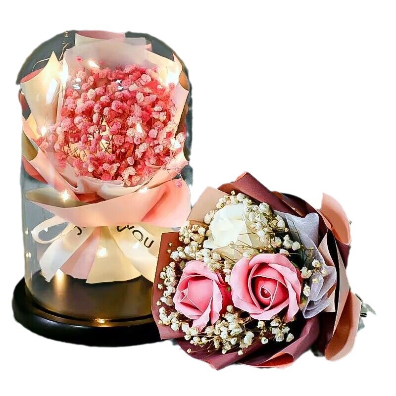 Гипсофила Сухой цветок Стеклянная крышка Роза Вечный цветок Украшения для гостиной для подруги Подарок на день рождения День Святого Валентина День матери