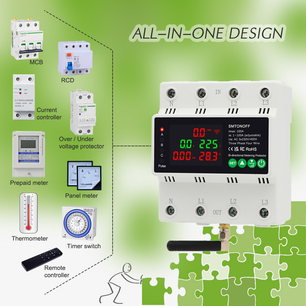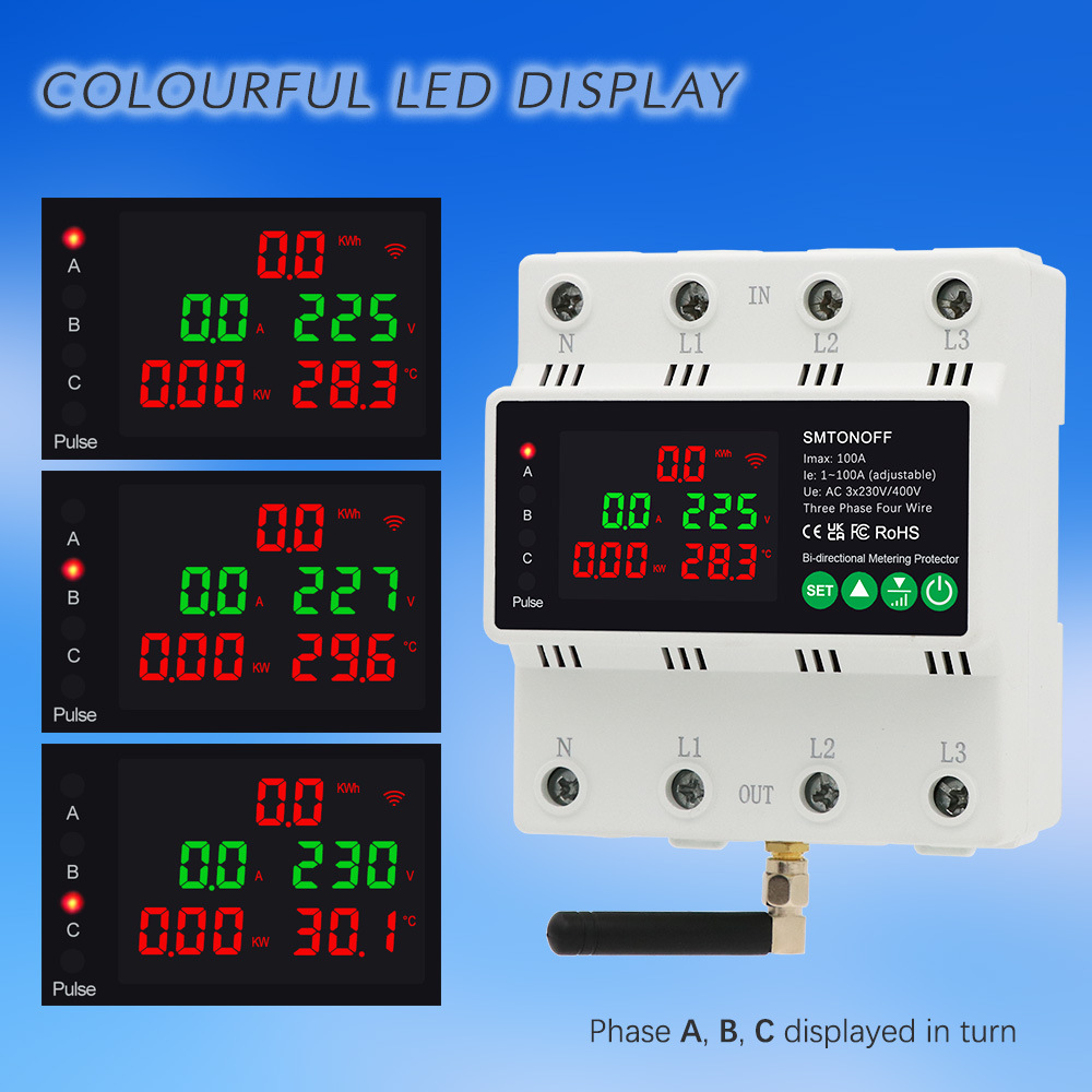 Tuya Smart Life WIFI, трехфазный четырехпроводной двусторонний измеритель солнечной энергии ZigBee, свет