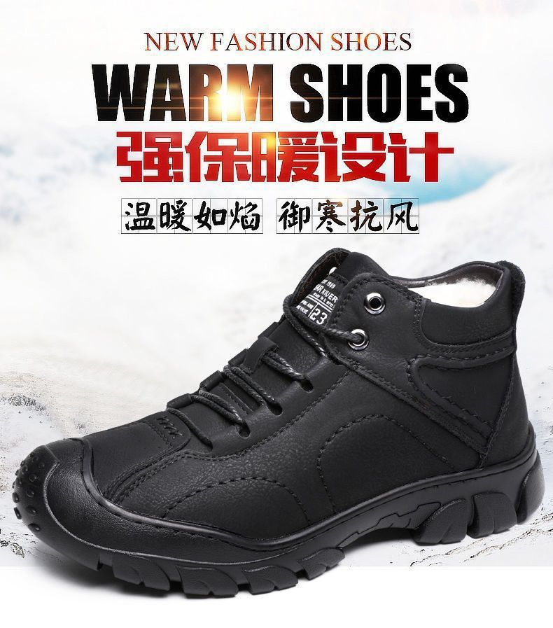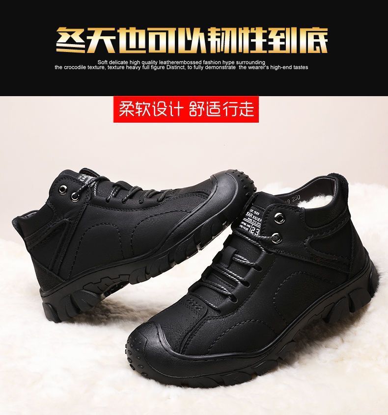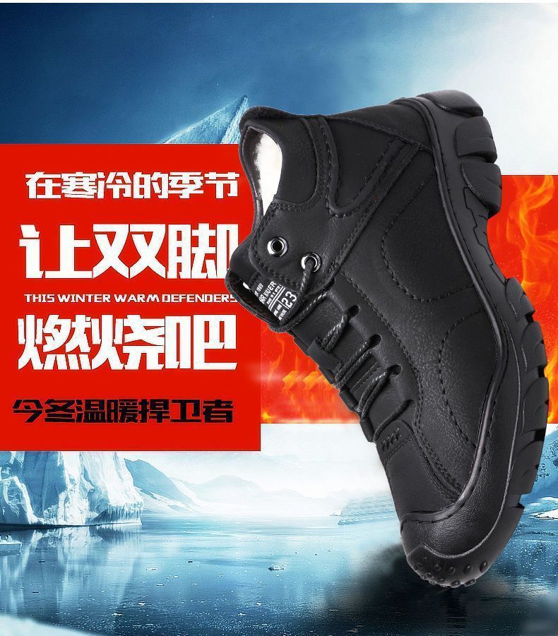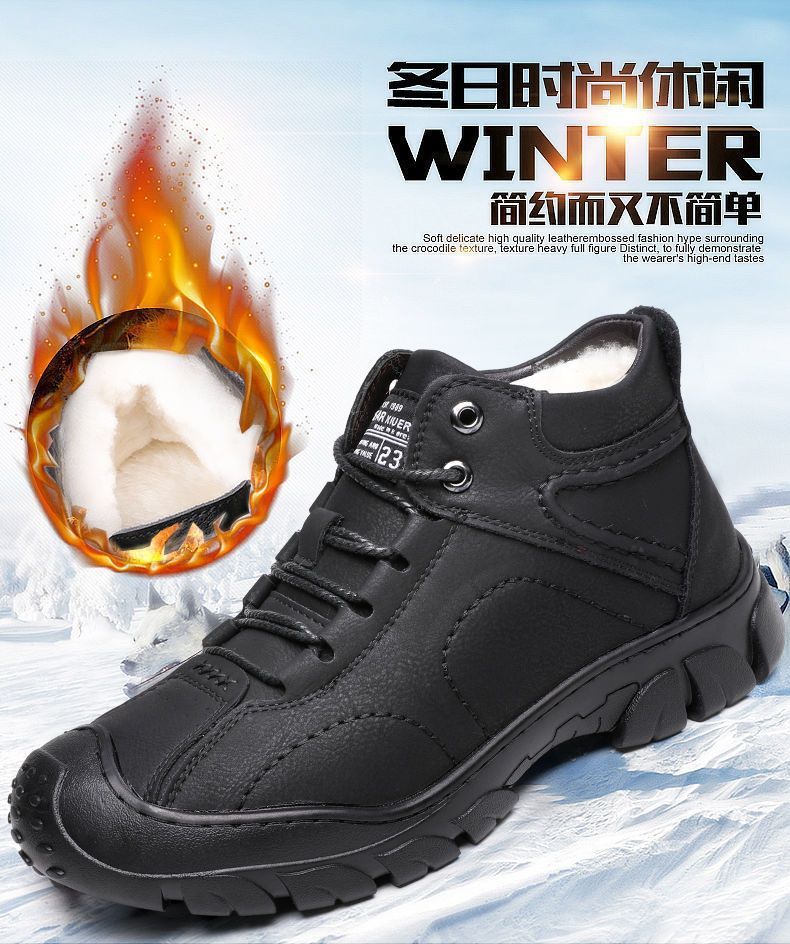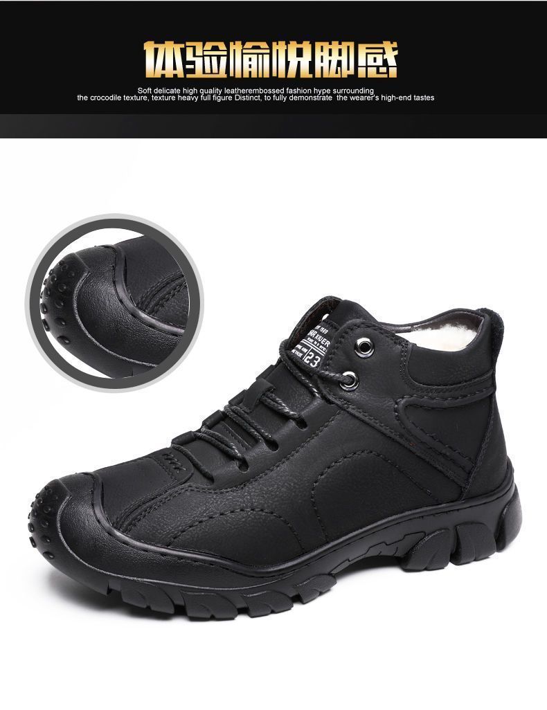 Осенне-зимняя новая мужская хлопчатобумажная обувь на флисовой подкладке, толстая непромокаемая повседневная мужская обувь, мужская кожаная обувь с высоким верхом, уличные спортивные зимние сапоги