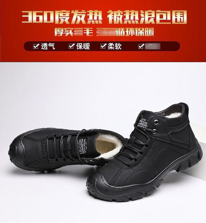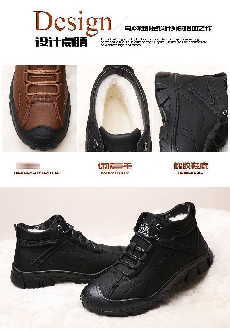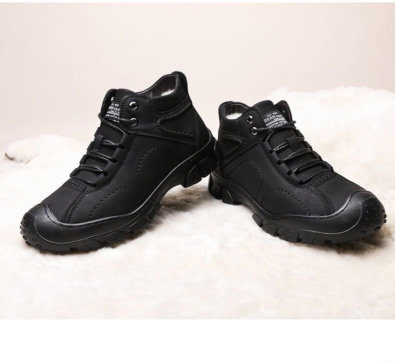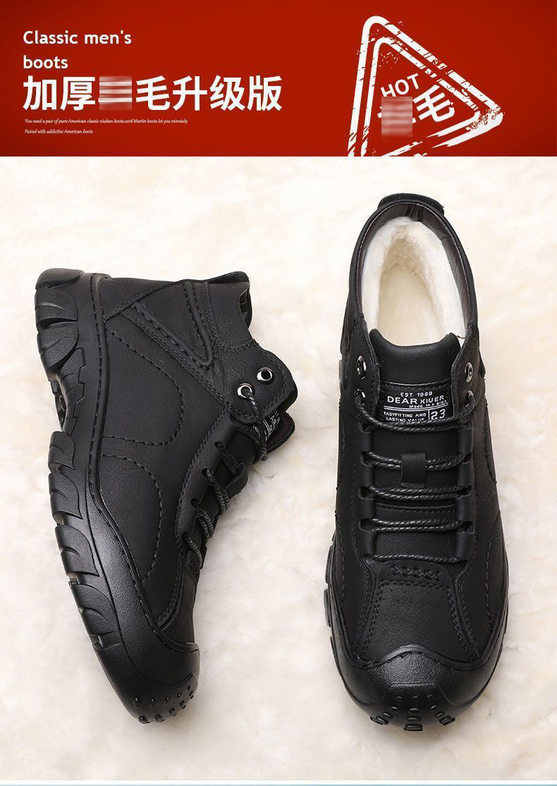 Осенне-зимняя новая мужская хлопчатобумажная обувь на флисовой подкладке, толстая непромокаемая повседневная мужская обувь, мужская кожаная обувь с высоким верхом, уличные спортивные зимние сапоги