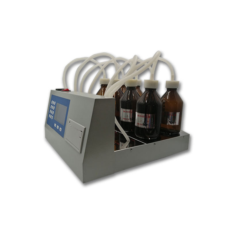 测试装置使用简单的样品稀释法,使BOD测量容易,不需远控设施。操作者只需简单的加入测量的样品和BOD营yang缓冲剂到6个BOD瓶中,将瓶子连接到微处理器控制装置的压力传感器上,从四个量程中选择一个合适的量程,BOD测试装置便可完成以后的测试。当样品温度稳定后,装置开始读出BOD值并储存在仪器的内存中,每15分钟记录,可选择测试5天或10天的周期。