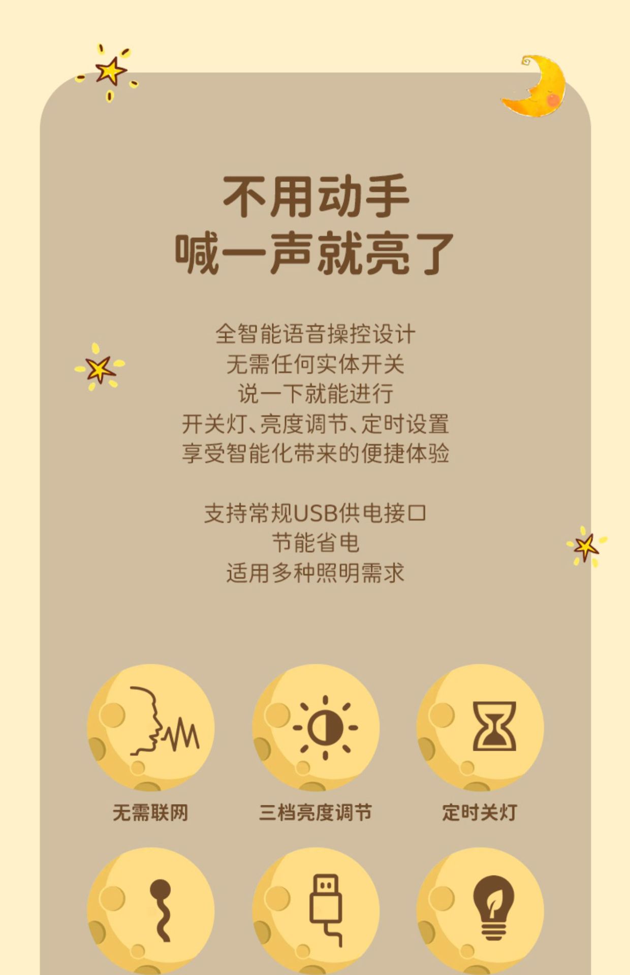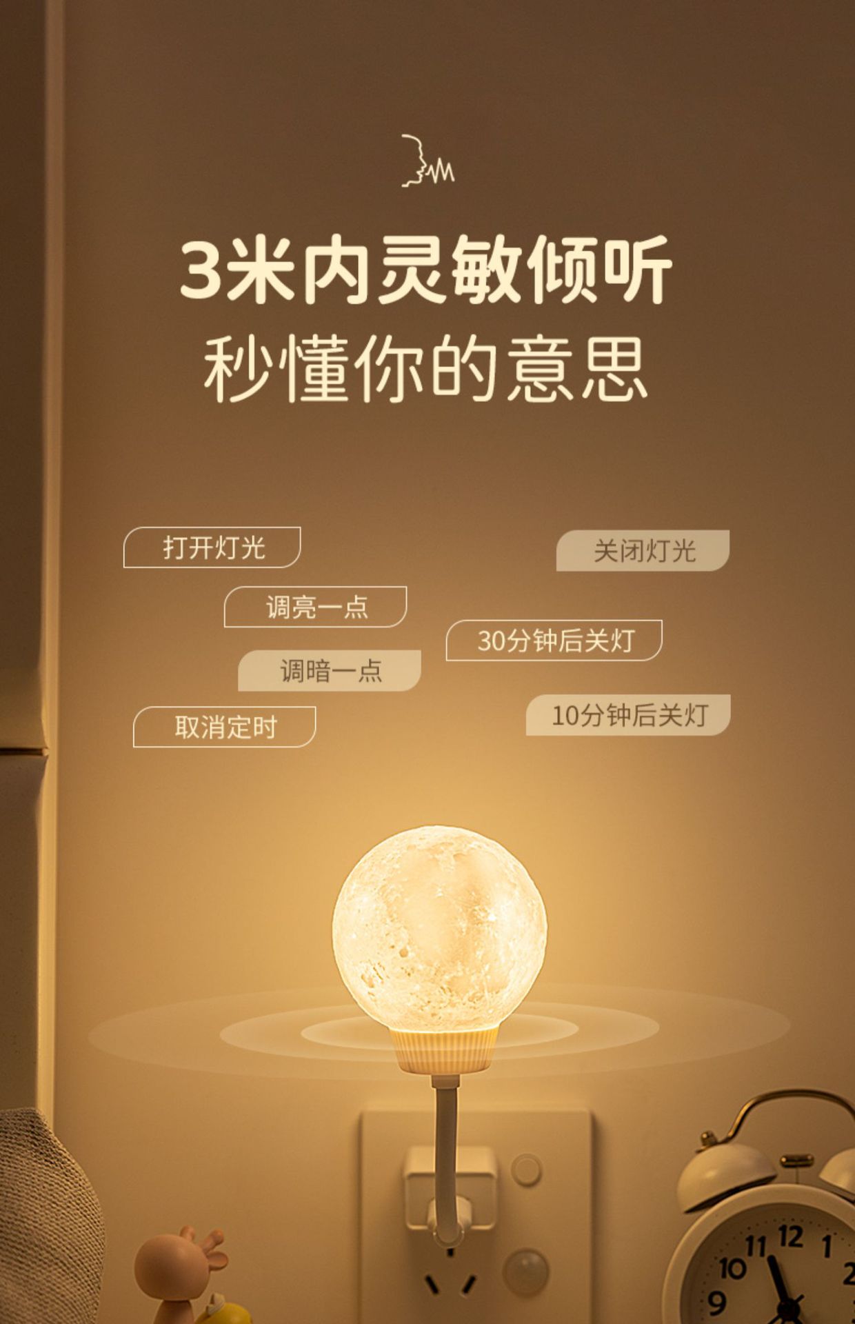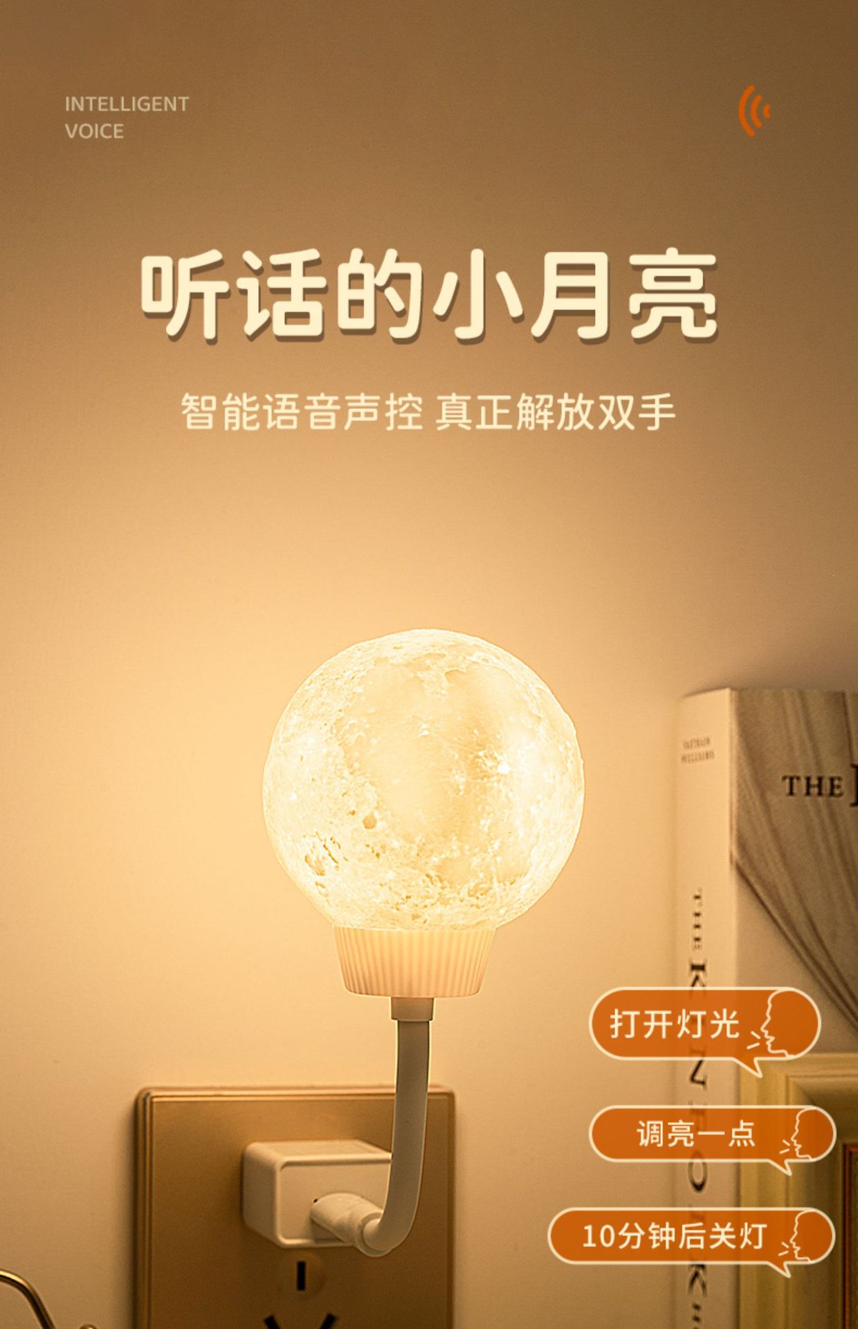 Лунный ночник MoonNightLight, светодиодный ночник с голосовым управлением, USB-подсветка, атмосферный светильник, трехцветный свет