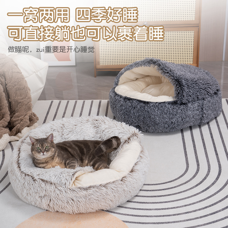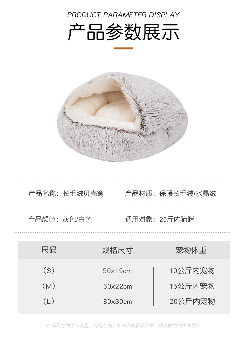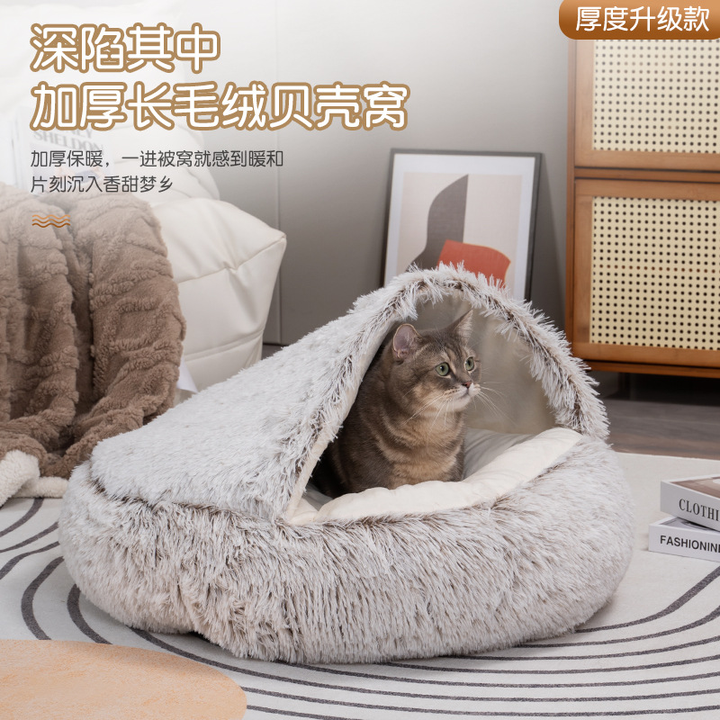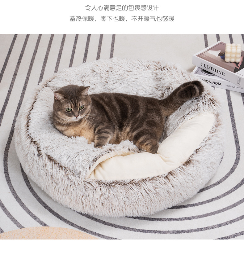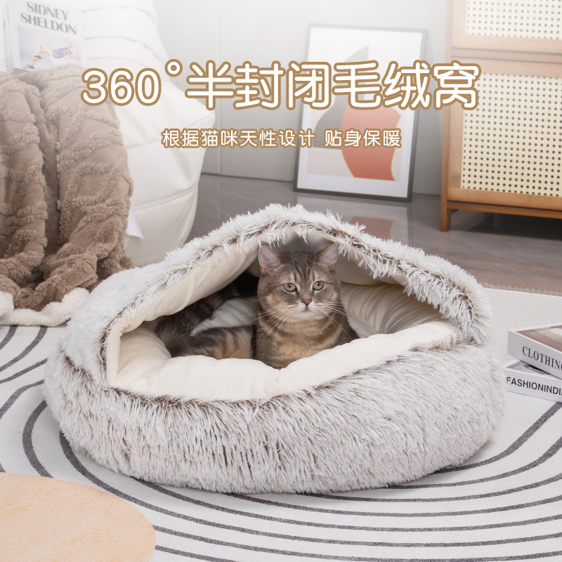 Гнездо для домашних животных зимнее теплое плюшевое круглое полузакрытое панцирь кошачье гнездо для собак мягкое Полупансион теплого питомца