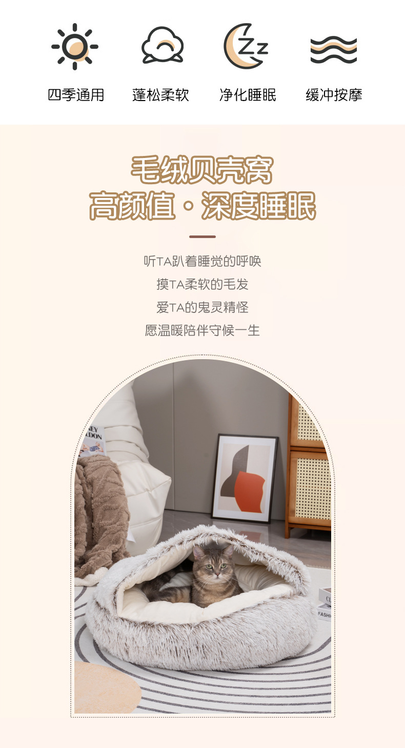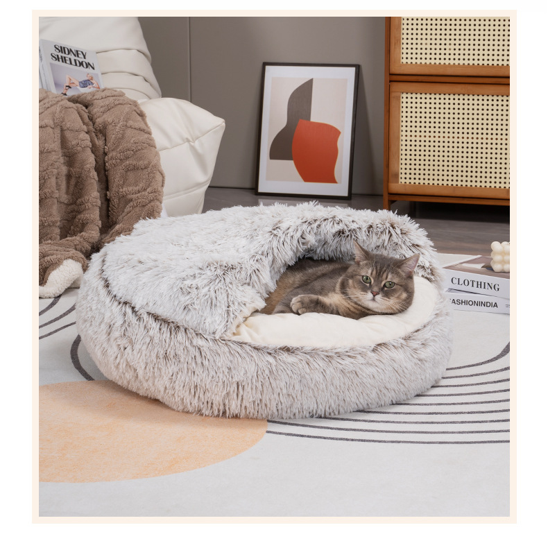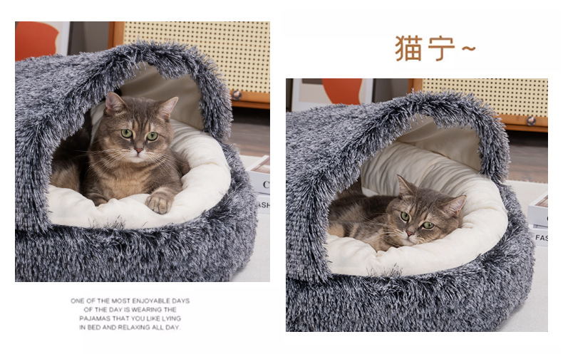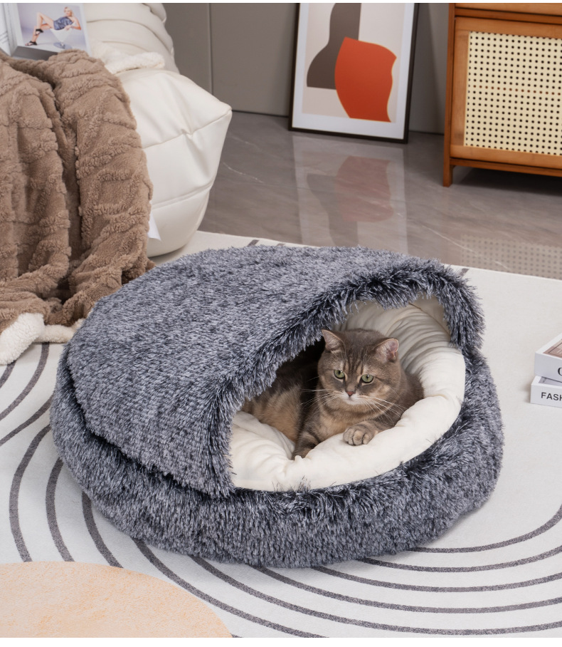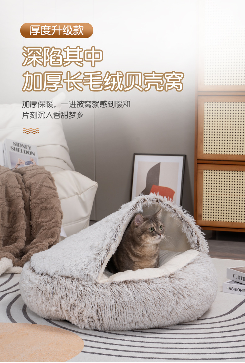 Гнездо для домашних животных зимнее теплое плюшевое круглое полузакрытое панцирь кошачье гнездо для собак мягкое Полупансион теплого питомца