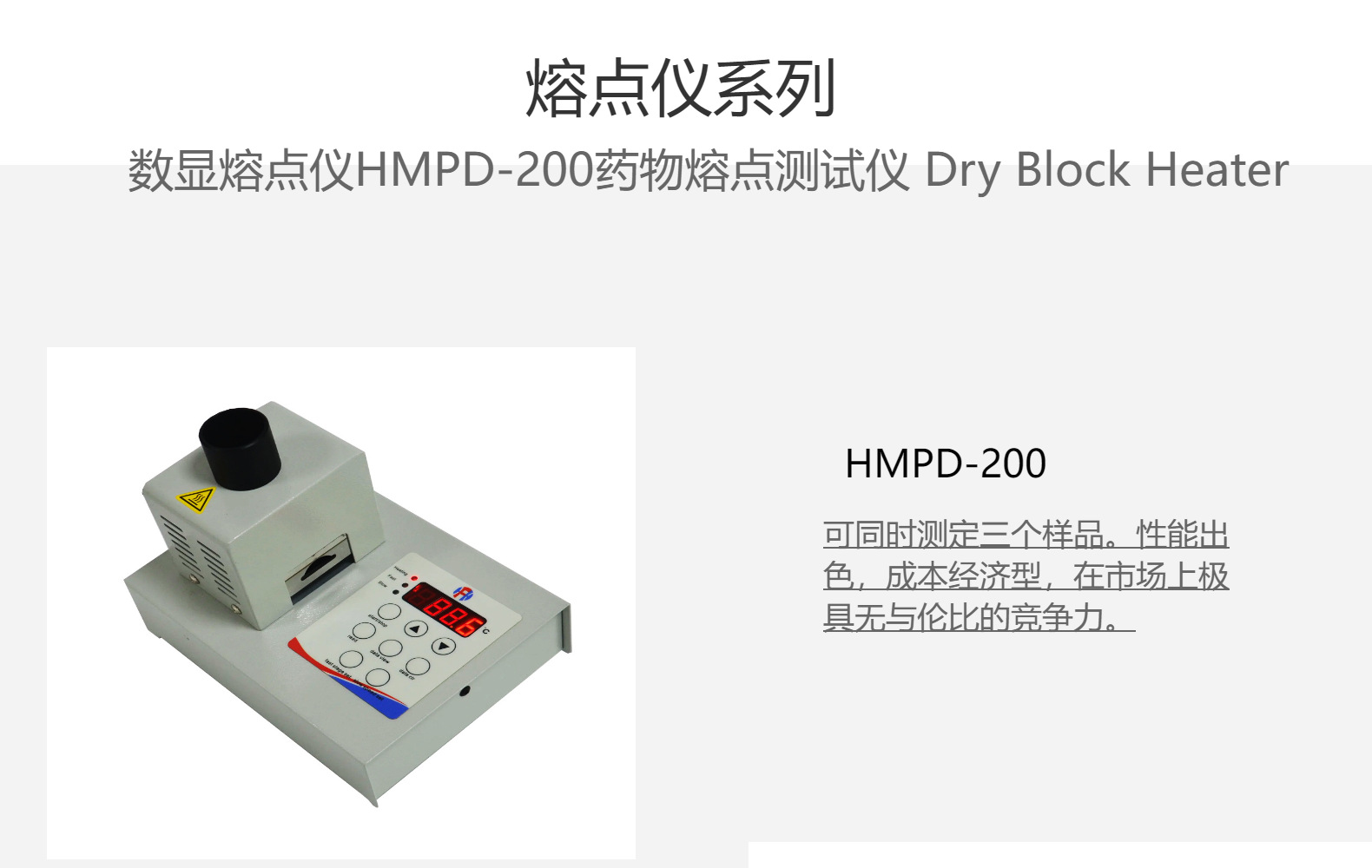 新升级的熔点装置HMPD-200自上市以来有了很大的改进。这台机器的设计特点更为复杂,但成本与经济型一样高: