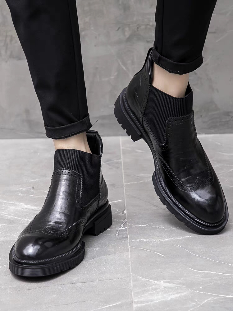 Зимние мужские ботинки челси на платформе, модные ботинки Martin на флисовой подкладке, мужские модные британские БОТИНКИ из воловьей кожи, высокие ботильоны