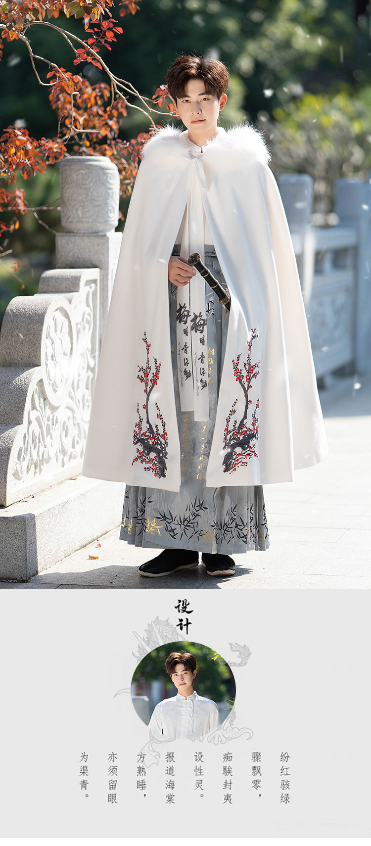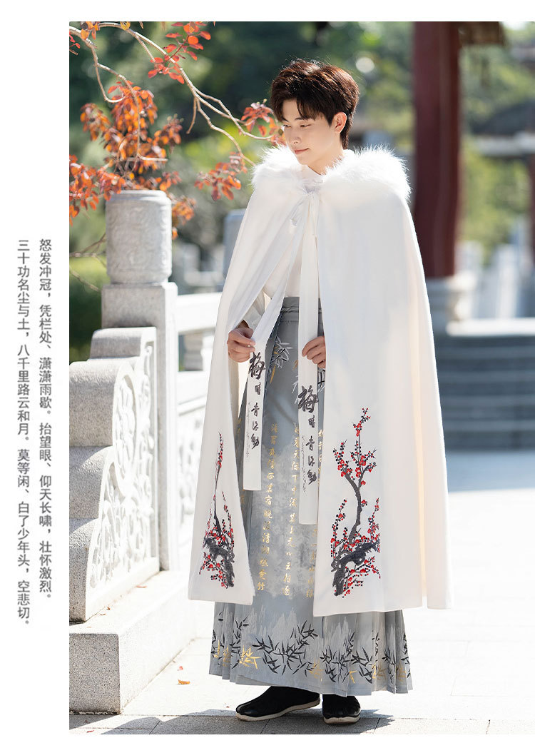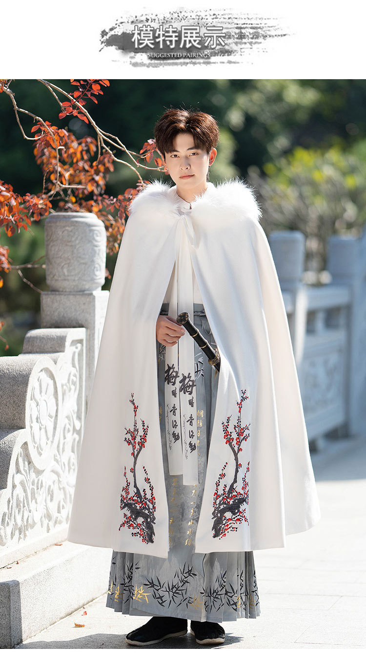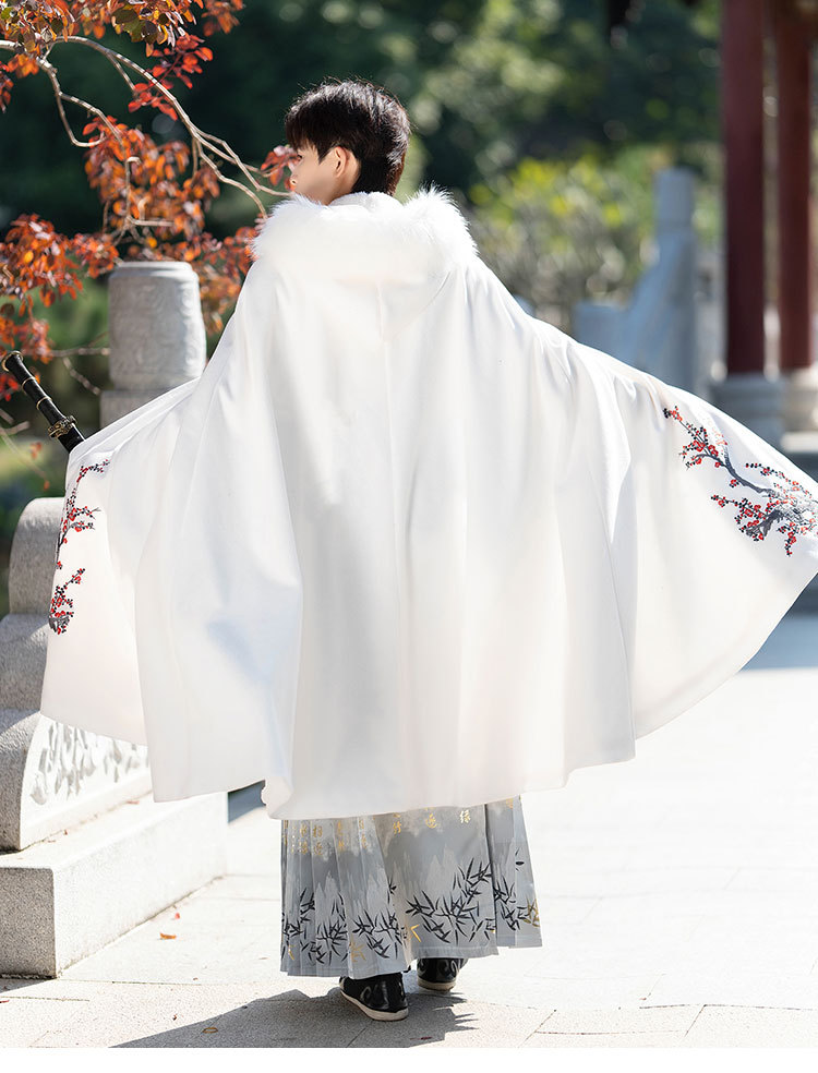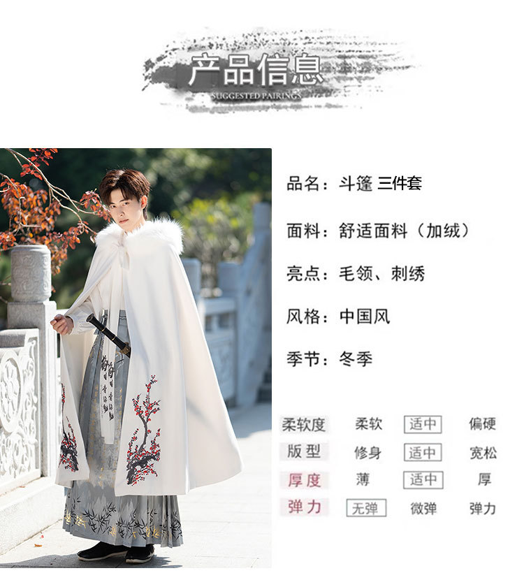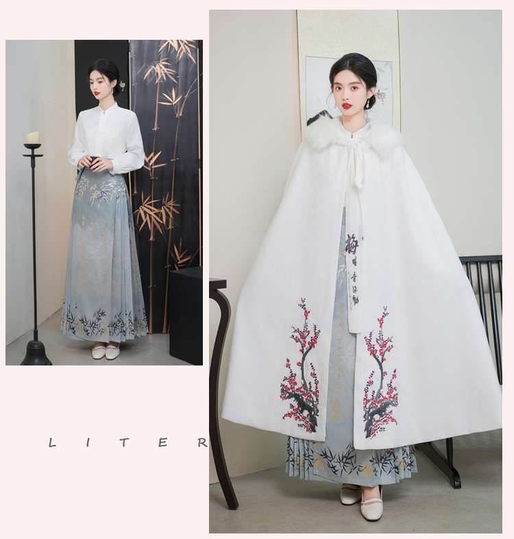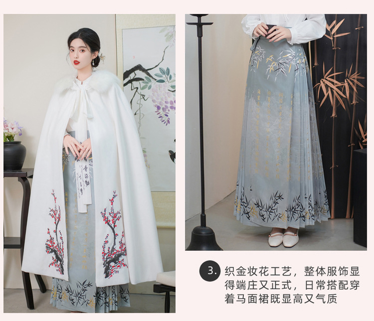 Жаккард Новый китайский стиль Топ XY9186; Тканые золото жилет юбка XY9186; Белый плащ на флисовой подкладке + Съемный меховой воротник (свободный размер) XY9186