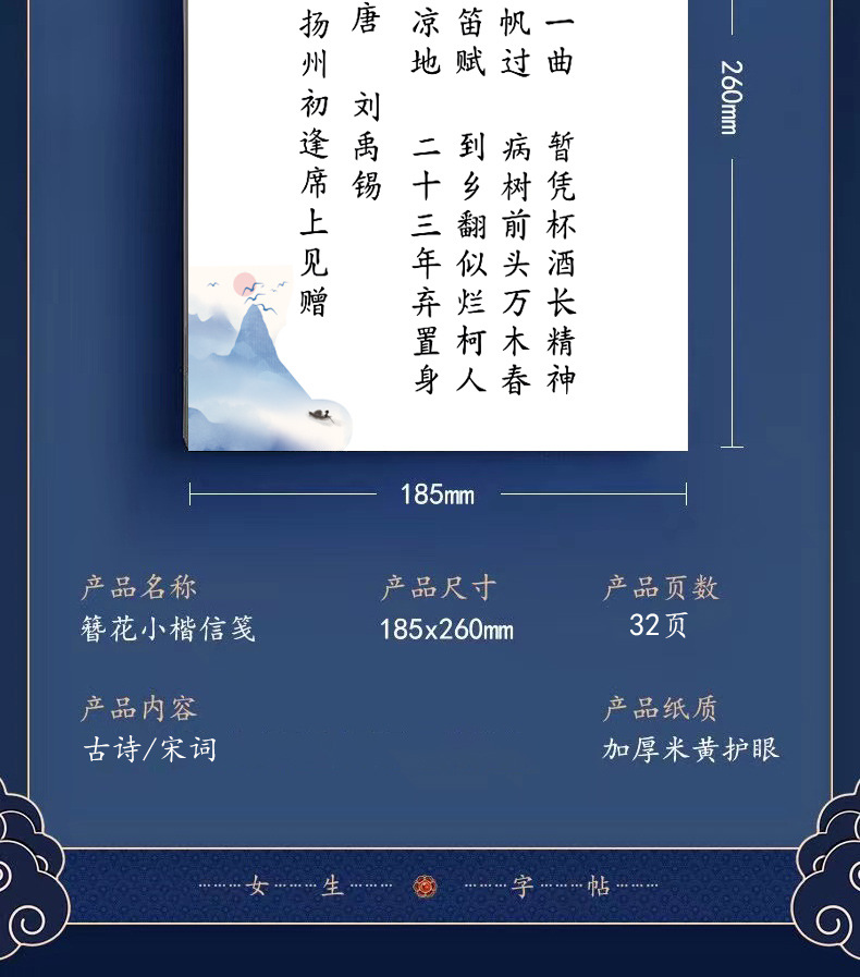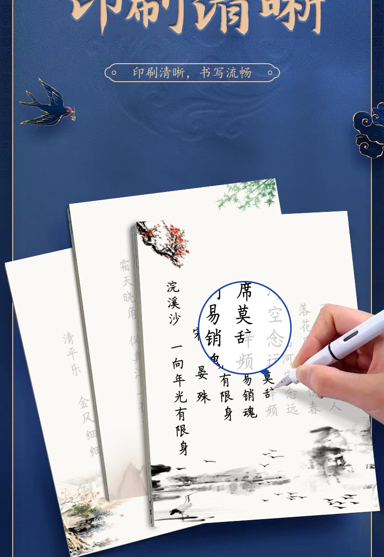 Каллиграфическая тетрадь для практики поэзии и песенной поэзии Тан три, четыре, пятилетняя Обычная письменность китайской иероглифы Красная книга для учеников начальных классов первого класса тетрадь древней поэзии