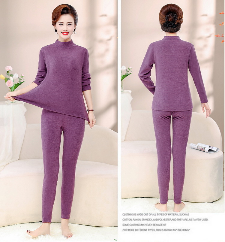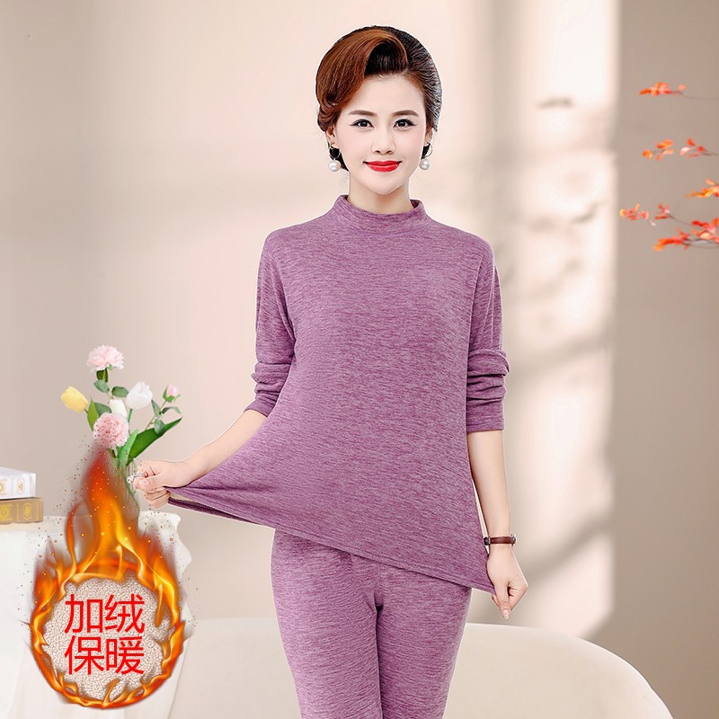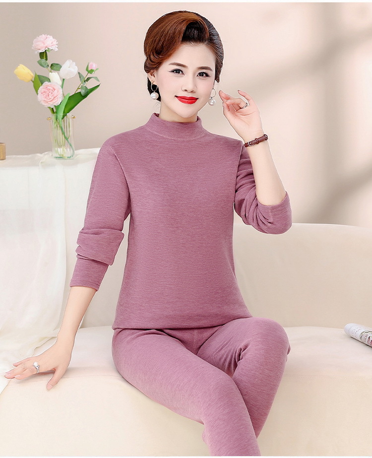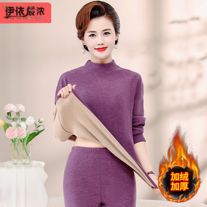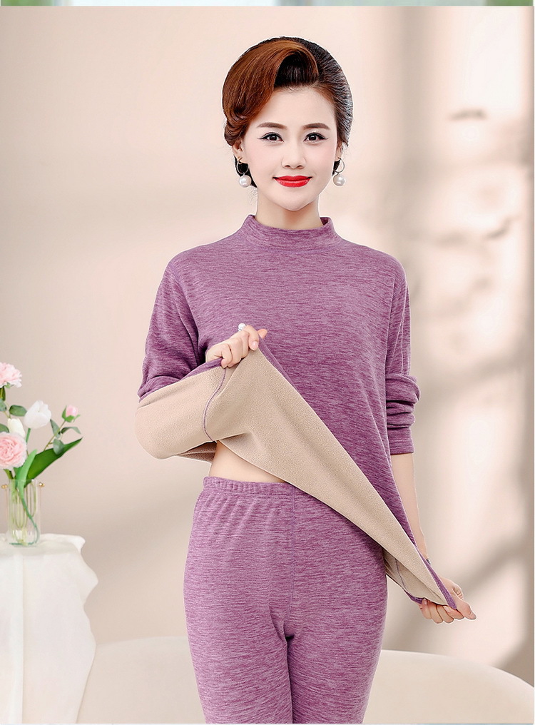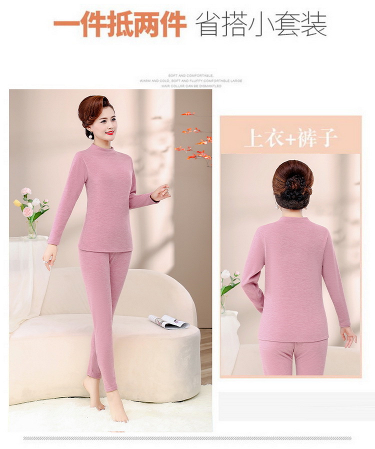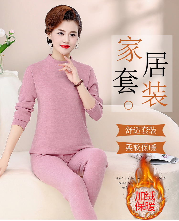 Зимняя одежда для мам, однотонная теплая одежда на флисовой подкладке, костюм, женская одежда среднего возраста, водолазка, теплый воротник, комплект из двух предметов, оптовая продажа
