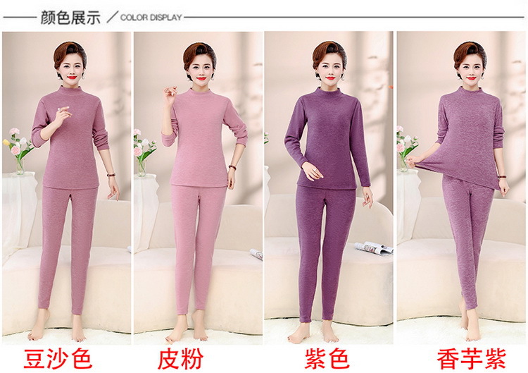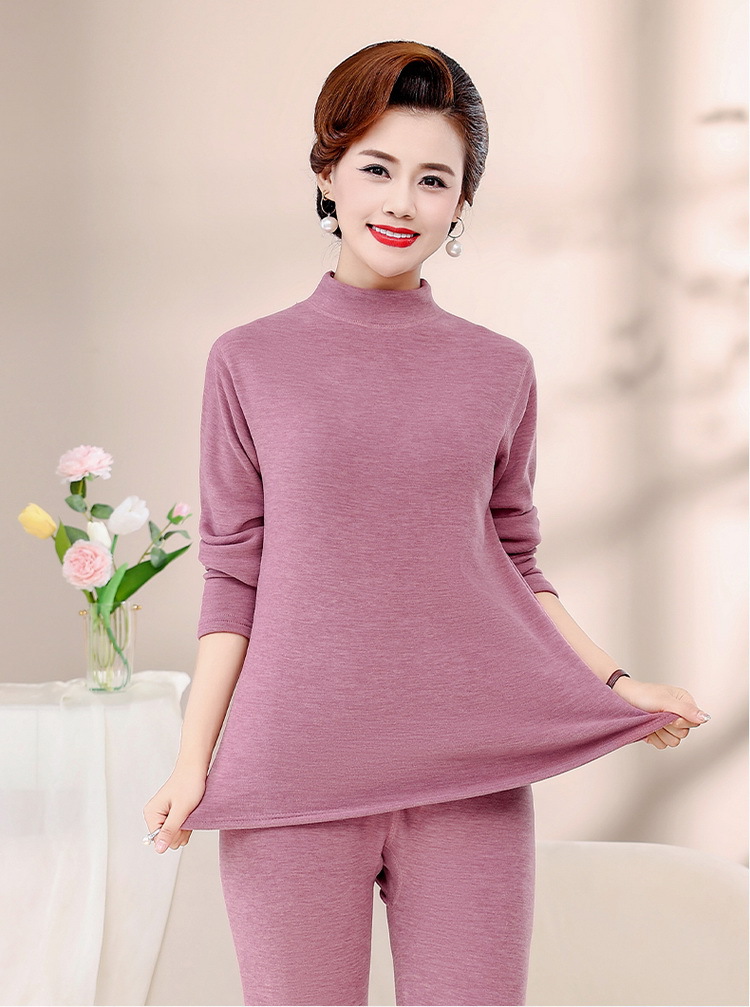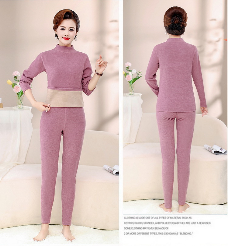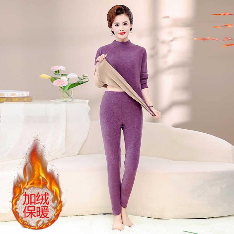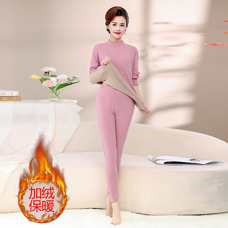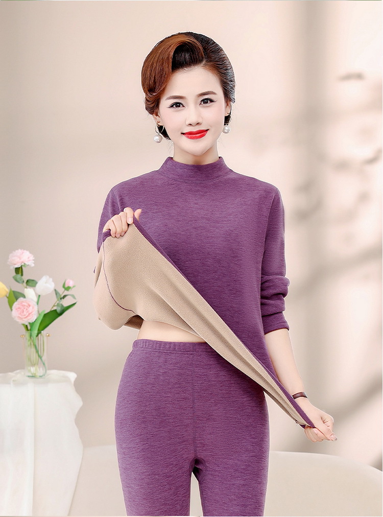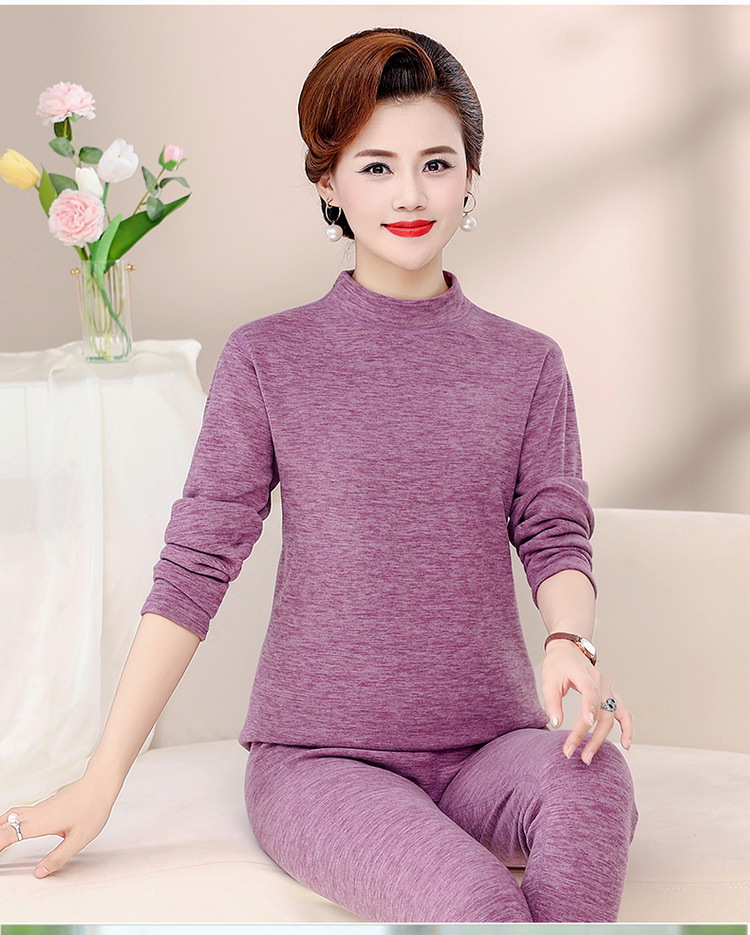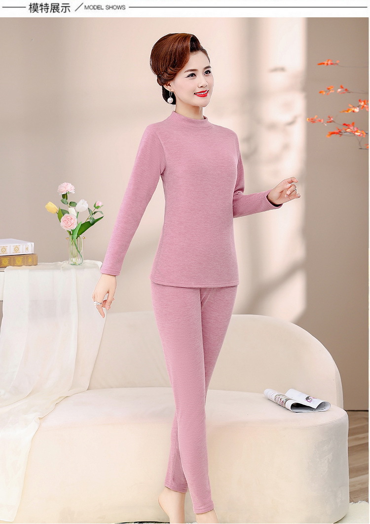 Зимняя одежда для мам, однотонная теплая одежда на флисовой подкладке, костюм, женская одежда среднего возраста, водолазка, теплый воротник, комплект из двух предметов, оптовая продажа