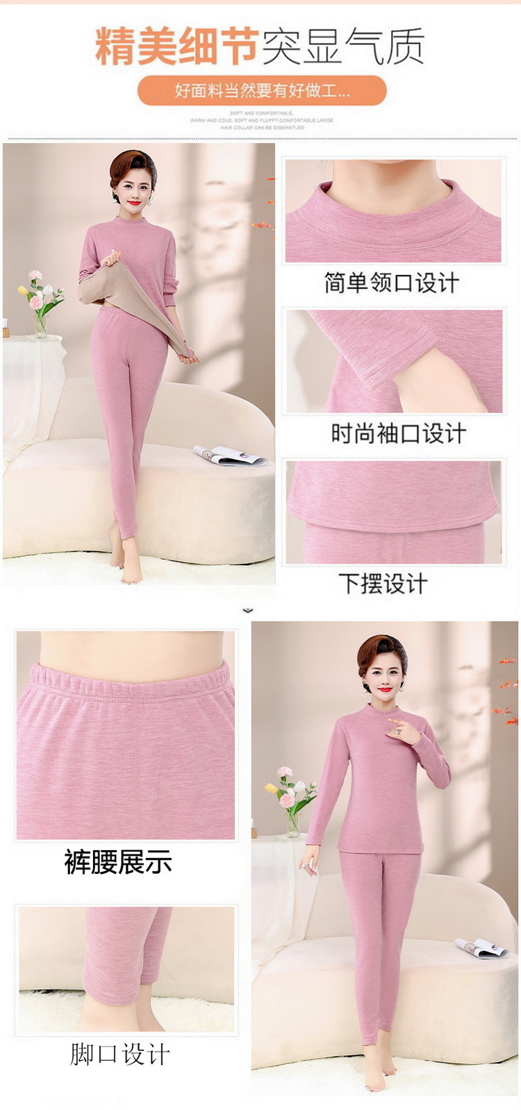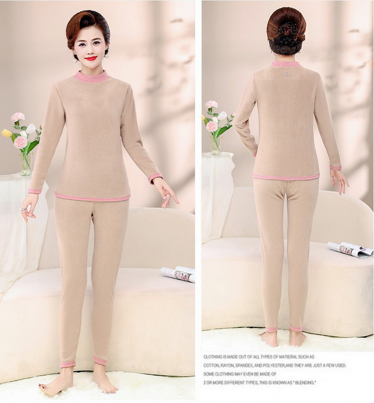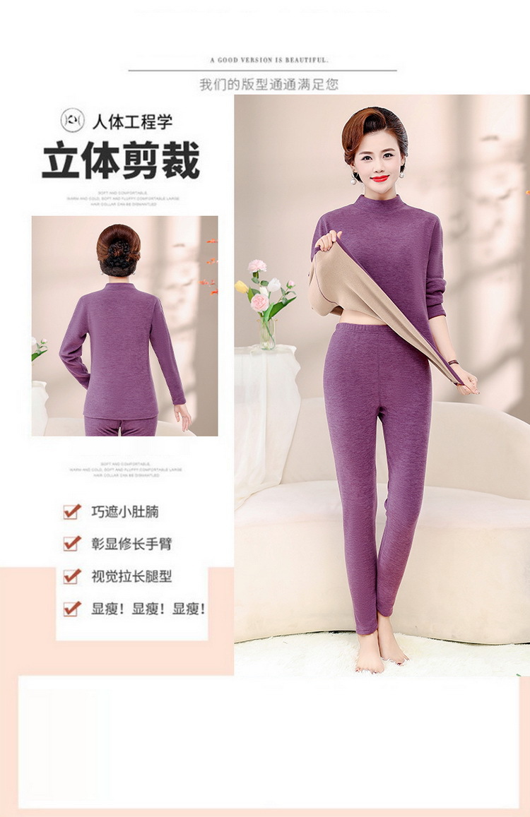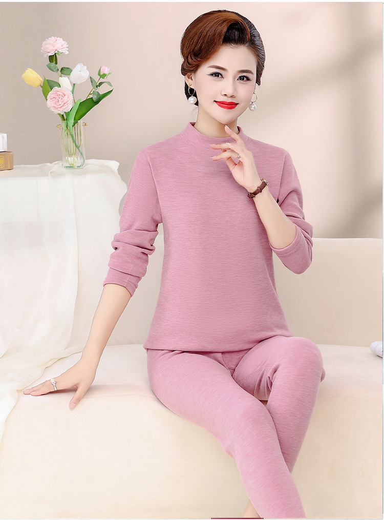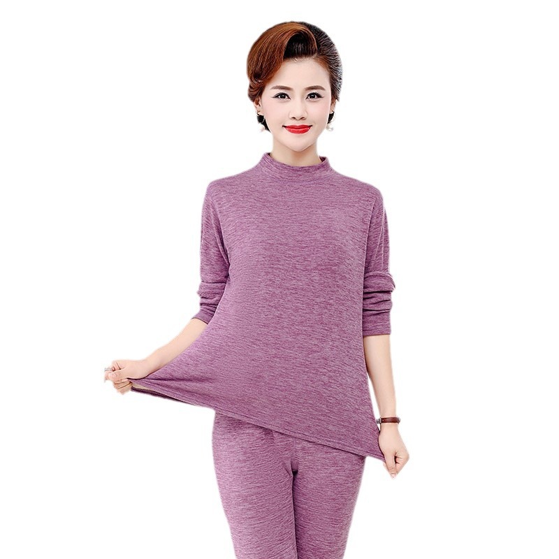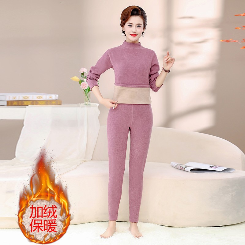 Зимняя одежда для мам, однотонная теплая одежда на флисовой подкладке, костюм, женская одежда среднего возраста, водолазка, теплый воротник, комплект из двух предметов, оптовая продажа