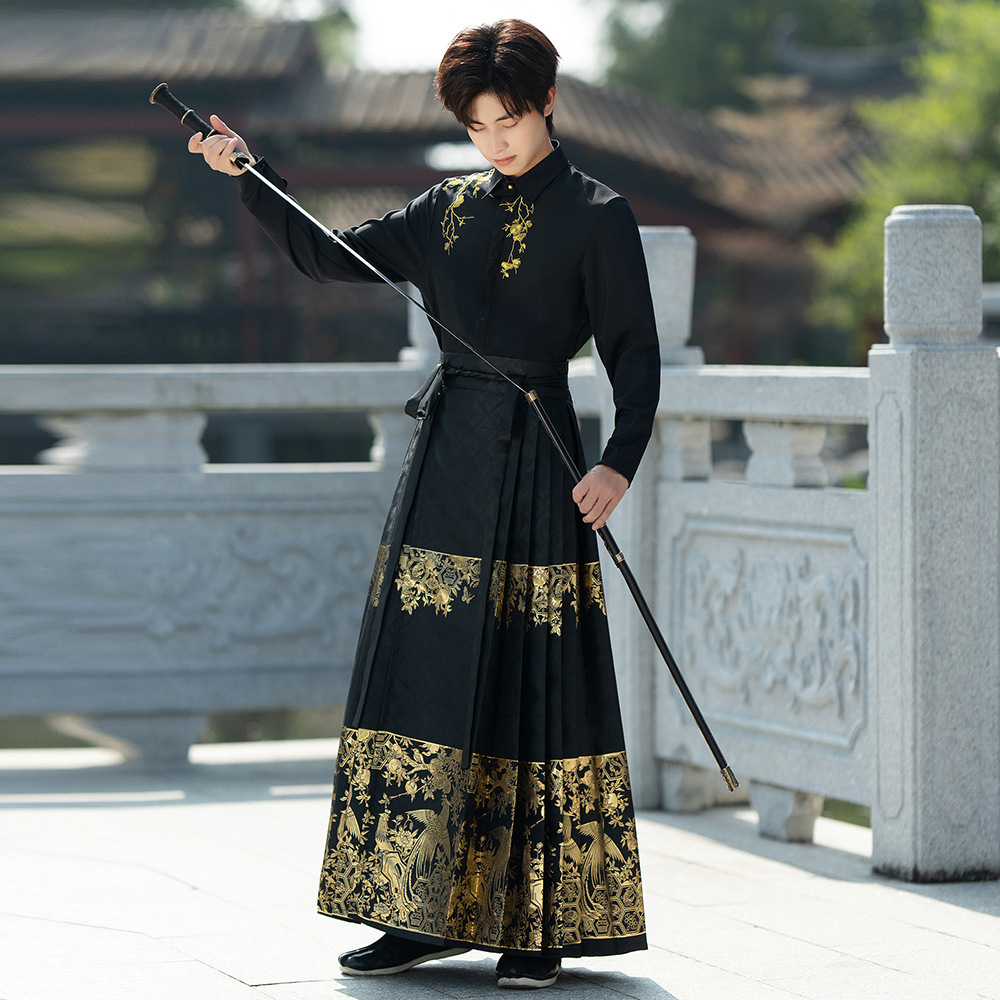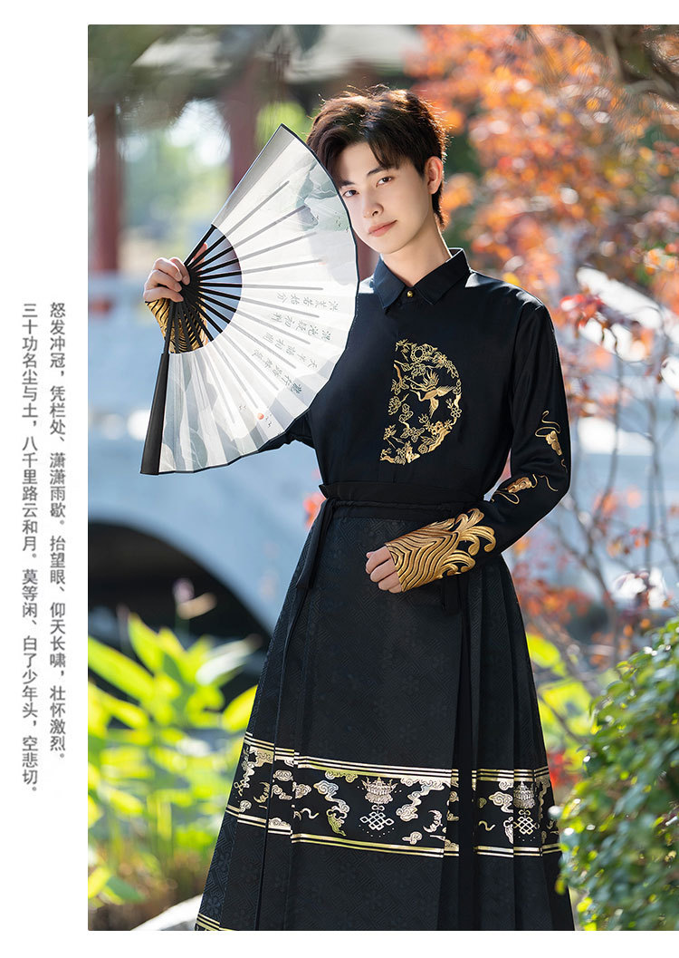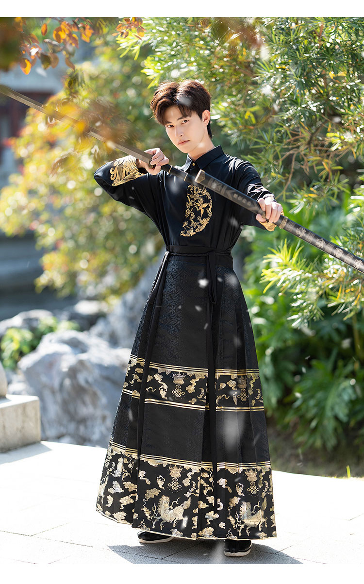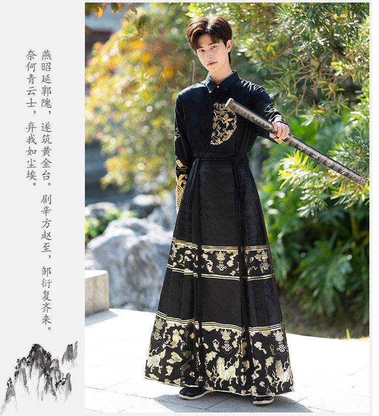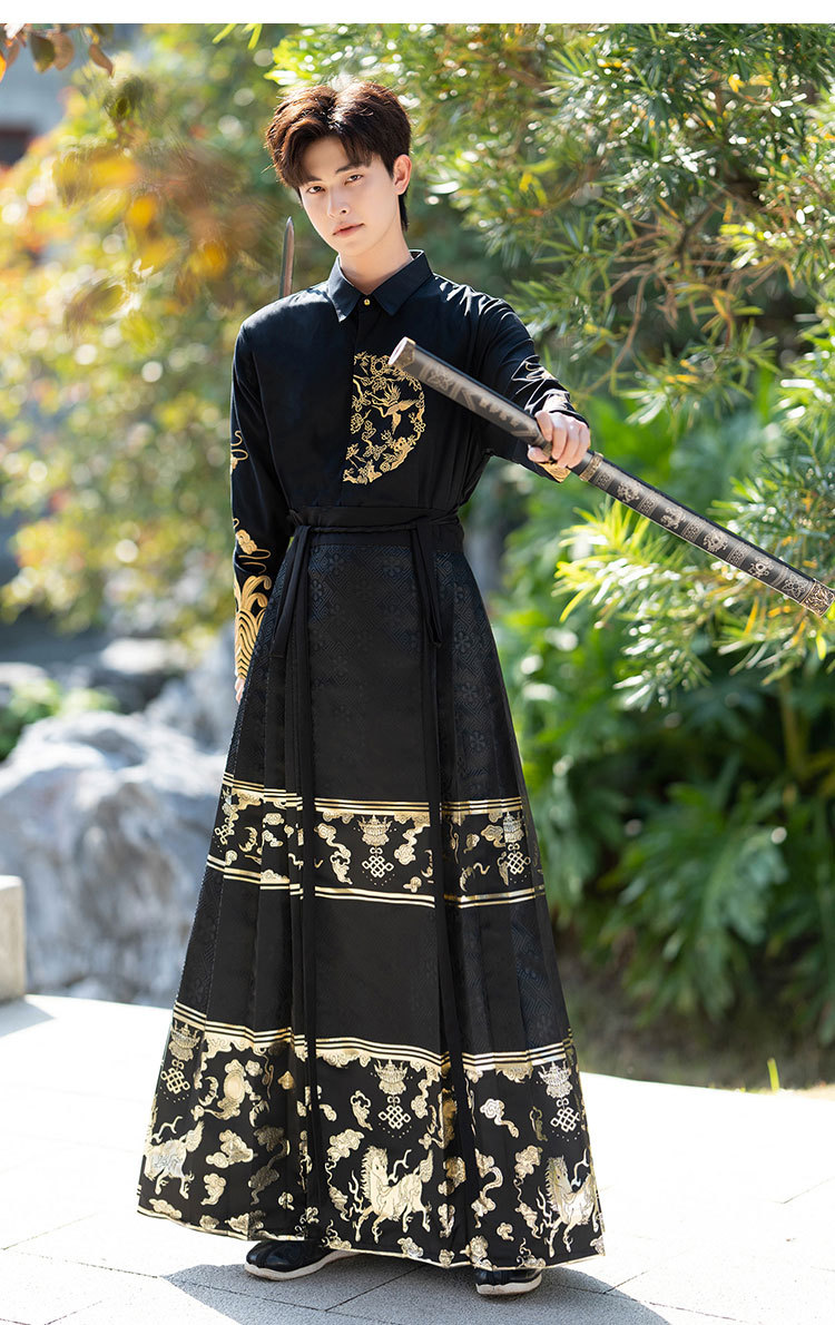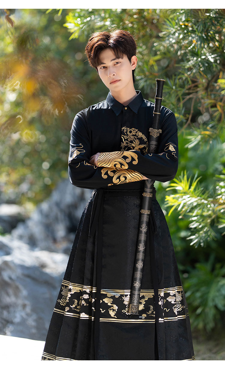 Настоящий выстрел с вышивкой золотого нефрита Рубашка с вышивкой в китайском стиле Мужская рубашка с длинным рукавом тканый Золотой жилет юбка на флисовой подкладке утолщенный плащ