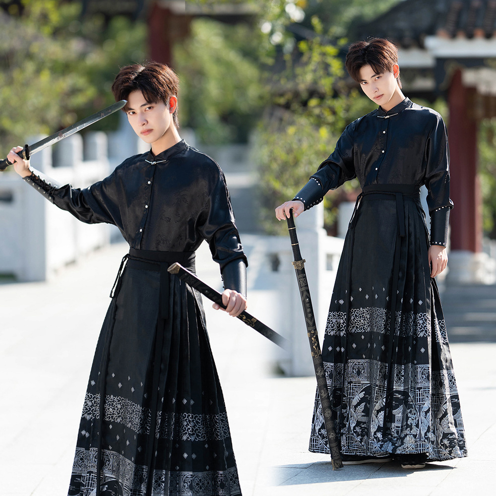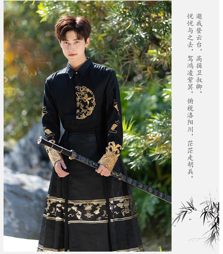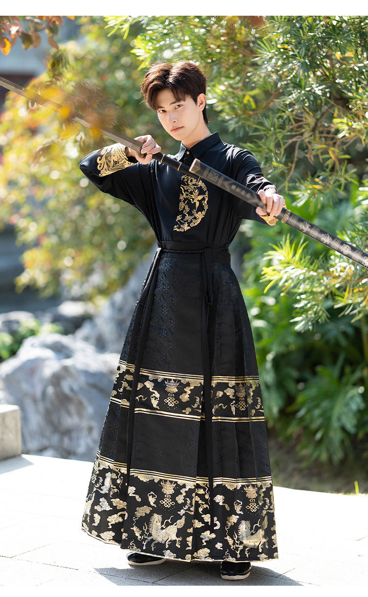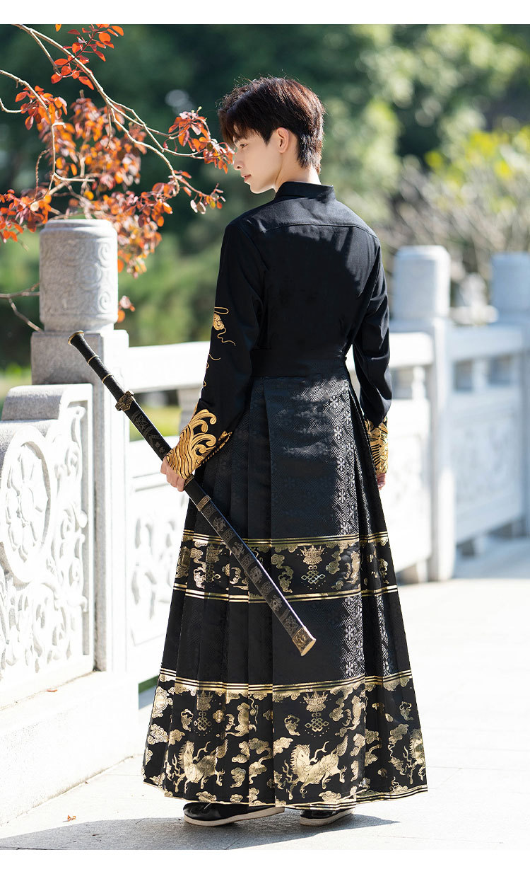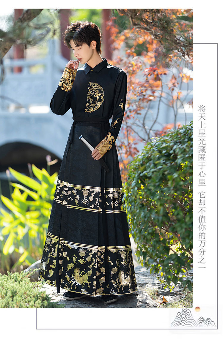 Настоящий выстрел с вышивкой золотого нефрита Рубашка с вышивкой в китайском стиле Мужская рубашка с длинным рукавом тканый Золотой жилет юбка на флисовой подкладке утолщенный плащ
