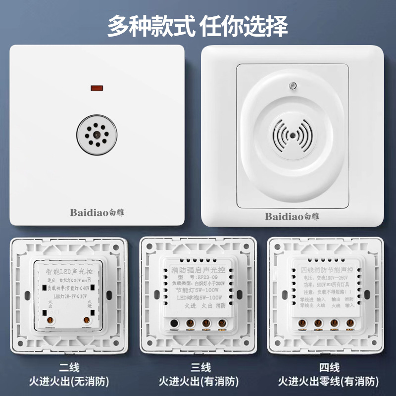 Белый резной переключатель звука и света вторая линия третья линия с пожарным усилением коридора светодиодная индукционная задержка переключатель панели