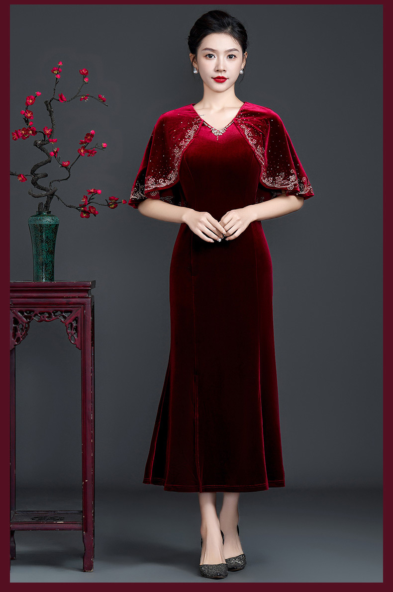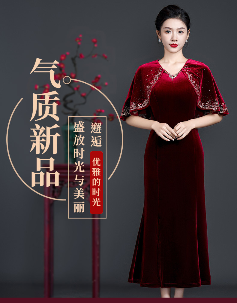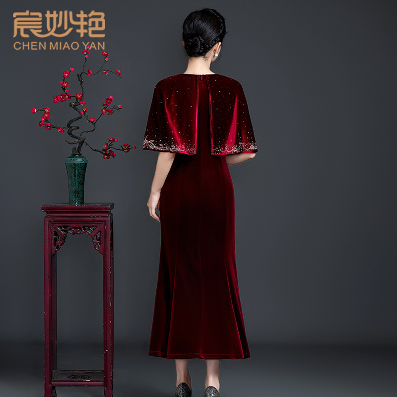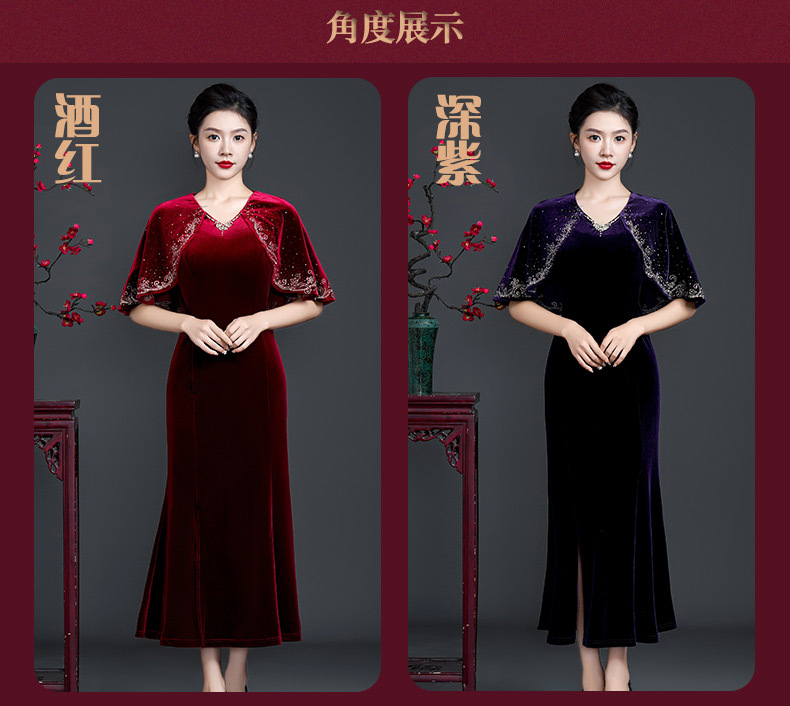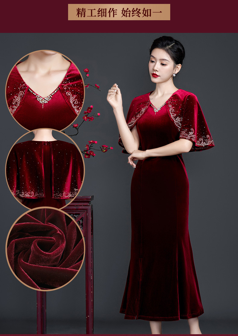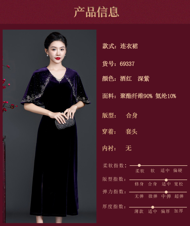 Среднее и старое женское платье 2024 новый весенний и осенний темперамент свекрови благородное золотое бархатное платье свадебное платье мама платье