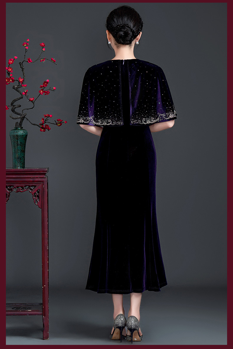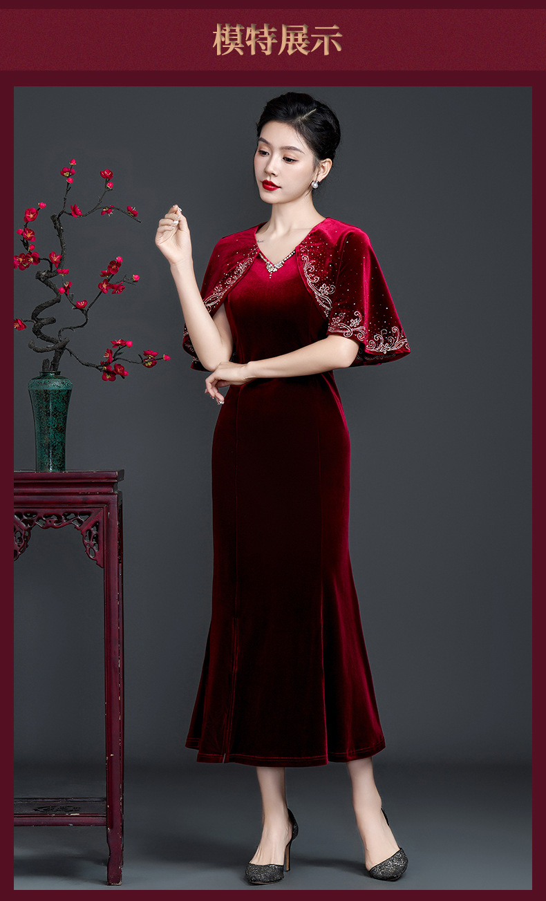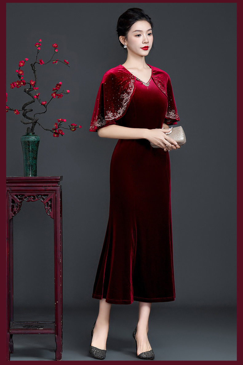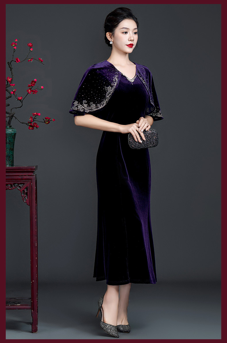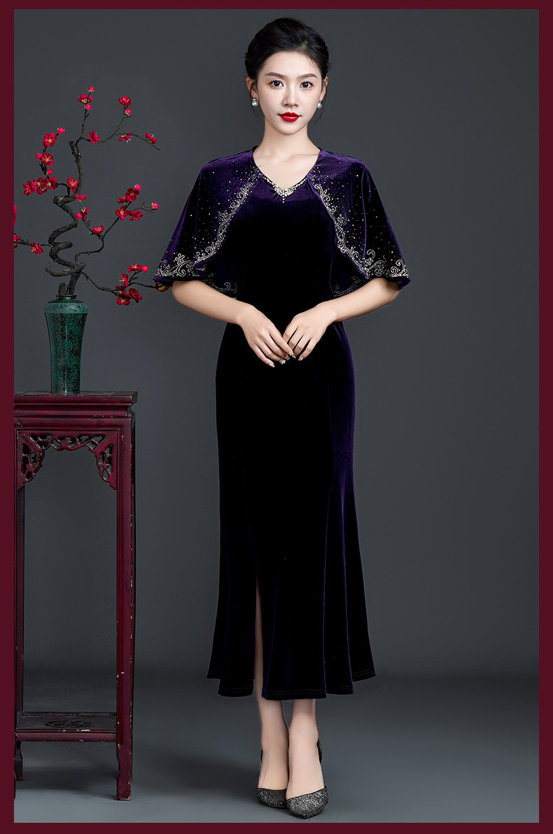 Среднее и старое женское платье 2024 новый весенний и осенний темперамент свекрови благородное золотое бархатное платье свадебное платье мама платье