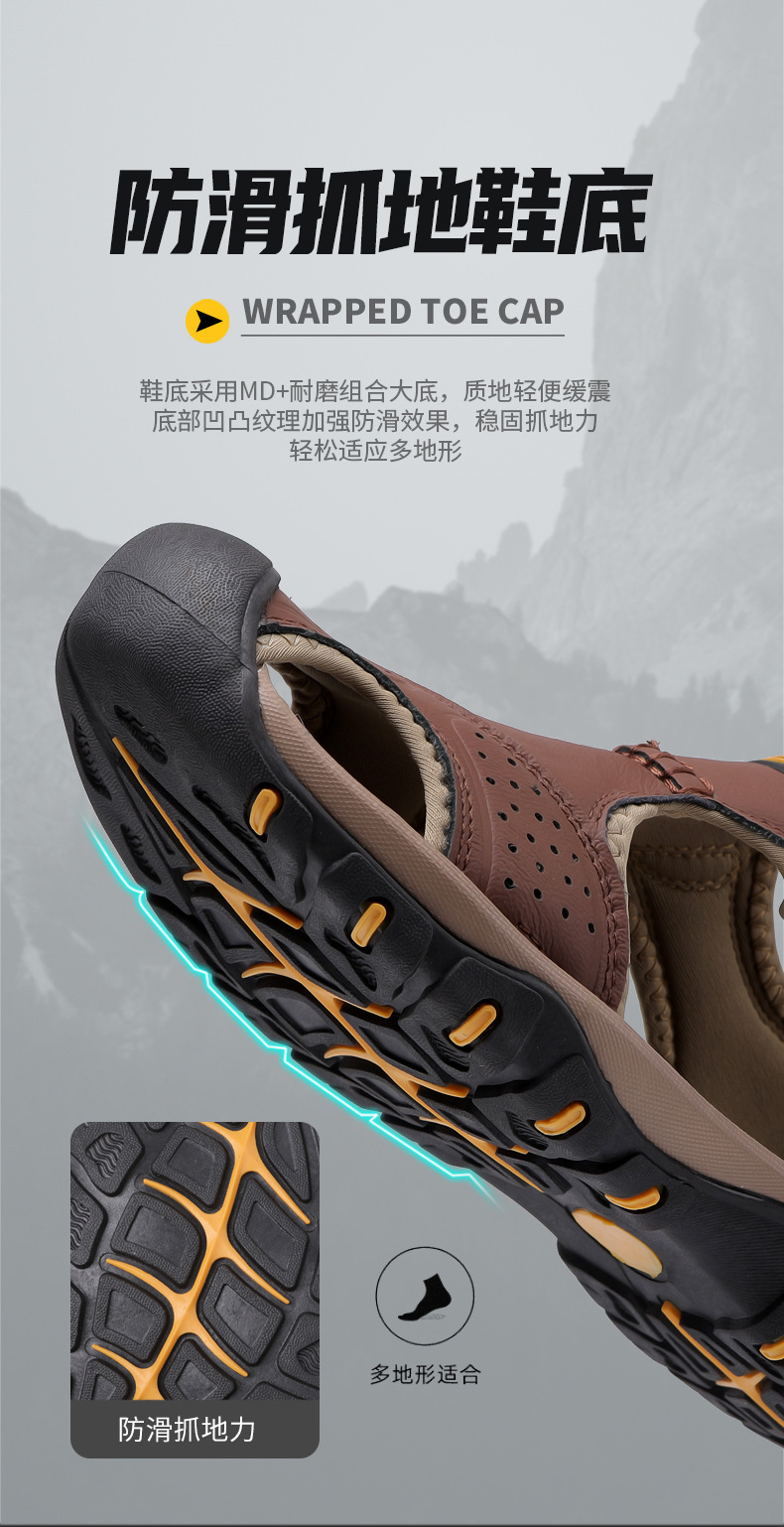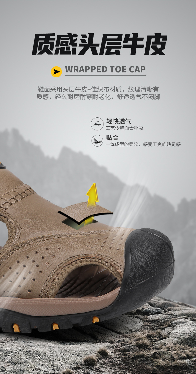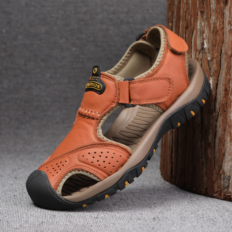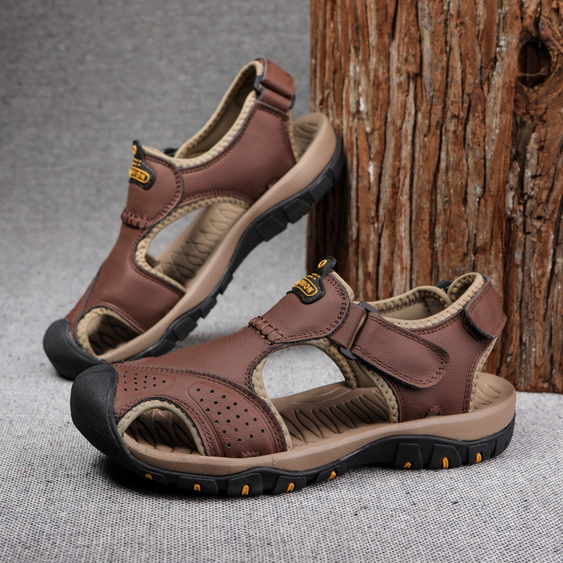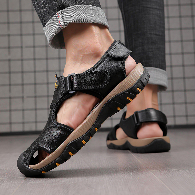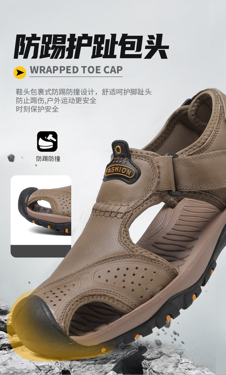 2025 новые трансграничные сандалии, мужские модные тапочки из натуральной кожи с носком, уличная спортивная повседневная обувь, дышащая мужская обувь, пляжная обувь