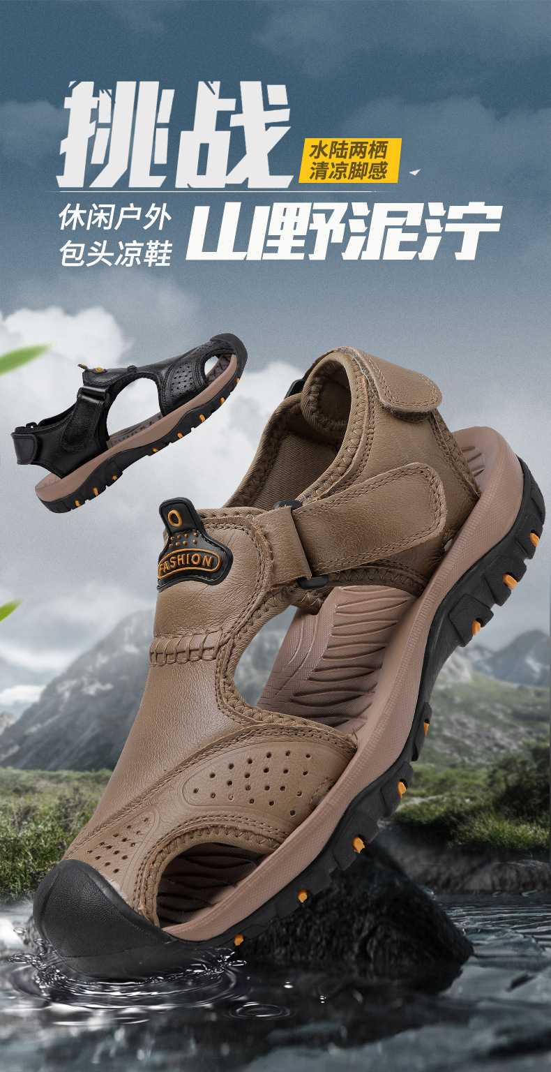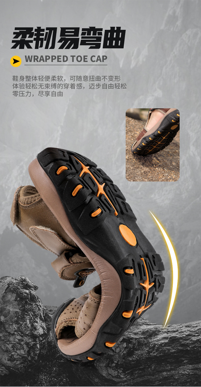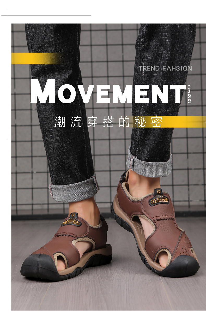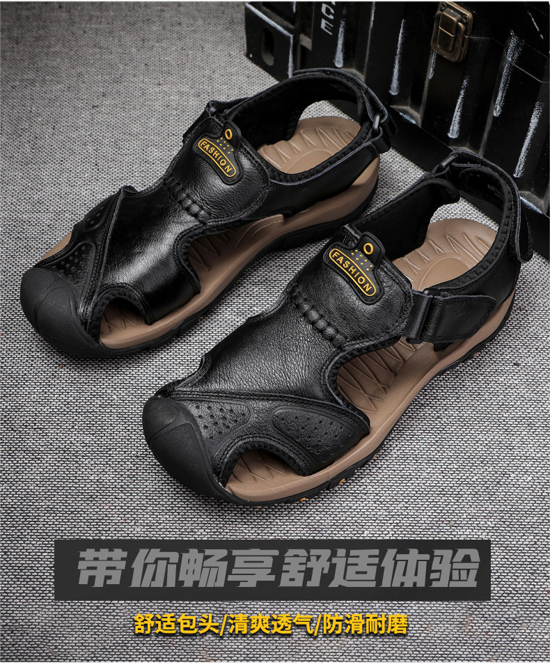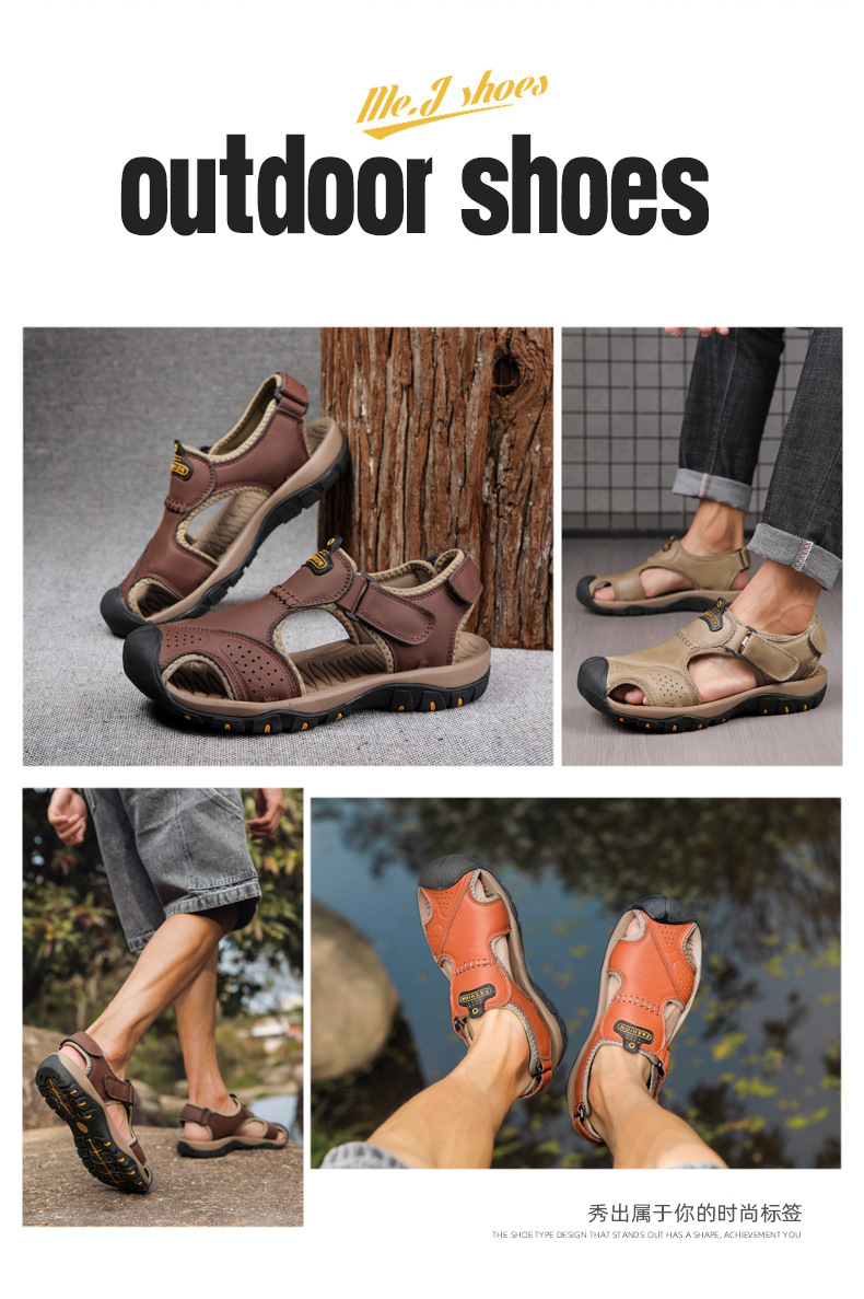 2025 новые трансграничные сандалии, мужские модные тапочки из натуральной кожи с носком, уличная спортивная повседневная обувь, дышащая мужская обувь, пляжная обувь