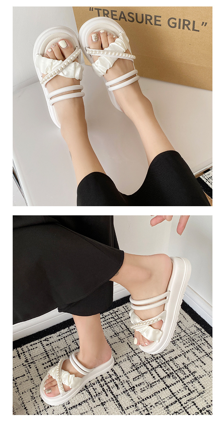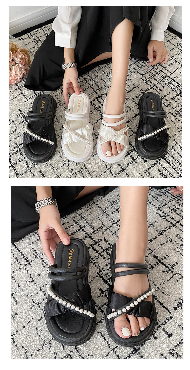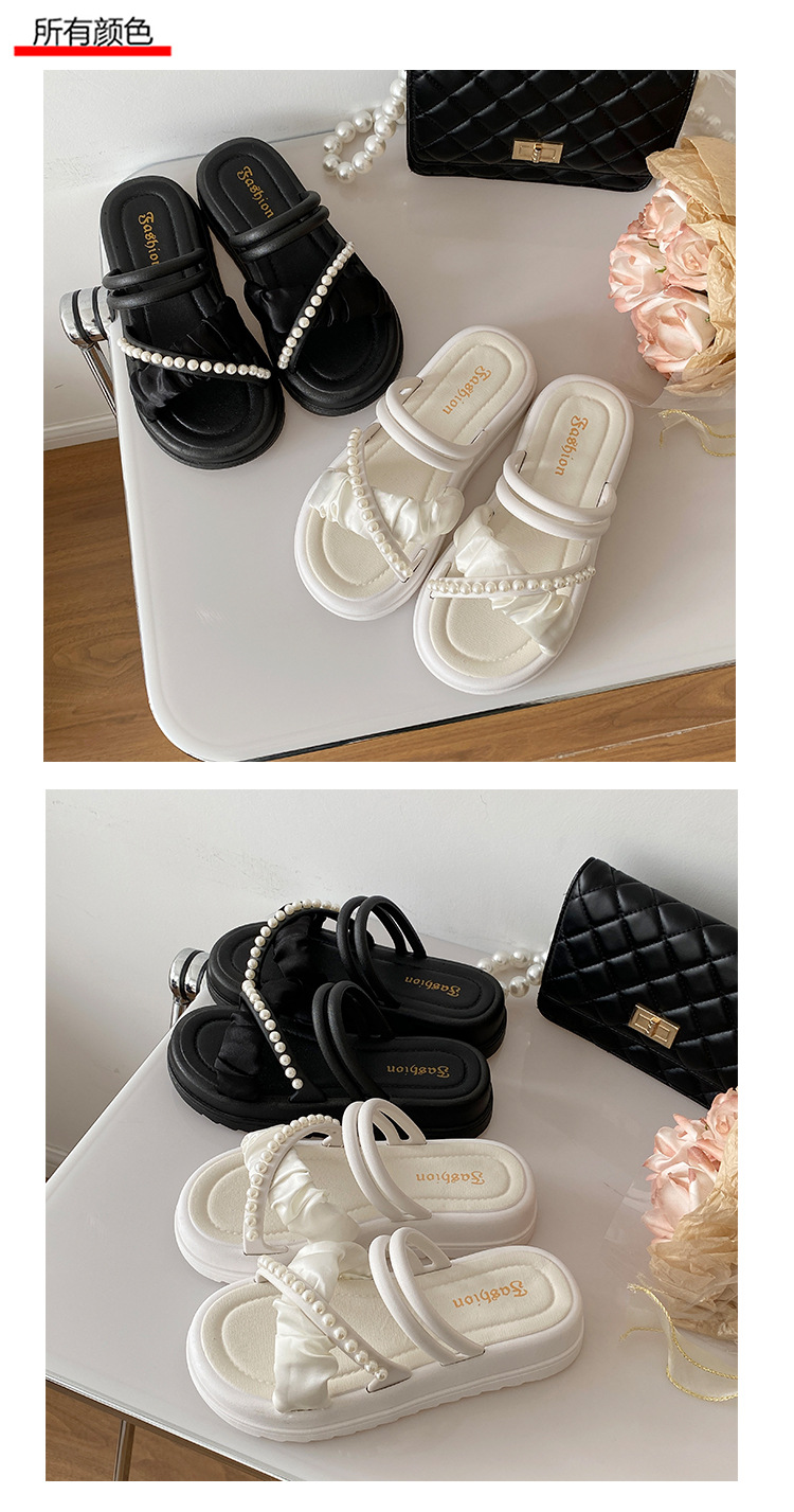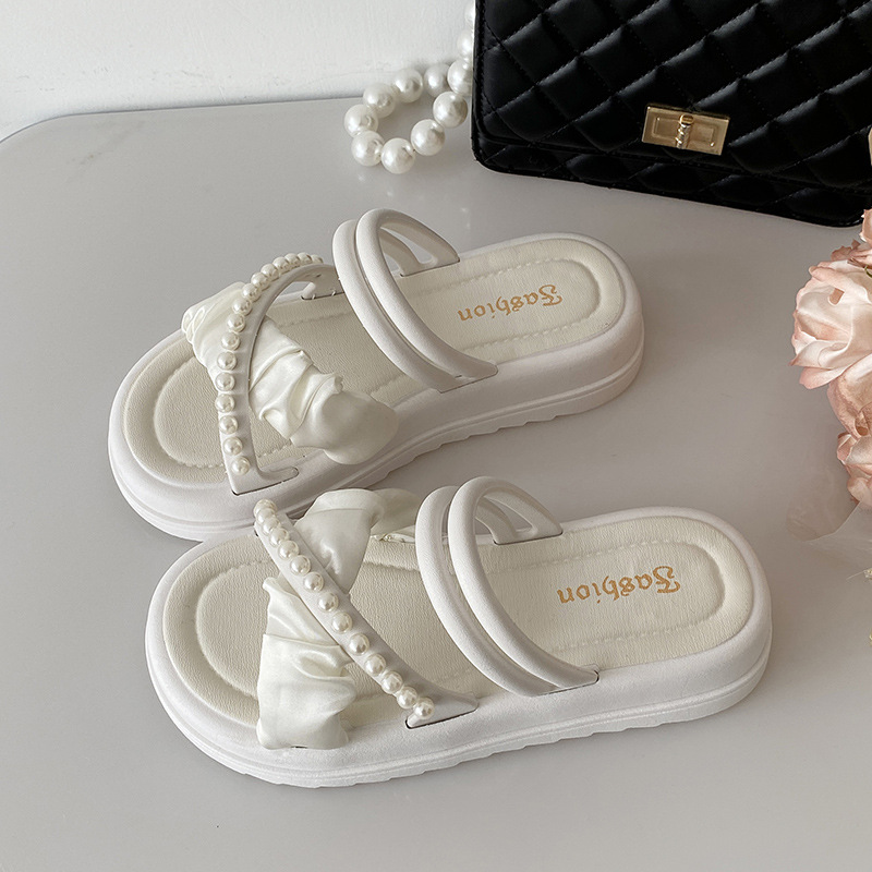 Двусторонние сандалии женские в сказочном стиле 2024 года, новая летняя уличная онлайн-обувь на платформе с красным жемчугом, римская пляжная обувь