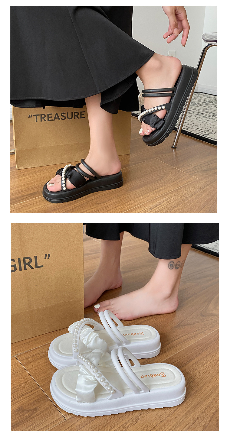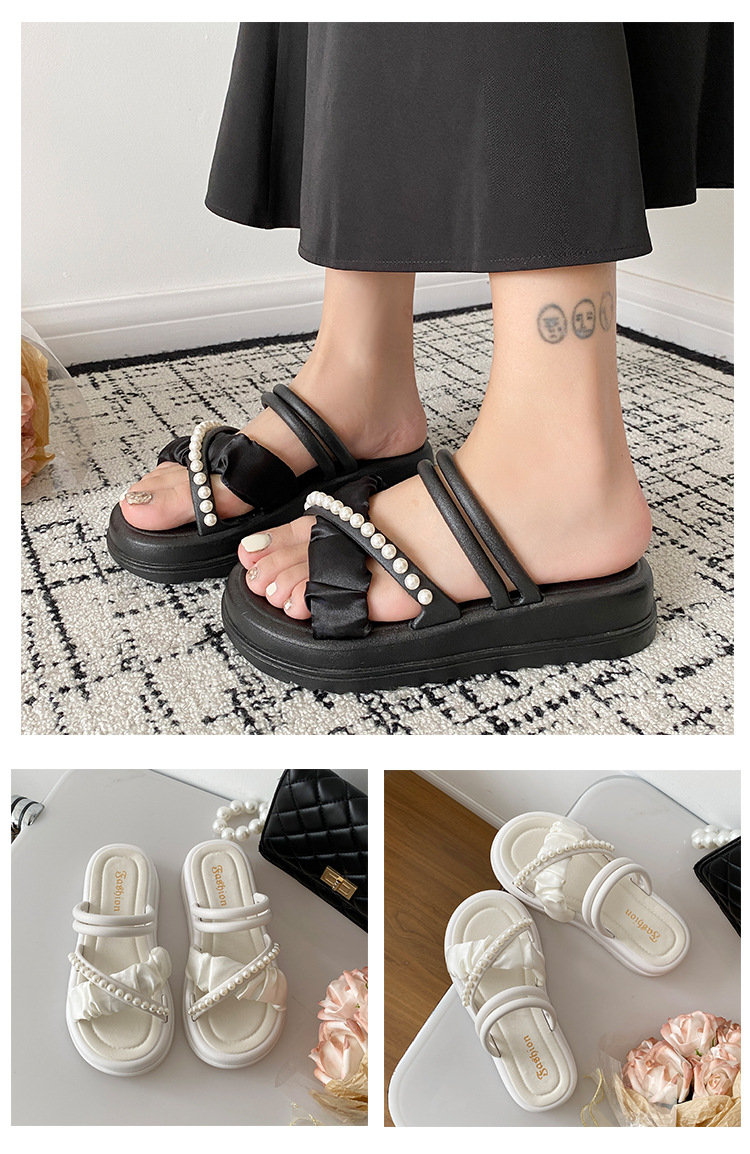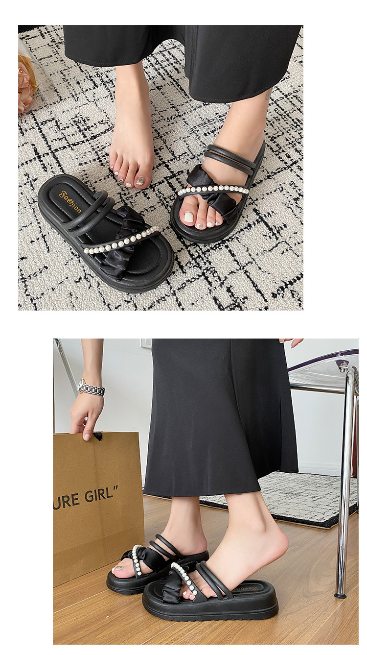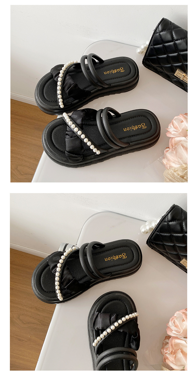 Двусторонние сандалии женские в сказочном стиле 2024 года, новая летняя уличная онлайн-обувь на платформе с красным жемчугом, римская пляжная обувь