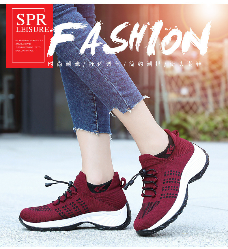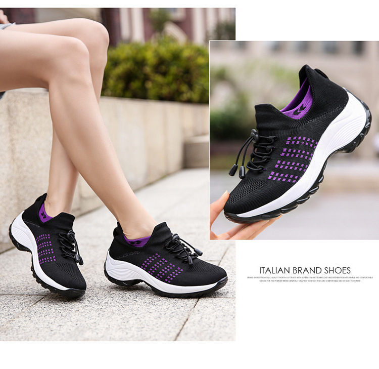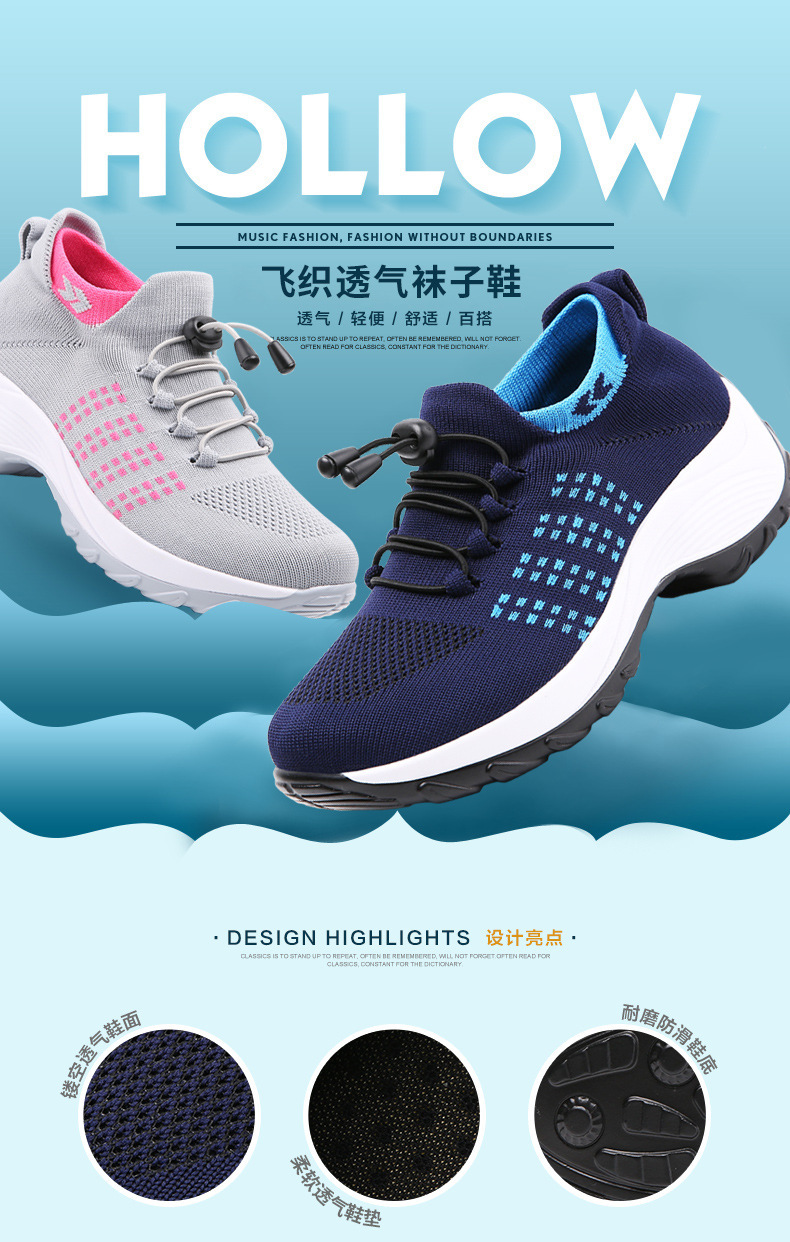 Новые трансграничные туфли большого размера с высокой эластичной тканой дышащей сеткой, модные легкие носки, женская обувь, спортивная обувь Цюаньчжоу