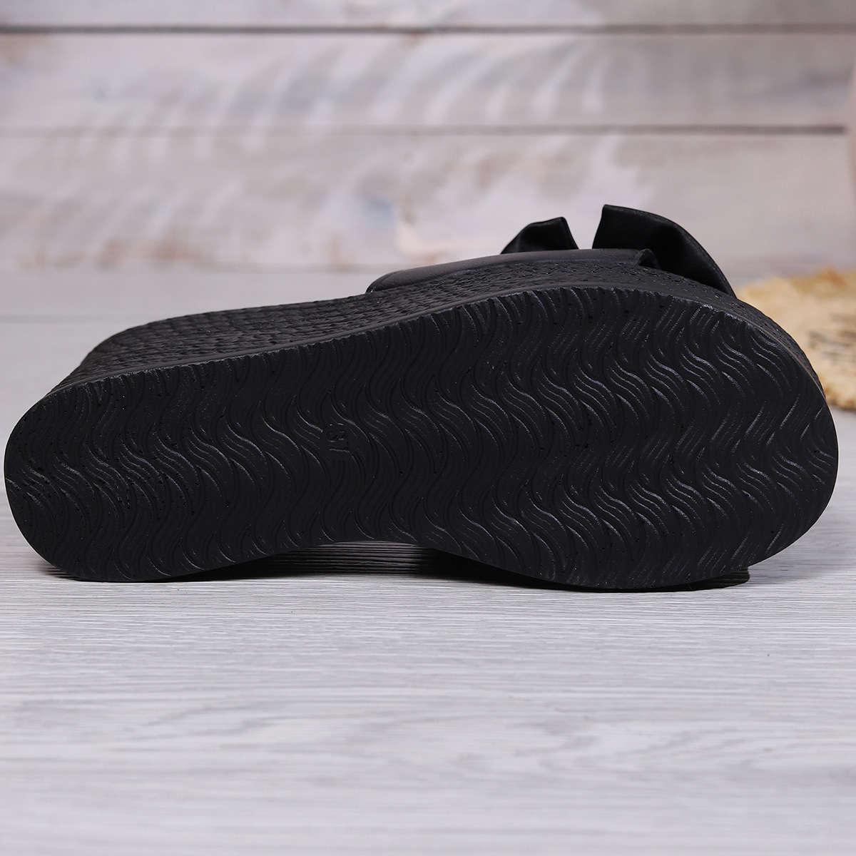 Внешняя торговля плюс размер толстой нижней лук тапочки женские Мода металлическая пряжка удобный клин с платформы нижней Тапочки 43