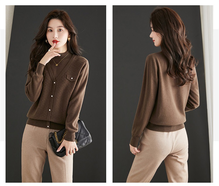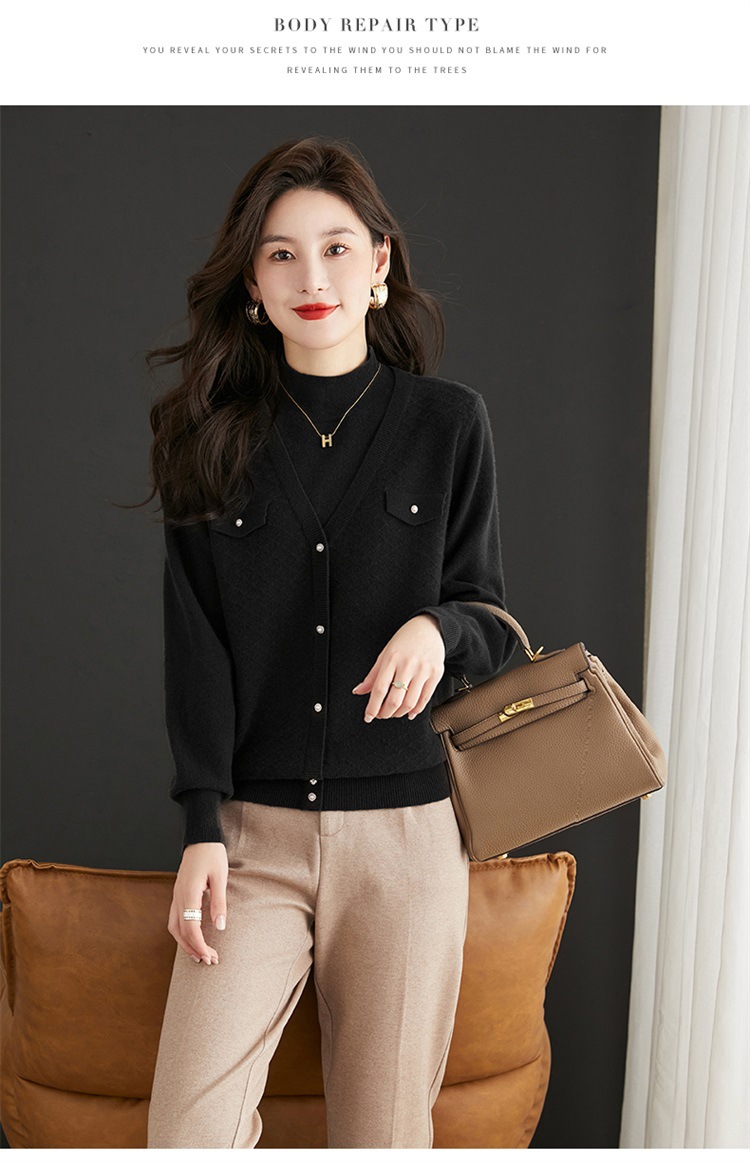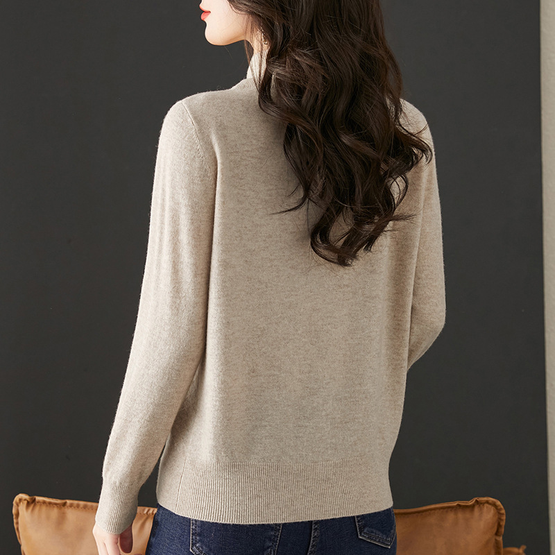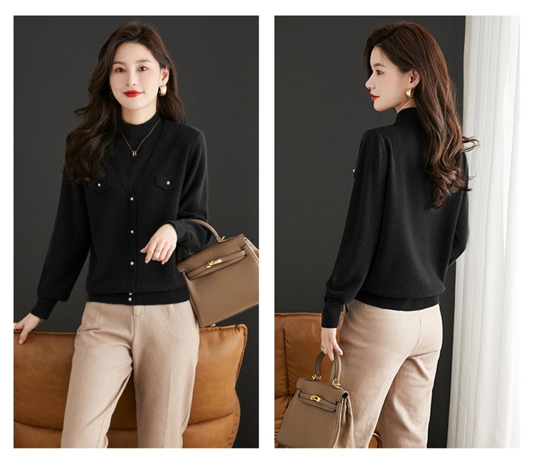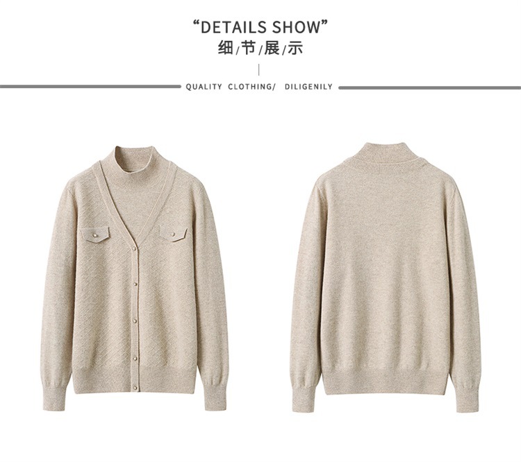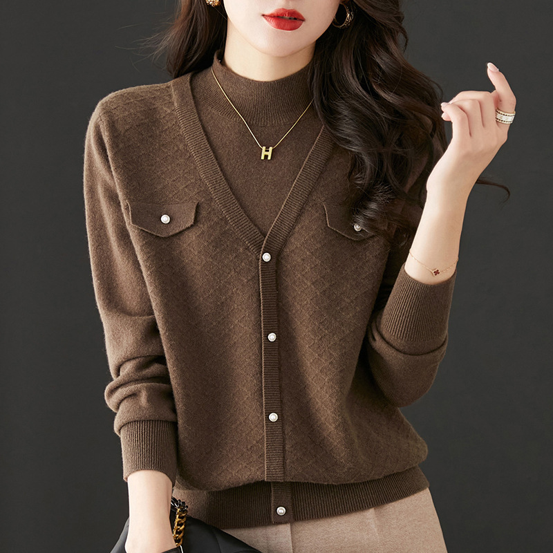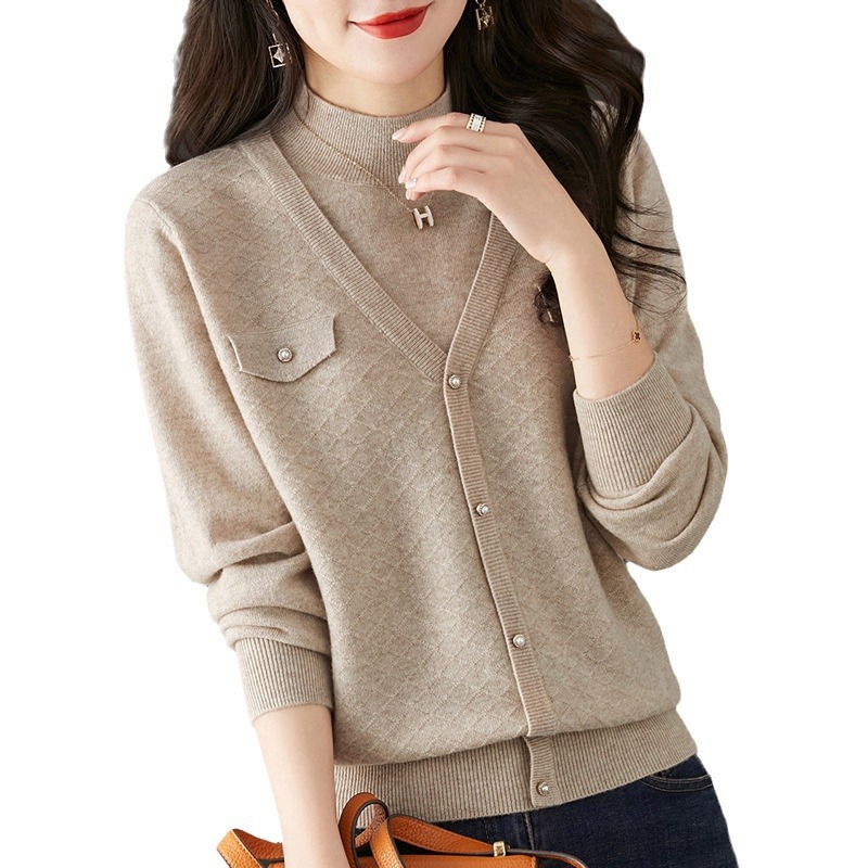 Женский свитер с воротником-стойкой, имитация двухслойного топа, новинка осени-зимы 2025, стильная трикотажная базовая рубашка, весенне-осенний стиль.
