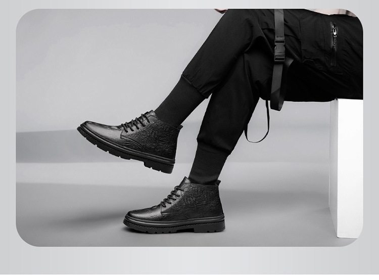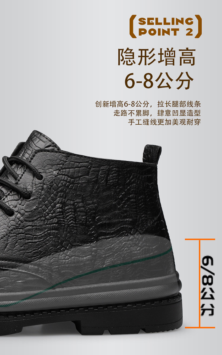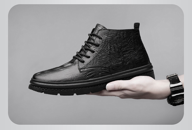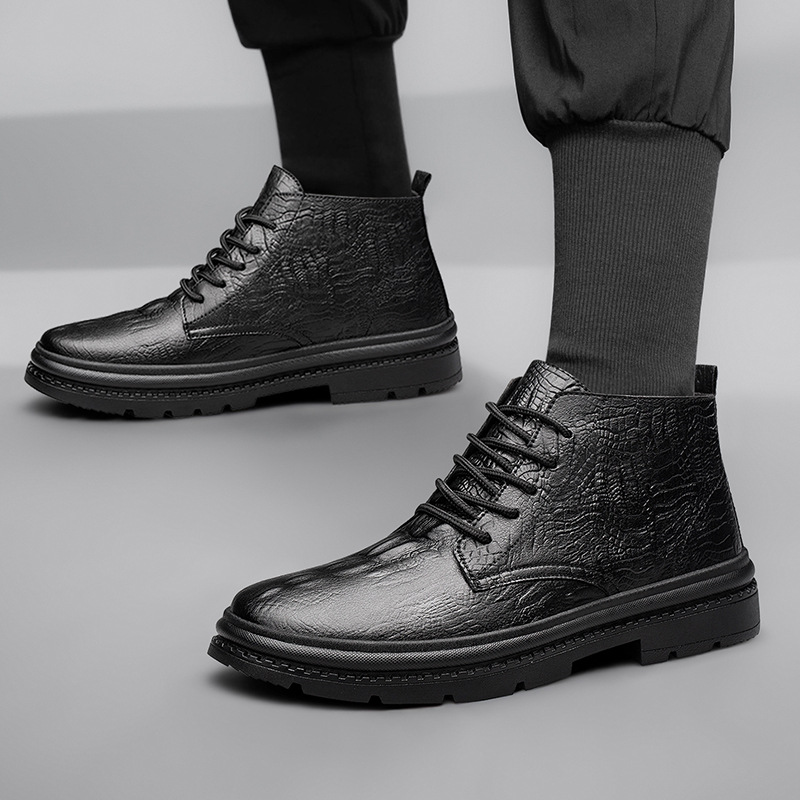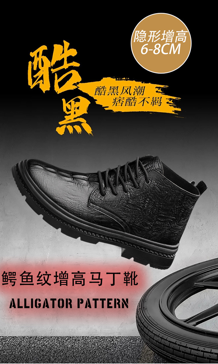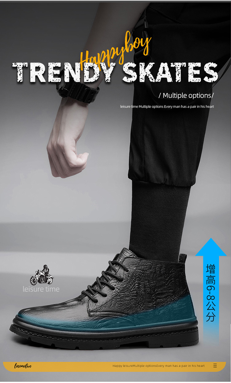 Осенняя новая мужская повседневная обувь средней высоты, дышащая мужская обувь на шнуровке с крокодиловым узором, повседневная обувь, увеличивающая рост, 37/44, оптовая продажа.