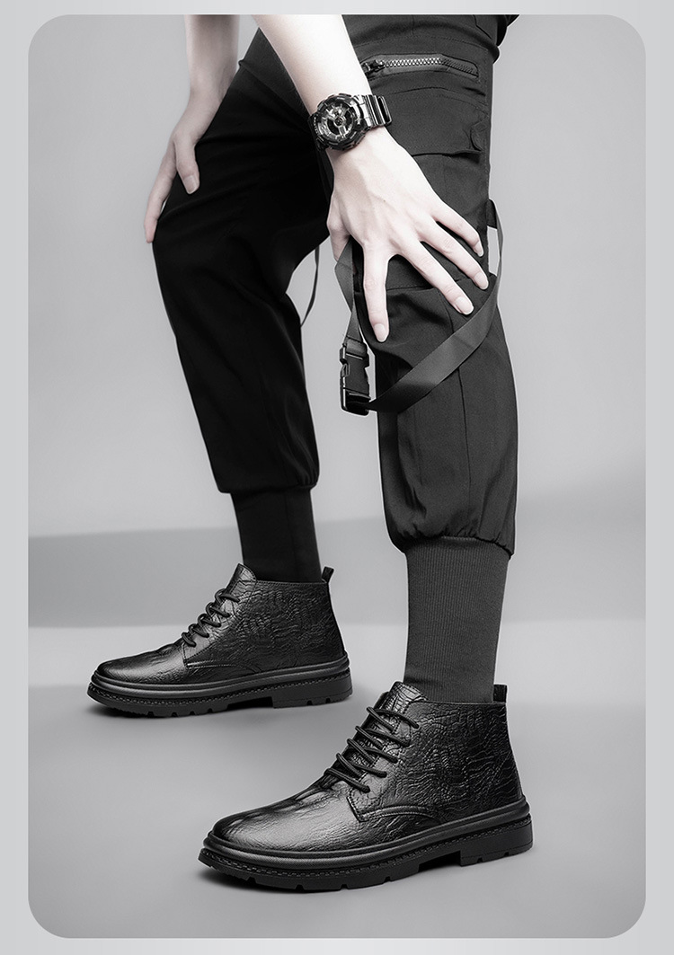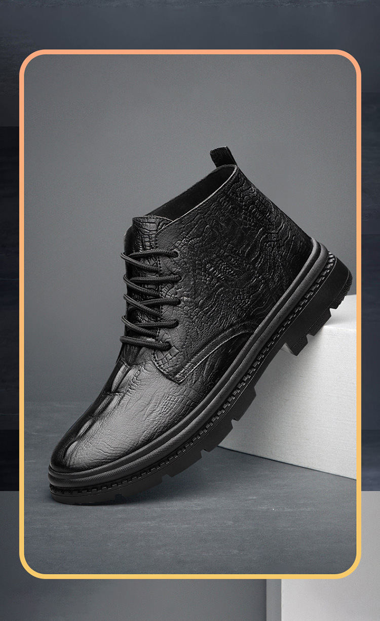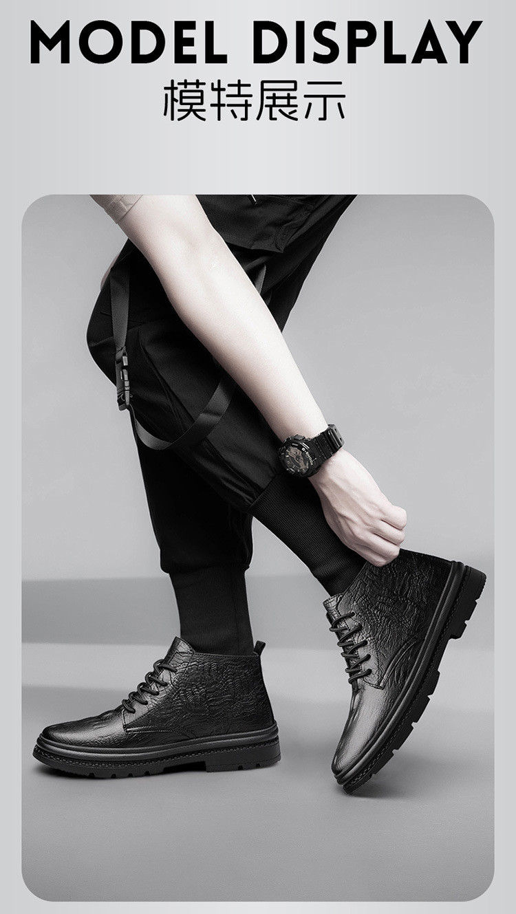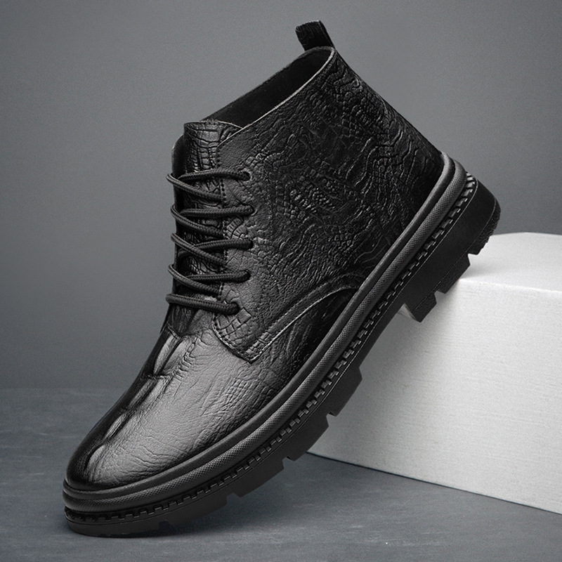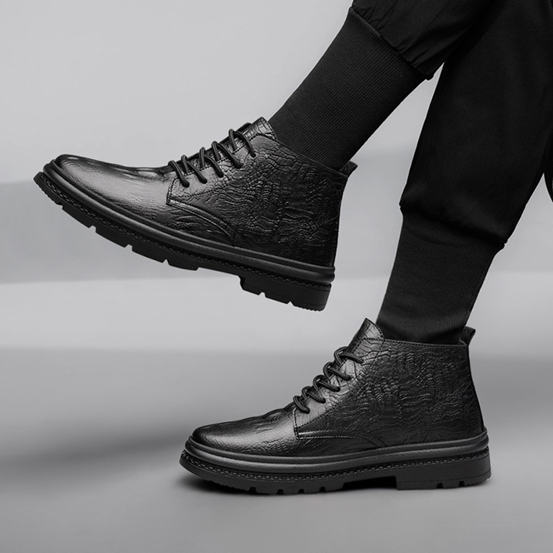 Осенняя новая мужская повседневная обувь средней высоты, дышащая мужская обувь на шнуровке с крокодиловым узором, повседневная обувь, увеличивающая рост, 37/44, оптовая продажа.