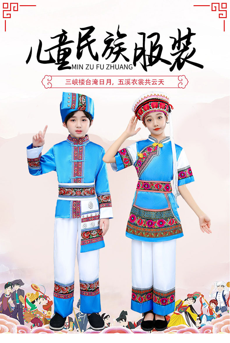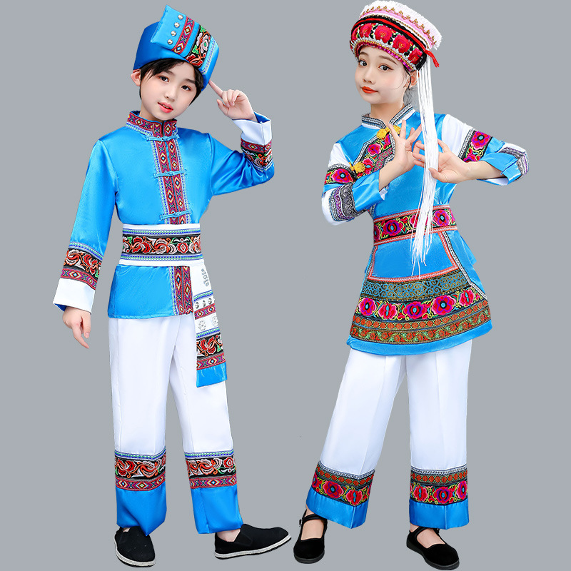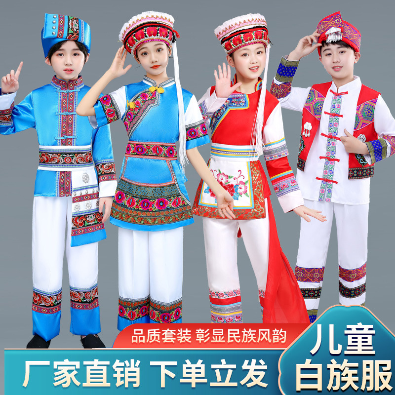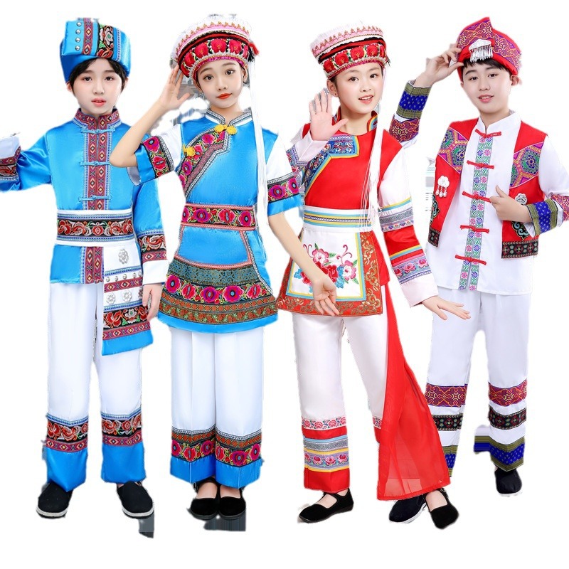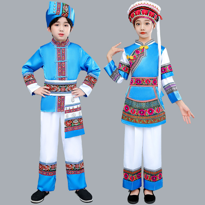 Новый детский этнический костюм бай, женский костюм этнического меньшинства Юньнань Дали, мужской костюм из тыквы, Шелковый костюм для выступлений