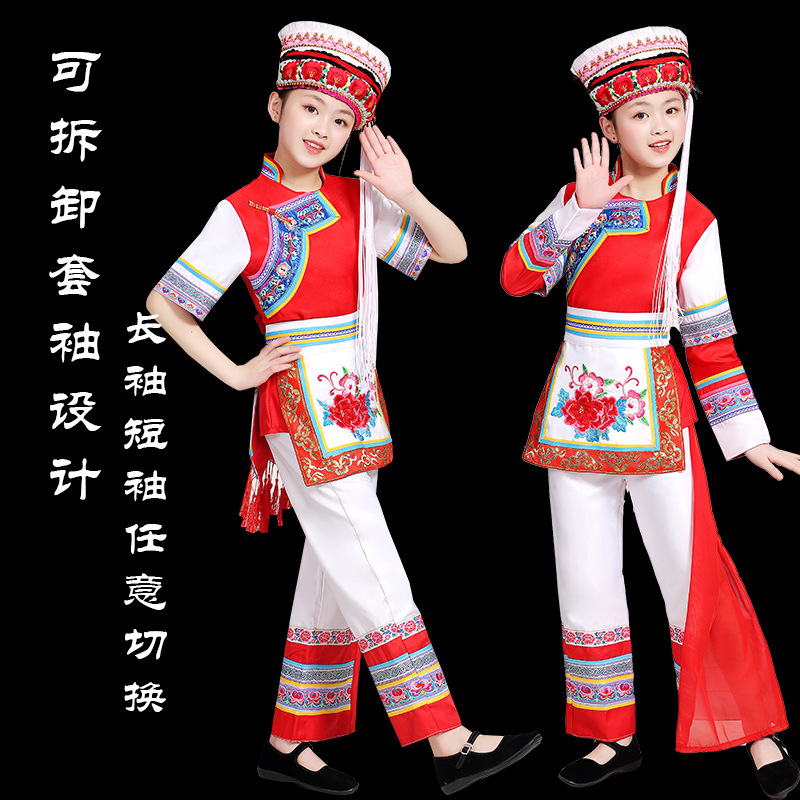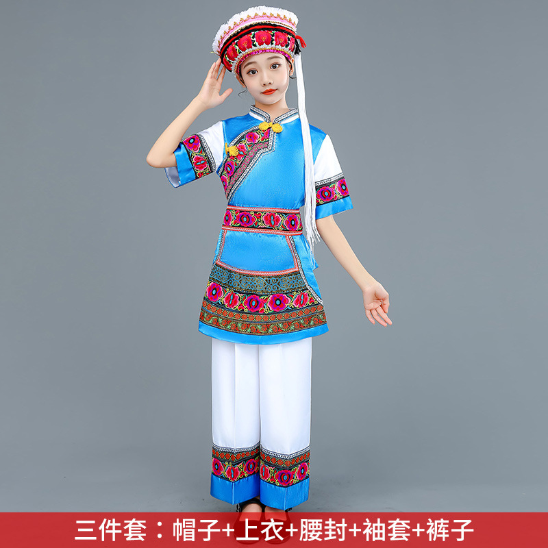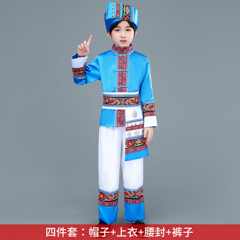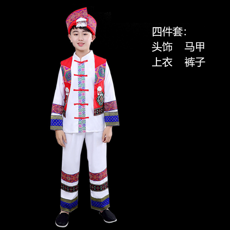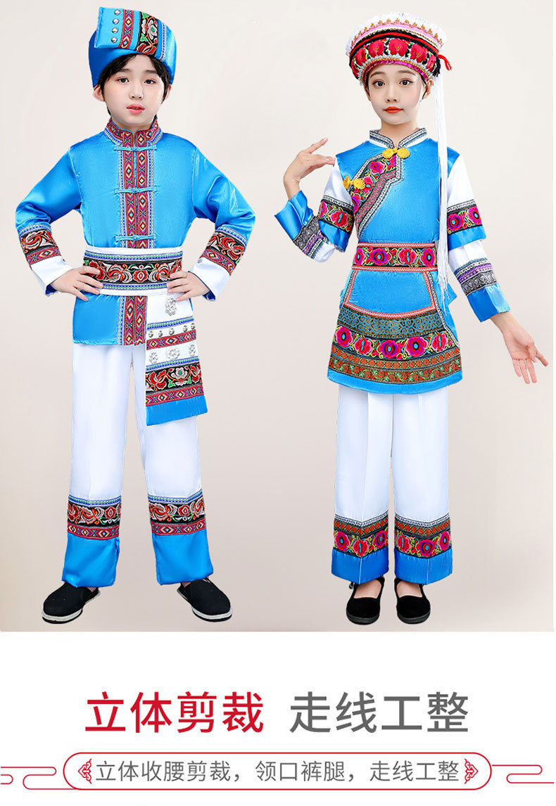 Новый детский этнический костюм бай, женский костюм этнического меньшинства Юньнань Дали, мужской костюм из тыквы, Шелковый костюм для выступлений
