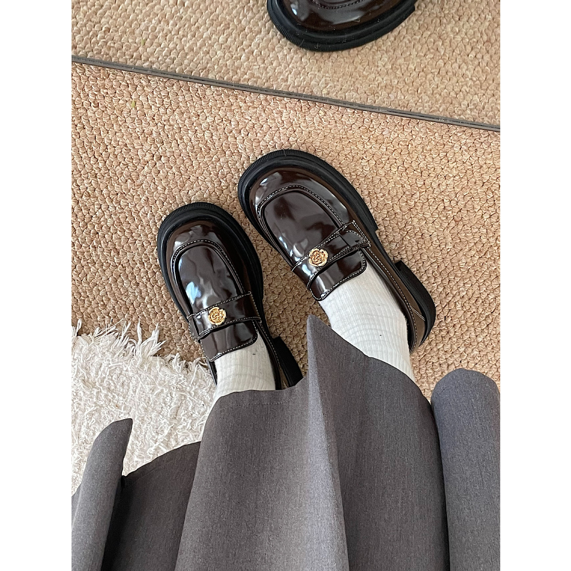 Универсальные коричневые кожаные туфли на толстой подошве в стиле ретро в британском стиле без шнуровки для женщин, осень и зима 2023 года, новые лоферы на массивном каблуке