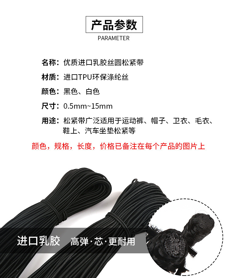 Эластичный шнур, высокоэластичный эластичный шнур, тонкий круглый эластичный шнур «сделай сам», черно-белая эластичная лента, толстая резинка, дропшиппинг