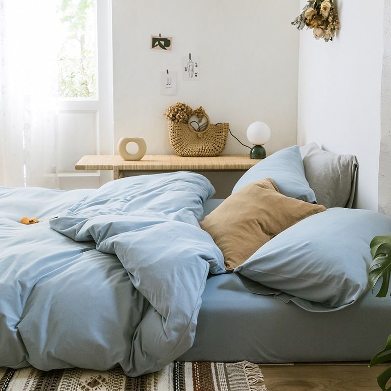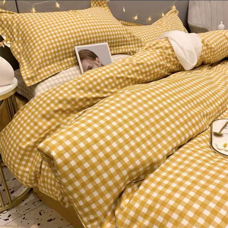 Простыни для постельного белья, цельные простые, в японском стиле, с маленькой сеткой, студенческое общежитие, одеяло, приятное для кожи, мягкое пододеяльник, наволочка, простой