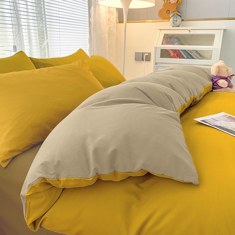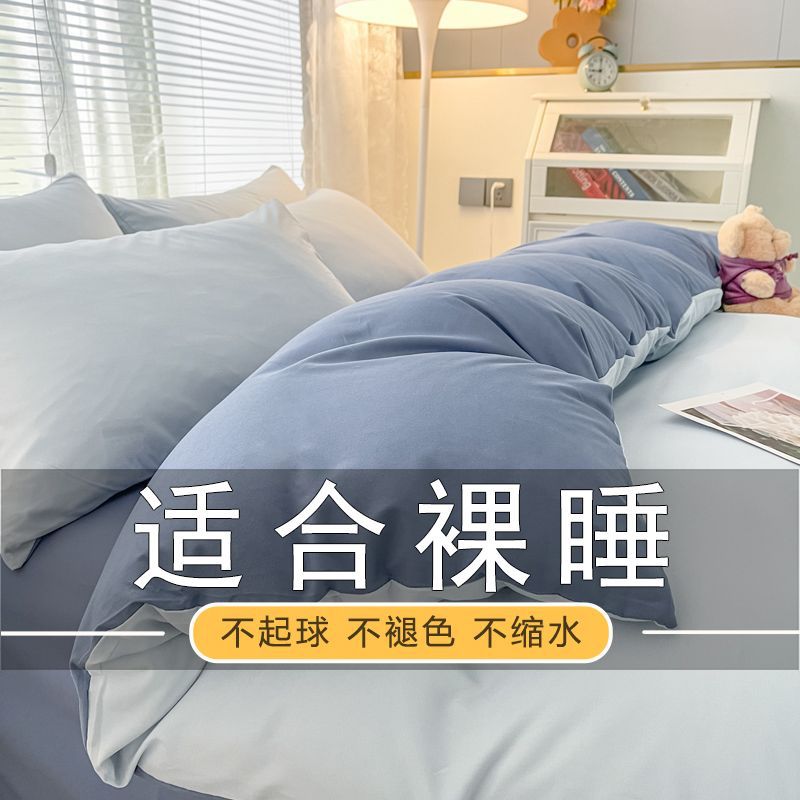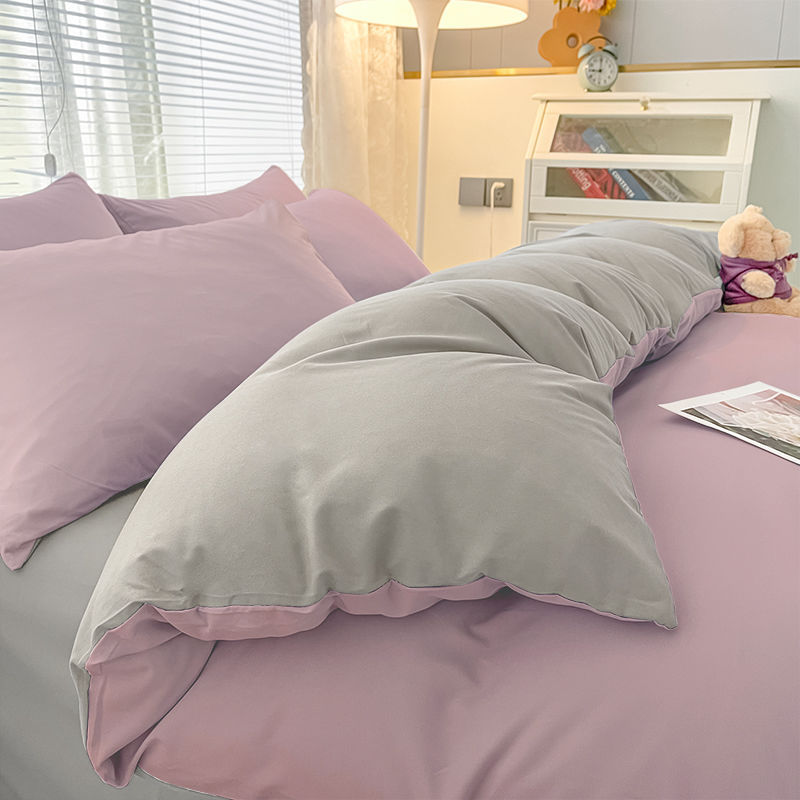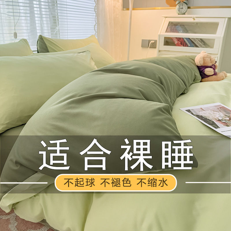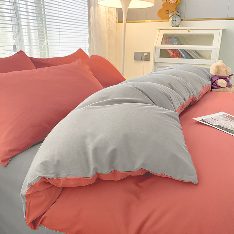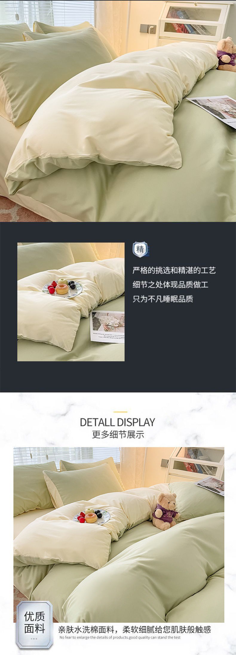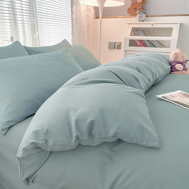 Комплект простыней из четырех предметов из стираного хлопка, приятное для кожи, простое однотонное одеяло для студенческого общежития, двойное пододеяльник, 4, дропшиппинг