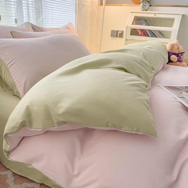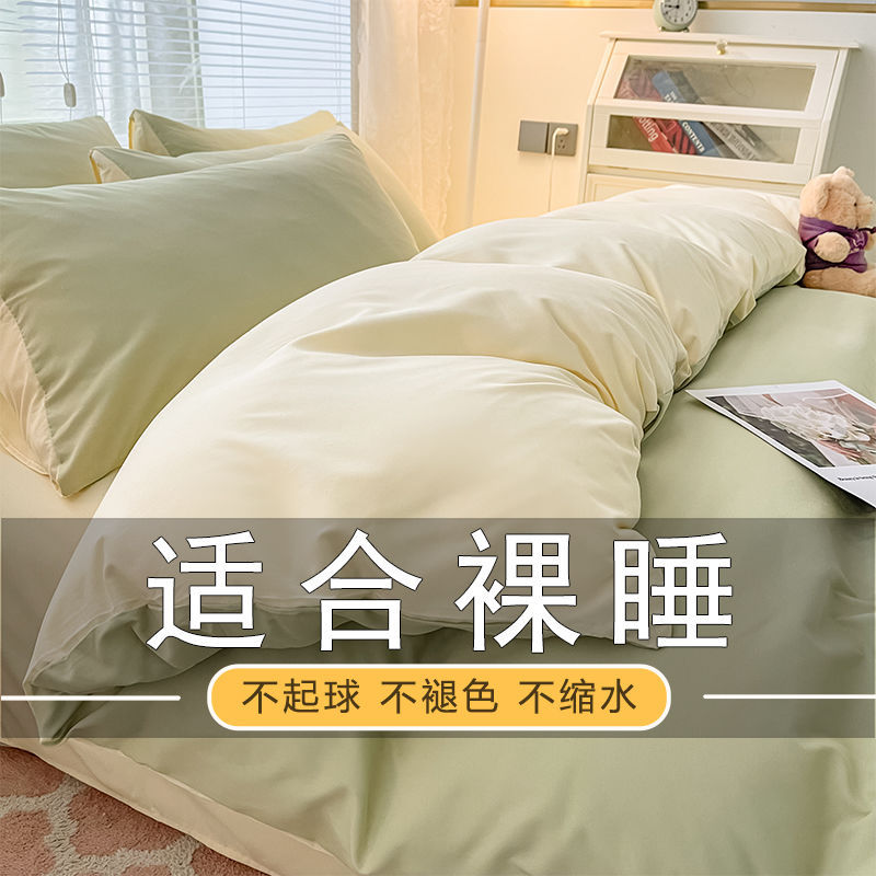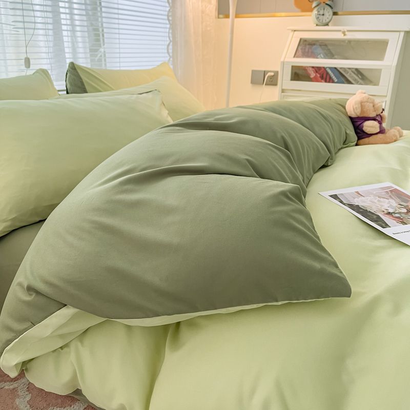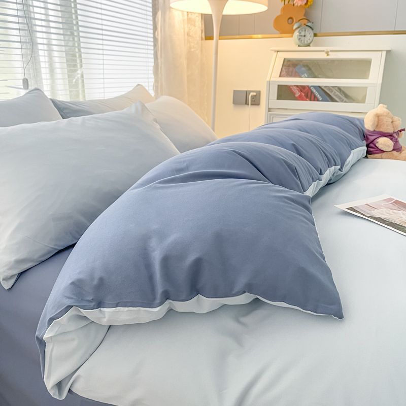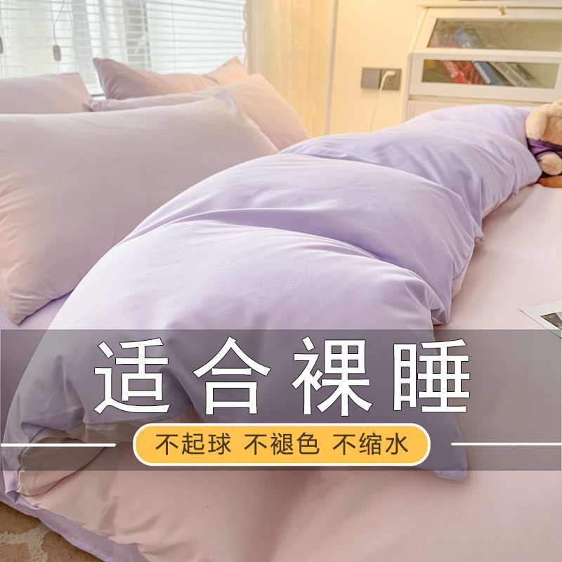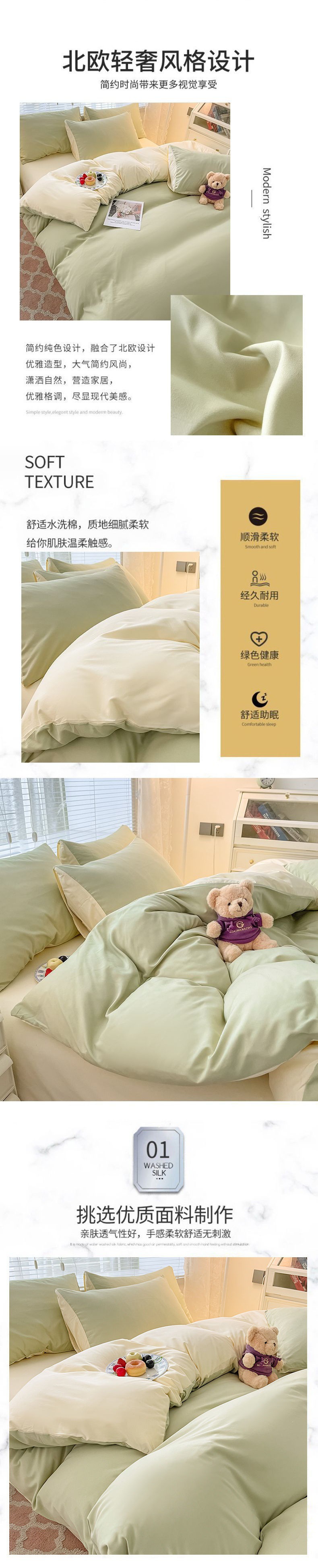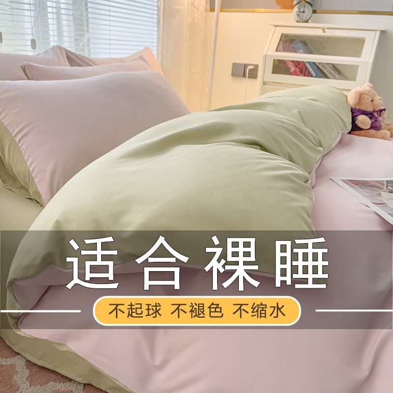 Комплект простыней из четырех предметов из стираного хлопка, приятное для кожи, простое однотонное одеяло для студенческого общежития, двойное пододеяльник, 4, дропшиппинг