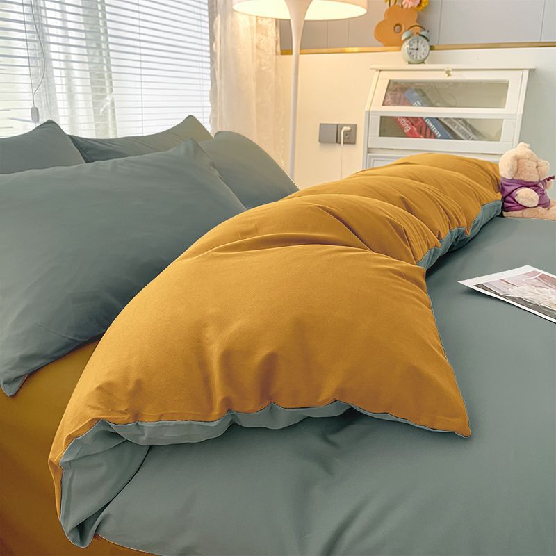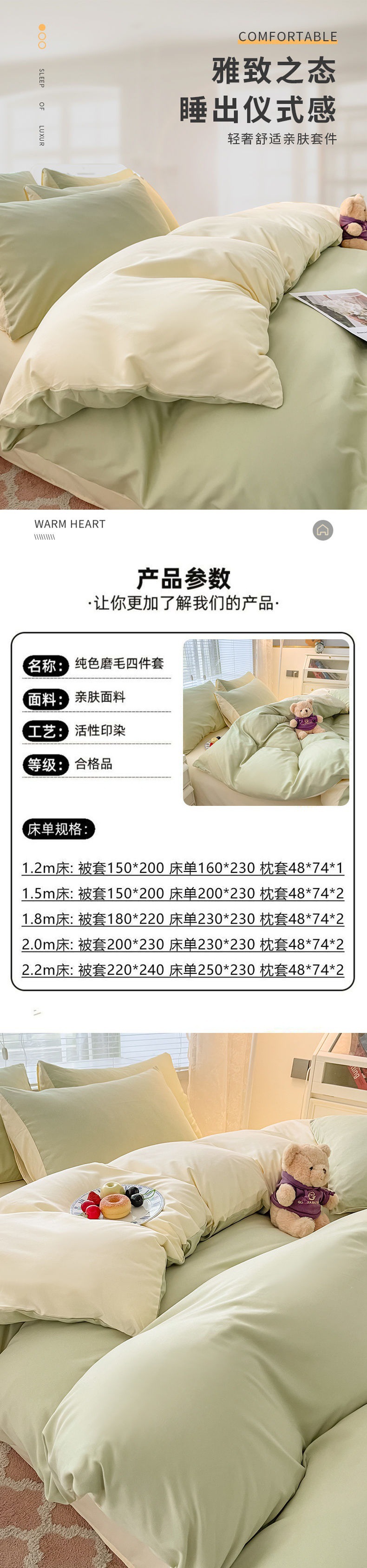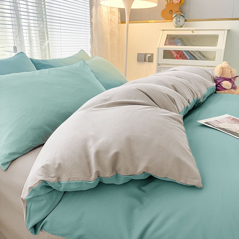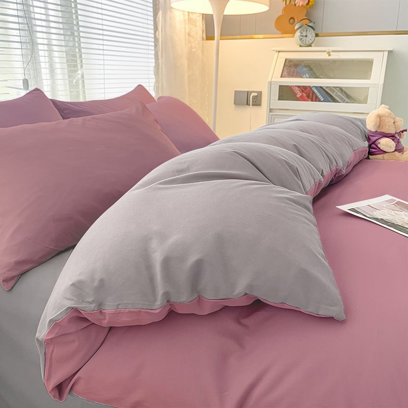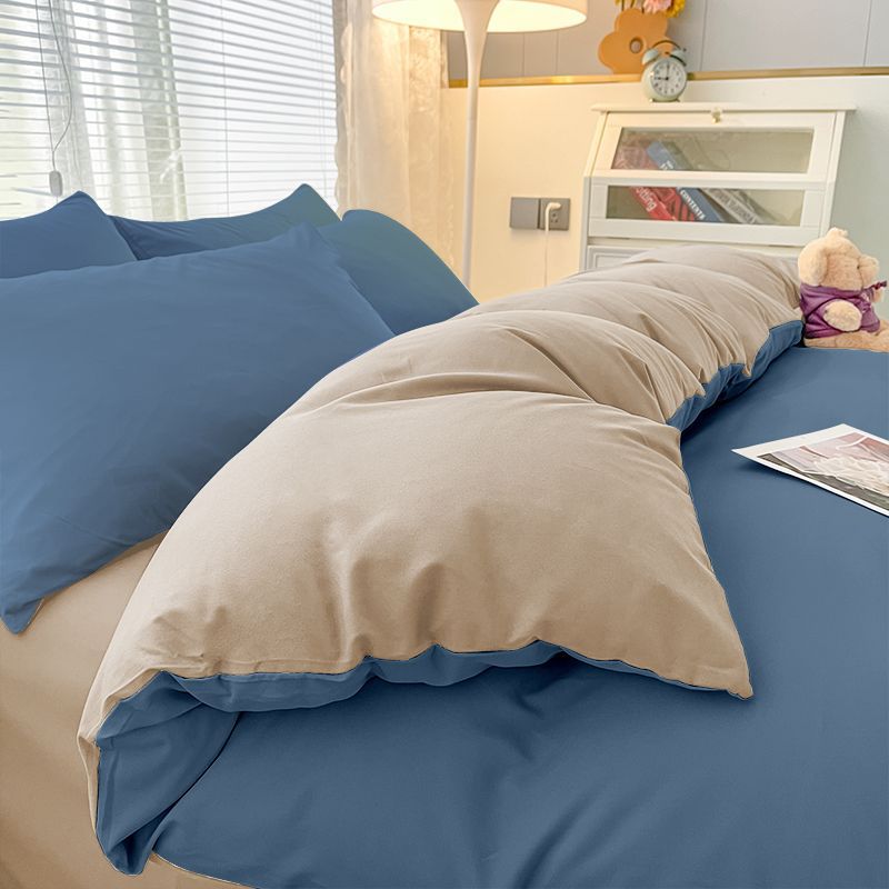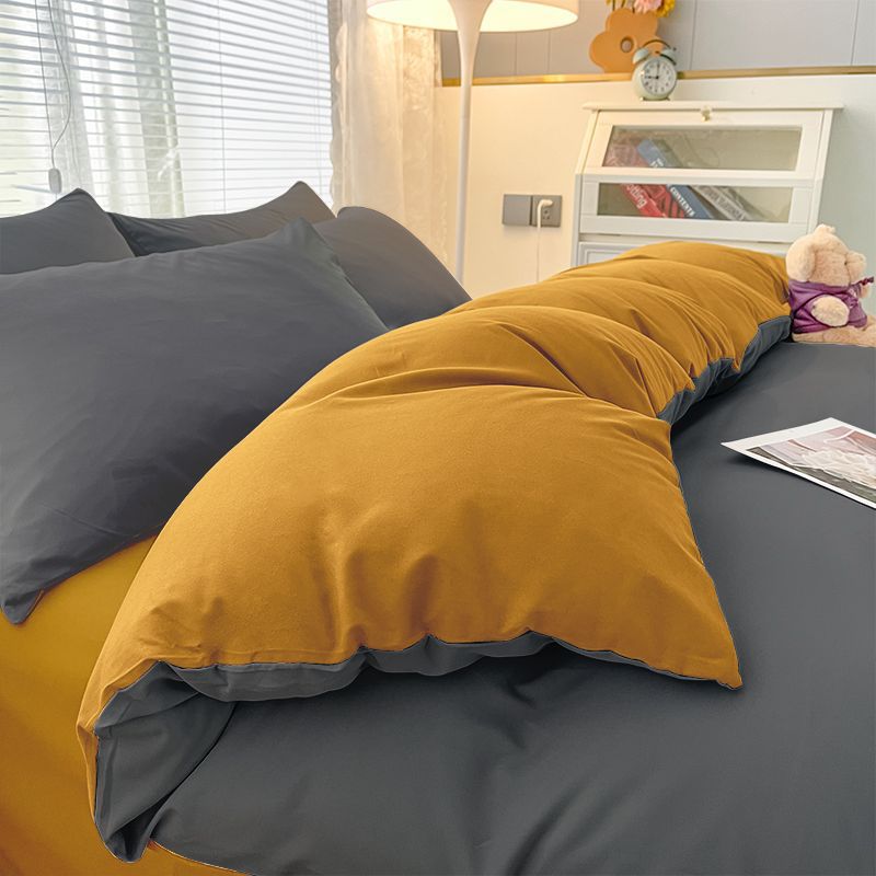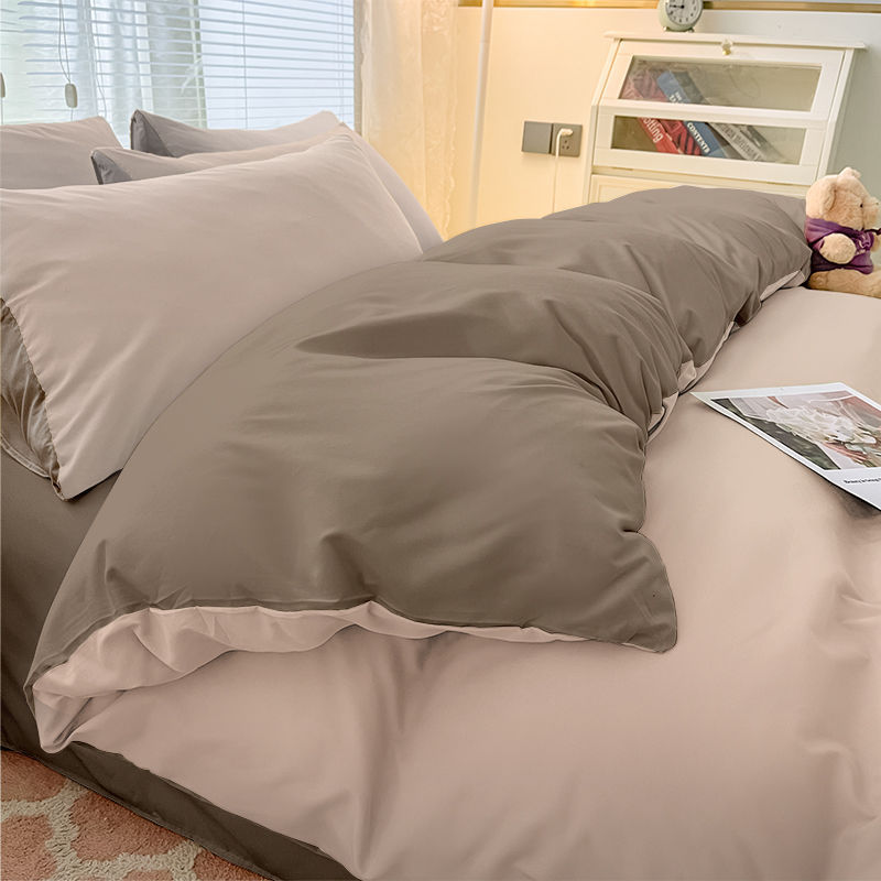 Комплект простыней из четырех предметов из стираного хлопка, приятное для кожи, простое однотонное одеяло для студенческого общежития, двойное пододеяльник, 4, дропшиппинг
