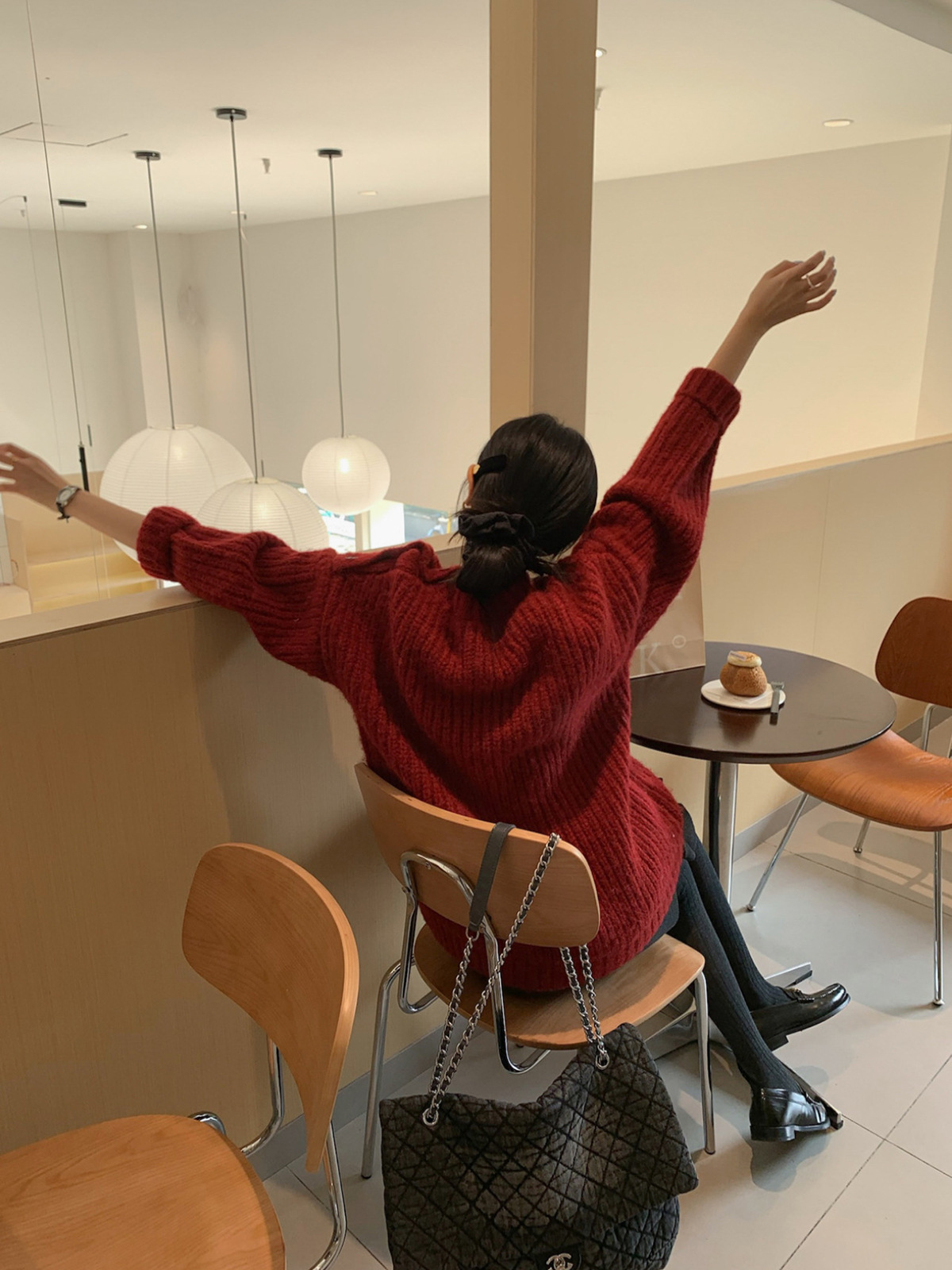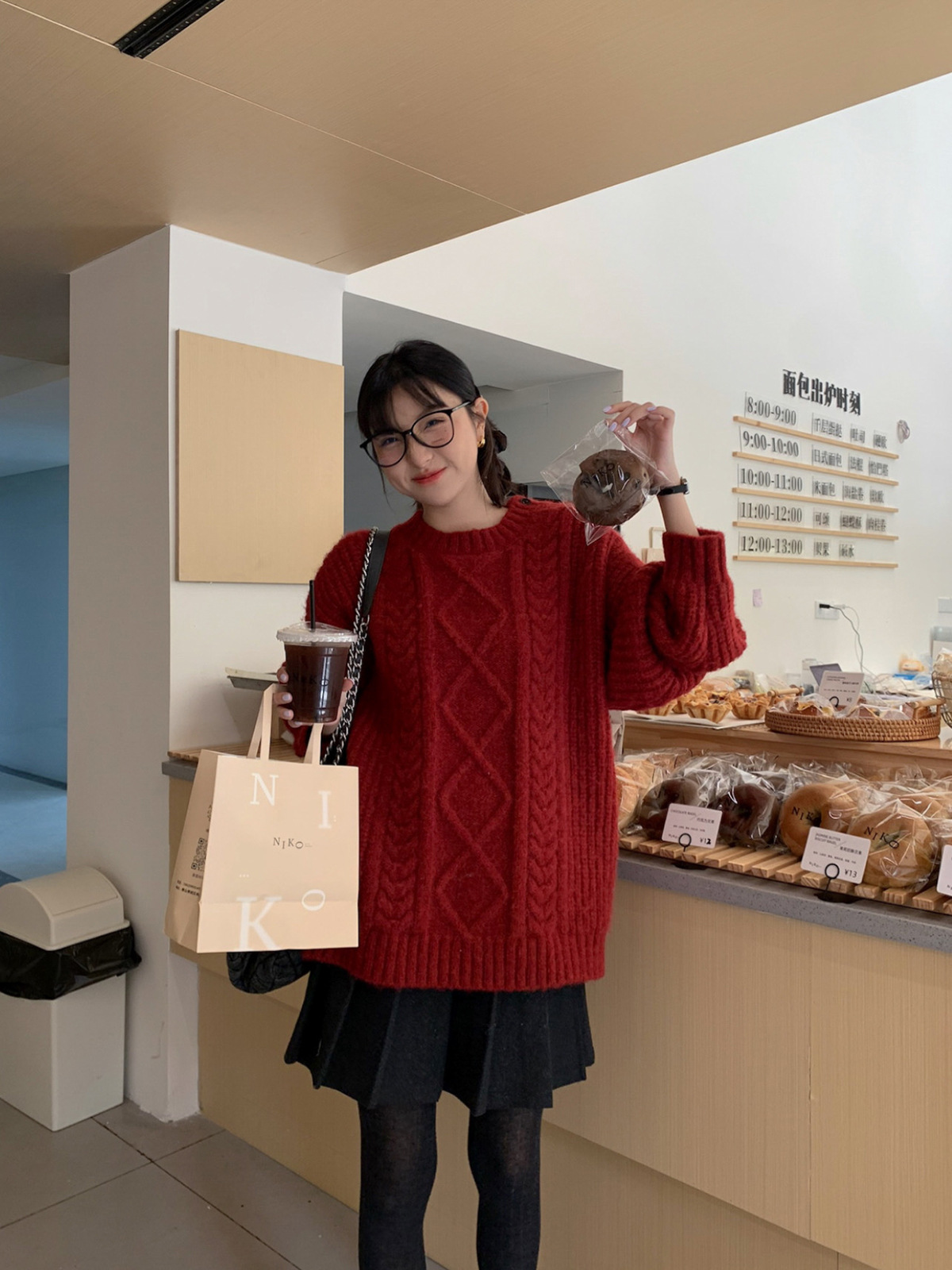 Красный свитер Yienou inbyin, Женская рождественская одежда, свитер с длинным рукавом, ленивый стильный топ с круглым вырезом