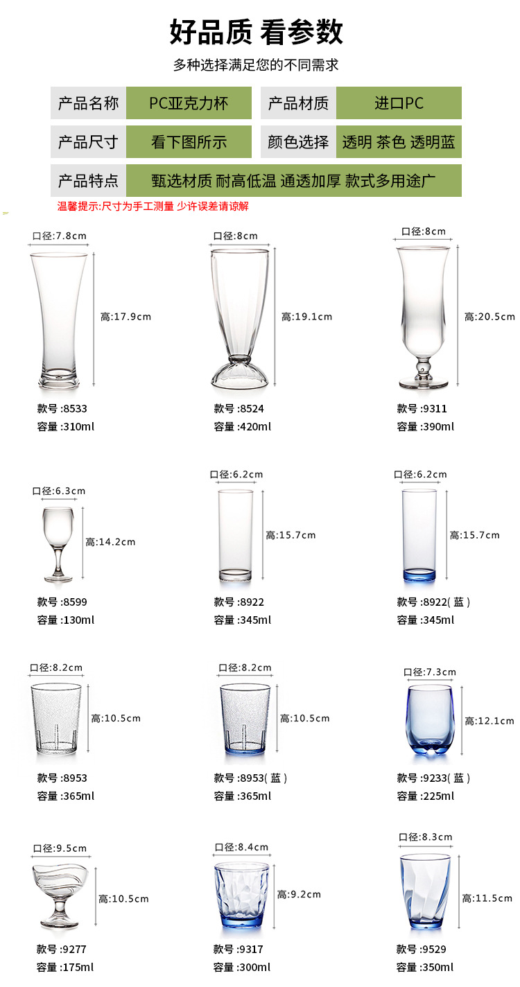 8291-PC Fruit Bowl (прозрачный) устойчив к падению и высоким температурам; 8501 -- большая чашка ресторана ПК (Браун) падение-устойчивая и высокотемпературная устойчивая; 8502 -- Китайская чашка ресторана ПК (Браун) Падени-устойчивая и высокая температура устойчивая; 8503 -- небольшая чашка ресторана ПК (Браун) Падени-устойчивая и высокотемпературная устойчивая; 8820-чашка для воды из ПК (прозрачная), устойчивая к падению и высоким температурам; 8524-чашка для напитков из ПК (прозрачная), устойчивая к падению и высоким температурам; 8527-чашка с резьбой из ПК (коричневая), устойчивая к падению и высоким температурам; 8533-чашка рожка ПК (прозрачная) устойчивая к падению и высоким температурам; 8572-восьмиугольная чашка ПК (коричневый) устойчивая к падению и высоким температурам; 8573-Восьмиугольная чашка ПК (коричневый) устойчивая к падению и высоким температурам; 8574-восьмиугольная чашка ПК (коричневая) устойчивая к падению и высоким температурам; 8599-ПК бокал для красного вина (прозрачный) Устойчивый к падению и высоким температурам; 8922-Прямая чашка из ПК (прозрачная), устойчивая к падению и высоким температурам; 8922-Прямая чашка из ПК (прозрачный синий), устойчивая к падению и высоким температурам; 8931-чашка в горошек из ПК (коричневая), устойчивая к падению и высоким температурам; 8932-чашка с точками из ПК (коричневая), устойчивая к падению и высоким температурам; 8933-чашка из поликарбоната (коричневая), устойчивая к падению и высоким температурам; 8953-чашка для взлома ПК (прозрачная), устойчивая к падению и высоким температурам; 8953-ПК трещины Кубок (прозрачный синий) сопротивление падению и высокая термостойкость; 9322 -- PC воды Кубок (прозрачный синий) падение устойчивостью и высокой температуры устойчивостью; 9277-чашка мороженого ПК (прозрачная) устойчивая к падению и высоким температурам; 9311 -- ПК бокал (прозрачный) Устойчивый к падению и высоким температурам; 9317 -- чашка воды ПК (прозрачный синий) падение устойчивостью и высокой термостойкостью; 9529-чашка для воды ПК (прозрачный синий) устойчивы к падению и высоким температурам