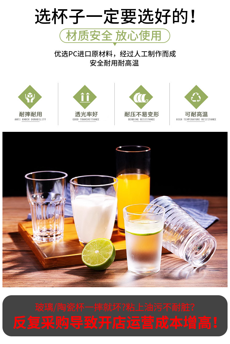 Акриловая чашка для воды коммерческий пластиковый ПК прозрачная чашка буфет Ресторан устойчивый к падениям напиток сок чай с молоком чашка пивная чашка