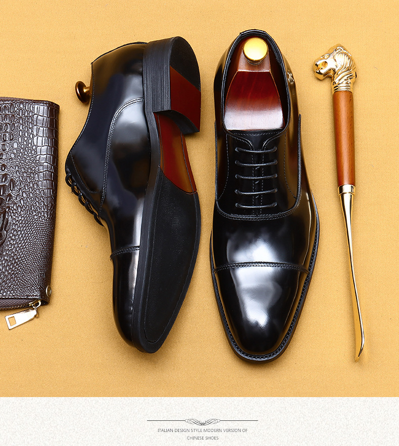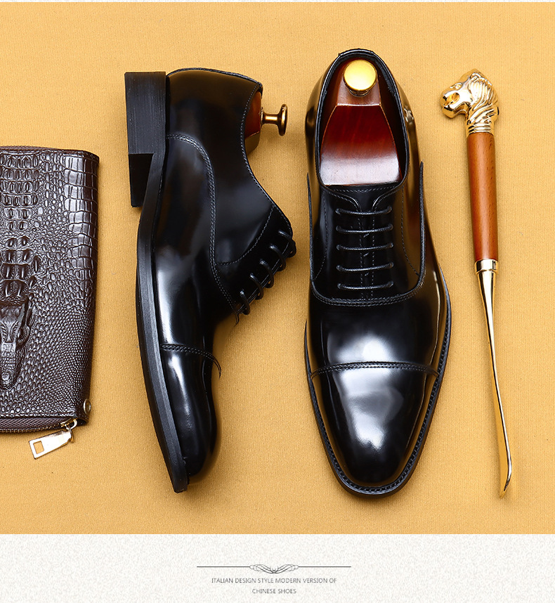 [Исключительно для vip] кожаные ботинки мужские подлинные деловые кожаные туфли с тремя шарнирками Оксфордские туфли с лакированной кожей блестящие мужские туфли