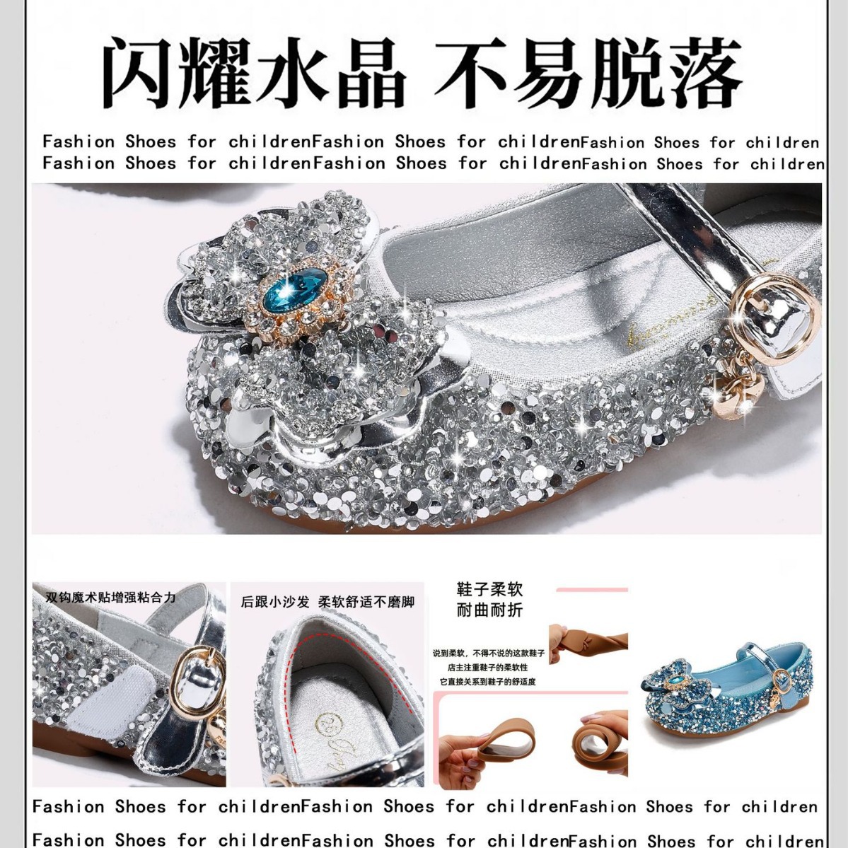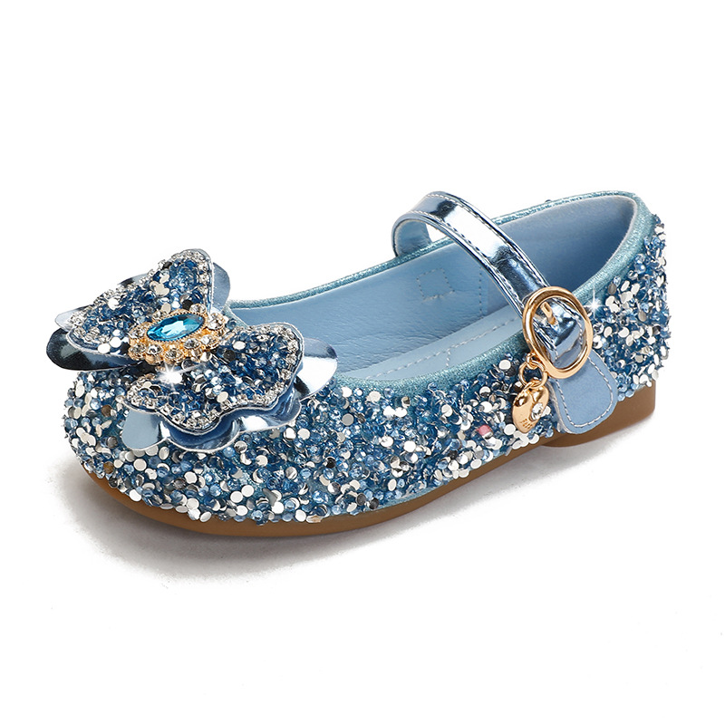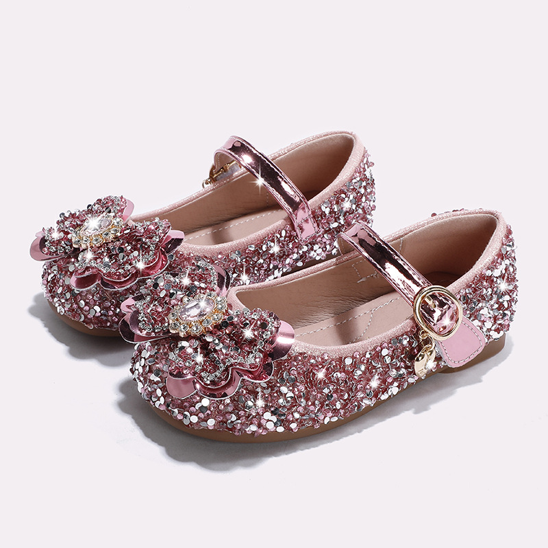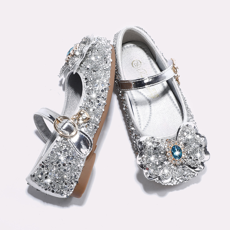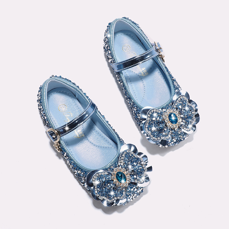 Детские кожаные туфли для девочек, весна-осень 2025, новая модная модель «Принцесса Эльза» с блестящей стразовой пряжкой, на мягкой подошве