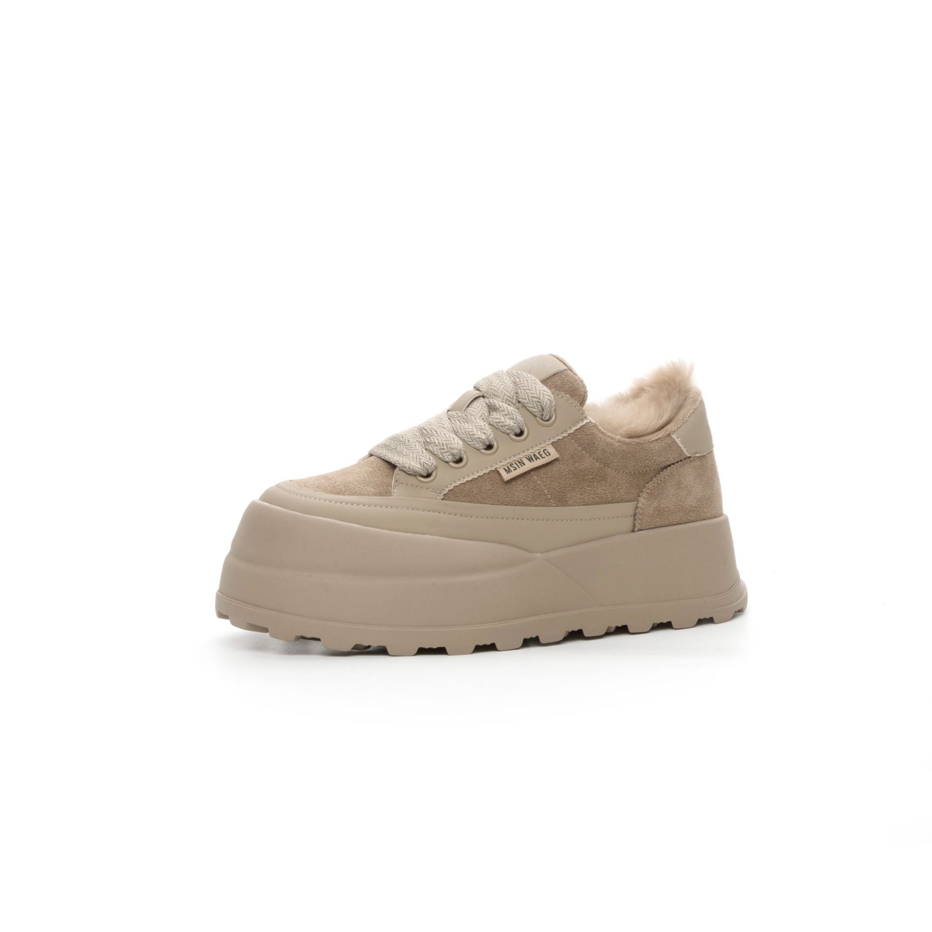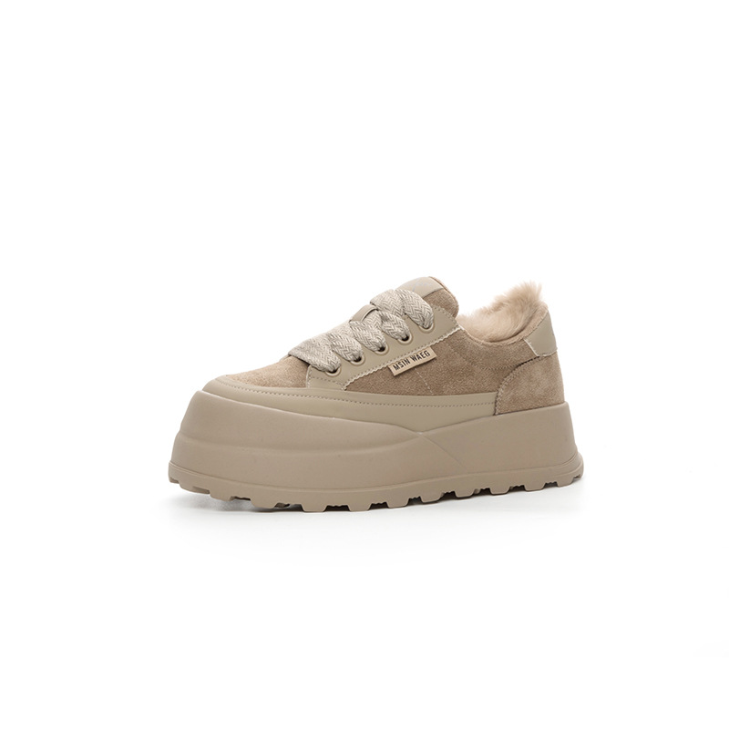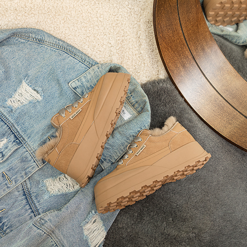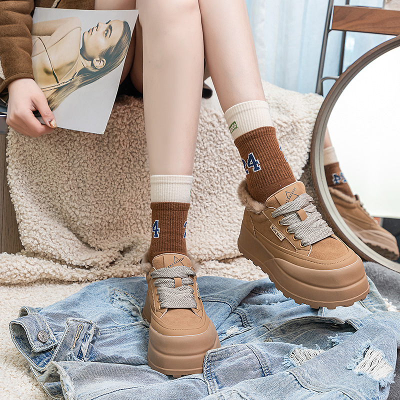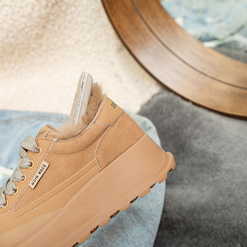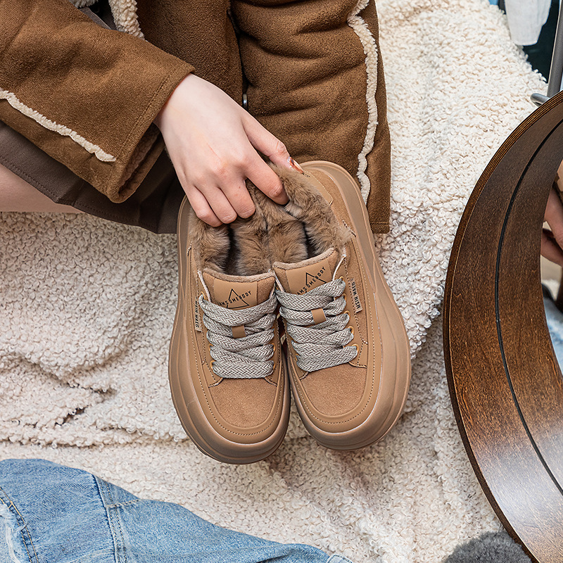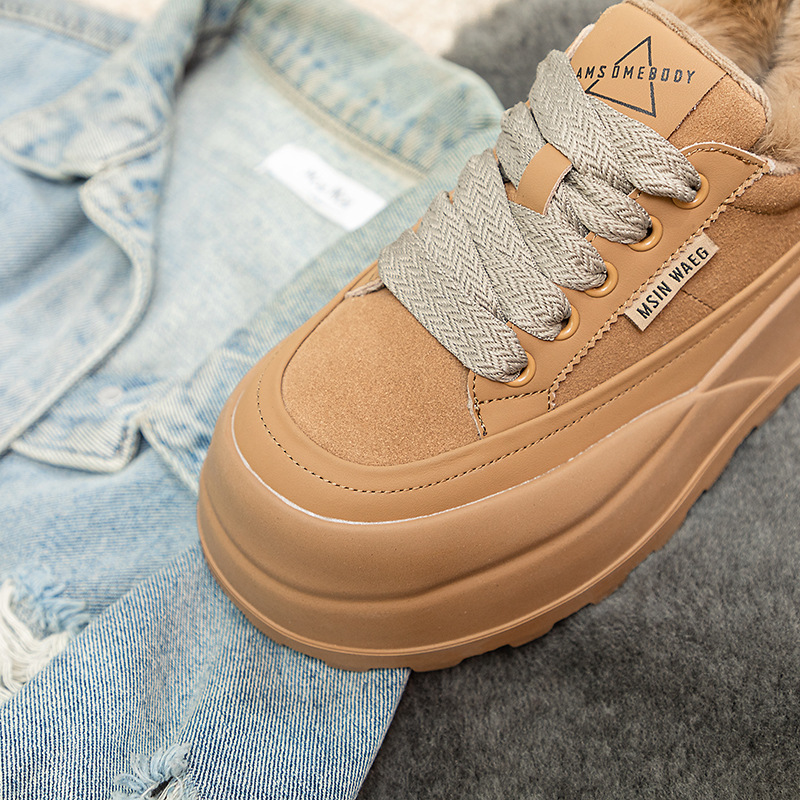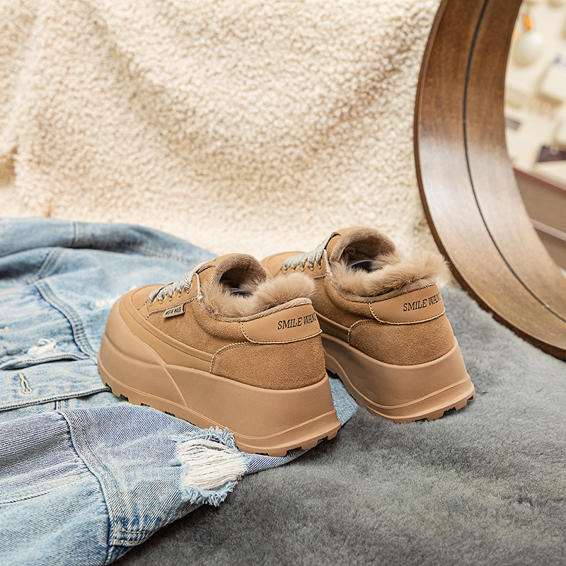 Туфли на толстой подошве на флисовой подкладке утолщенные 2023 Зимние новые туфли на платформе с большой головой Спортивные Повседневные туфли из кроличьего меха женская обувь на флисовой подкладке