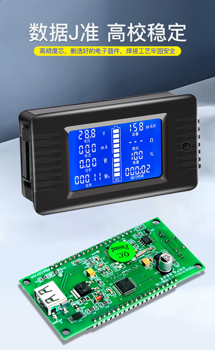 Тестер батарей Peacefair, измеритель тока и напряжения, мультиметр, тестер энергопотребления, USB-тестер электричества